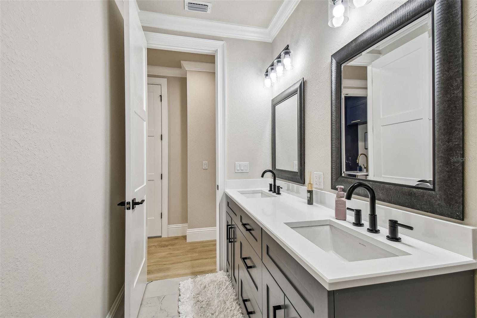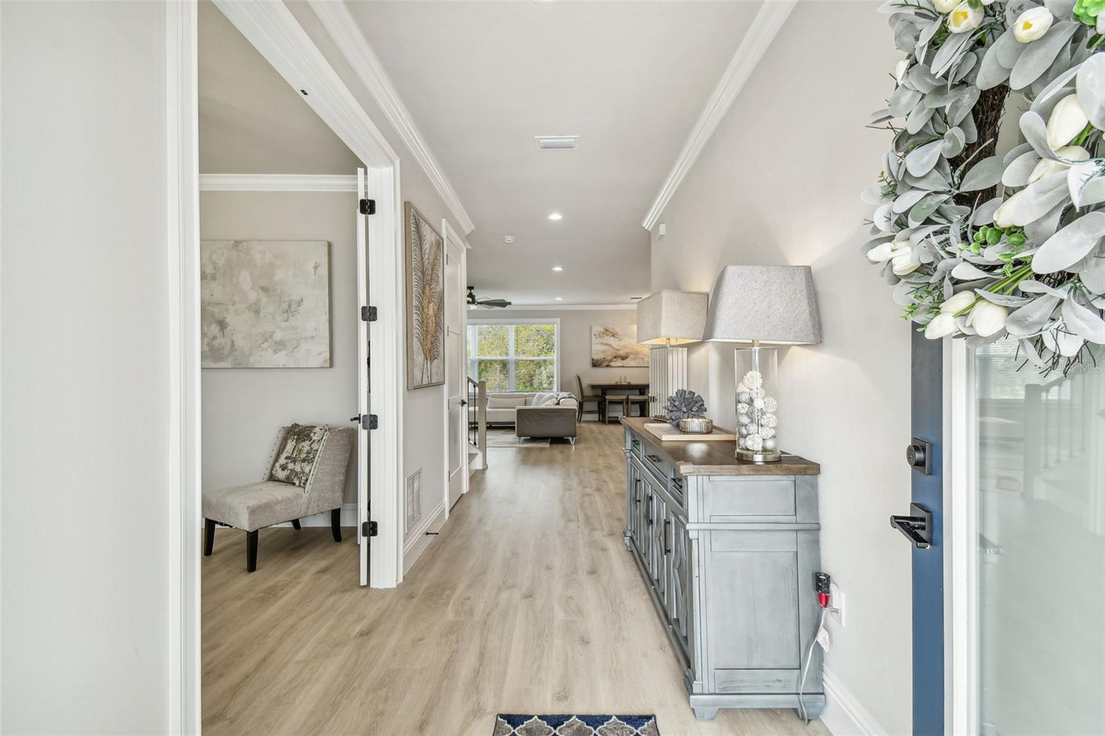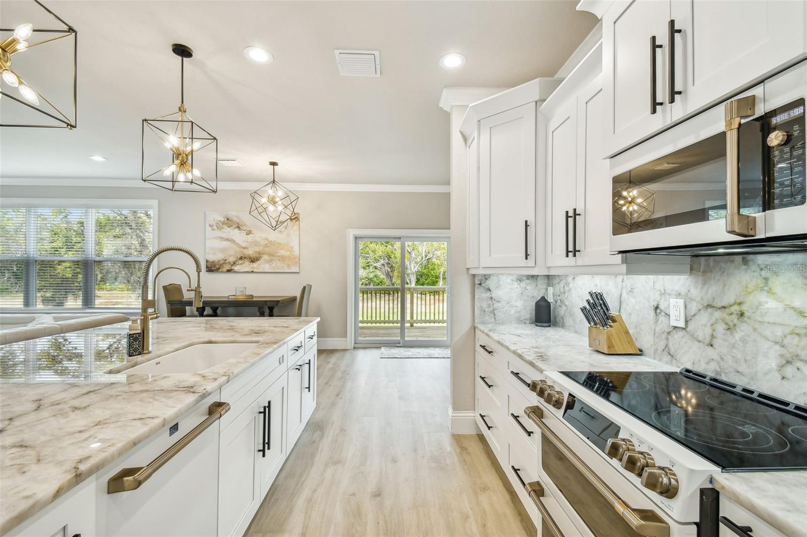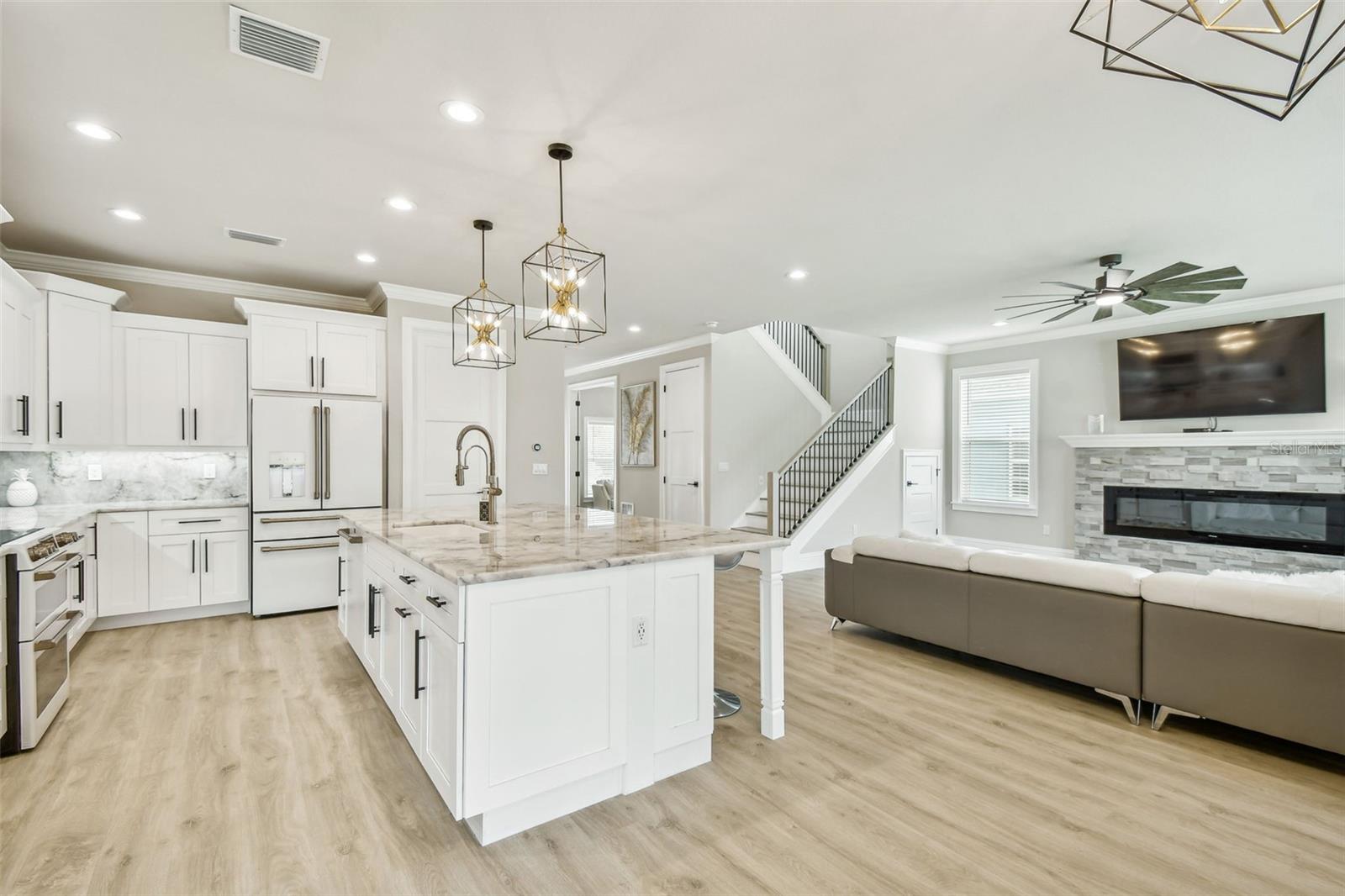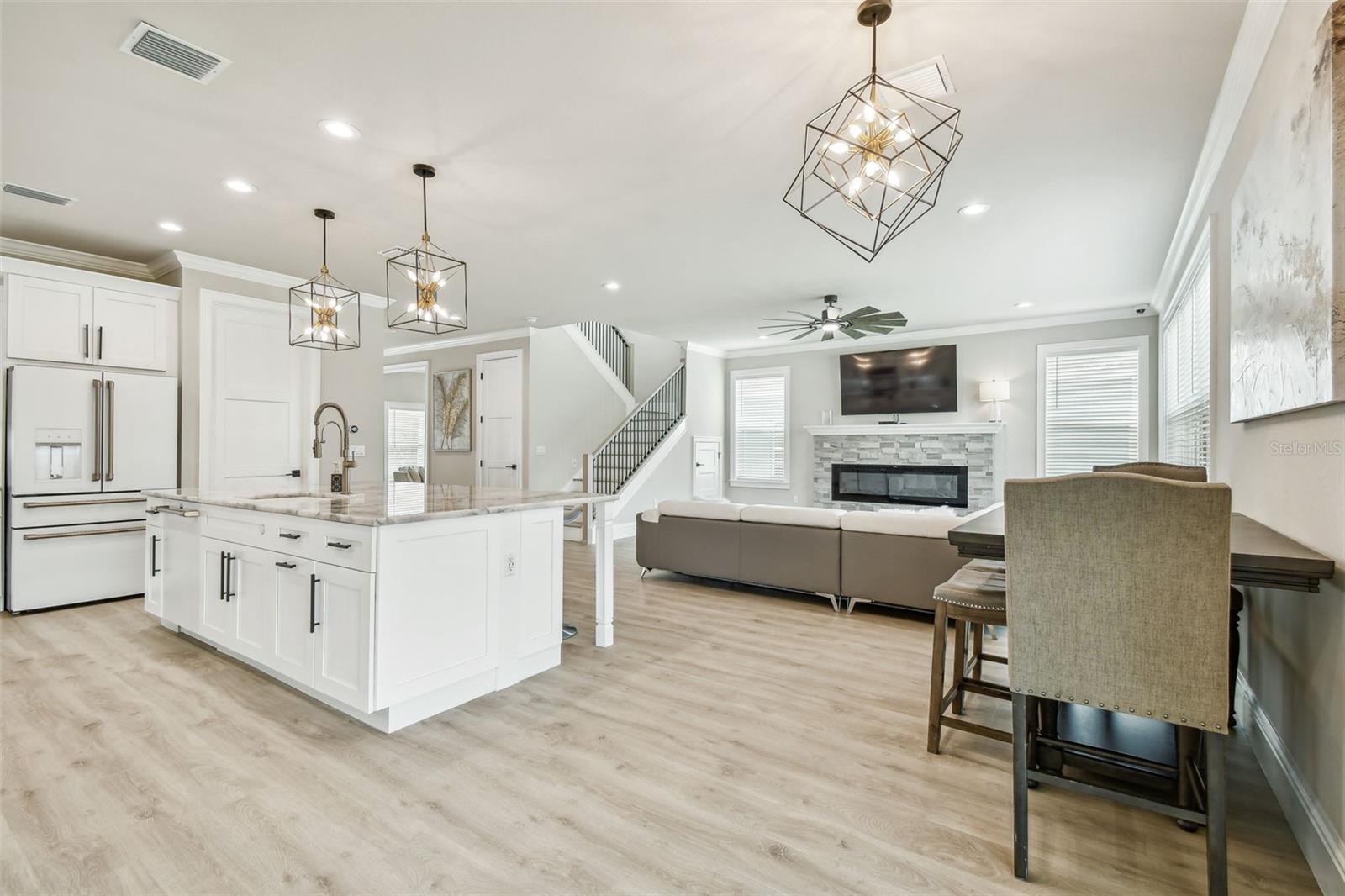 PREÇO REDUZIDO! Bem-vindo à sua nova casa de sonho! Esta nova construção de dois andares apresenta elegância moderna e design cuidadoso. Tem quatro quartos, um amplo escritório (possivelmente um quinto) e 3,5 casas de banho. Localizada em um bairro sereno sem vizinhos traseiros, esta propriedade oferece privacidade e tranquilidade. Ao entrar, é recebido por um amplo escritório, ideal para trabalho remoto ou como um espaço versátil para atender às suas necessidades. As características impressionantes da casa, incluindo amplas portas de 2,5 metros, rodapés personalizados de 20 centímetros de altura e acabamentos de janela totalmente personalizados, certamente deixarão uma impressão duradoura. A sanca embeleza cada canto, adicionando um toque extra de elegância a toda a casa. Fique tranquilo quanto à segurança da sua família com o sistema de segurança CCTV de 16 canais nesta casa. Da despensa às TVs master e da sala, você ficará tranquilo sabendo que pode monitorar sua família de qualquer lugar que escolher. O coração da casa é a cozinha gourmet com planta aberta, adornada com requintadas bancadas e backsplash de cristal Cristallo Statuario translúcido, complementadas por eletrodomésticos Café. A extensa ilha serve como ponto focal, perfeita para receber convidados ou reunir a família. No andar de baixo também é onde você encontrará UMA das DUAS lavanderias desta casa e um espaço adicional que você poderá personalizar para criar seu mudroom familiar. Suba as escadas para descobrir uma área versátil com um bar molhado, espelhando o belo tema de cristal da cozinha com um centro de bebidas com eletrodomésticos para café. Esta sala foi pré-instalada em duas paredes para torná-la o lugar perfeito para uma noite de cinema aconchegante, sala de jogos ou espaço adicional de entretenimento. O retiro principal aguarda com uma vista de um milhão de dólares sobre o sereno Rio Anclote. Entre para descobrir um amplo closet, aguardando seu toque pessoal, fluindo perfeitamente para o luxuoso banheiro principal para maior comodidade. Mime-se no banheiro tipo spa, com um espaçoso box de vidro transparente adornado com chuveiros duplos e uma cativante parede com padrão de espinha de peixe. Depois de um longo dia, relaxe perto de uma das duas lareiras elétricas, cada uma acompanhada por uma parede de pedra de tirar o fôlego, e convide-se para o máximo relaxamento. No corredor, você descobrirá os três quartos restantes, um dos quais foi atualizado pelo proprietário para incluir seu próprio banheiro, garantindo que seus hóspedes desfrutem da privacidade que precisam para se sentirem completamente em casa. Em seguida, você encontra a segunda lavanderia com uma pia funda de aço inoxidável envolta em quartzo branco e armários personalizados. Finalmente, saia para o oásis do quintal, com vista para uma reserva serena. Sem vizinhos traseiros, o espaço ao ar livre está preparado para a sua imaginação, quer você imagine uma piscina luxuosa, a melhor cozinha ao ar livre ou um paisagismo exuberante, as possibilidades são infinitas. Não perca a chance de personalizar esta propriedade deslumbrante. Agende uma visita hoje e prepare-se para se apaixonar por sua nova casa para sempre.