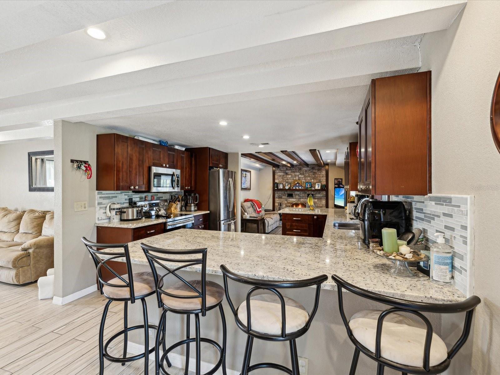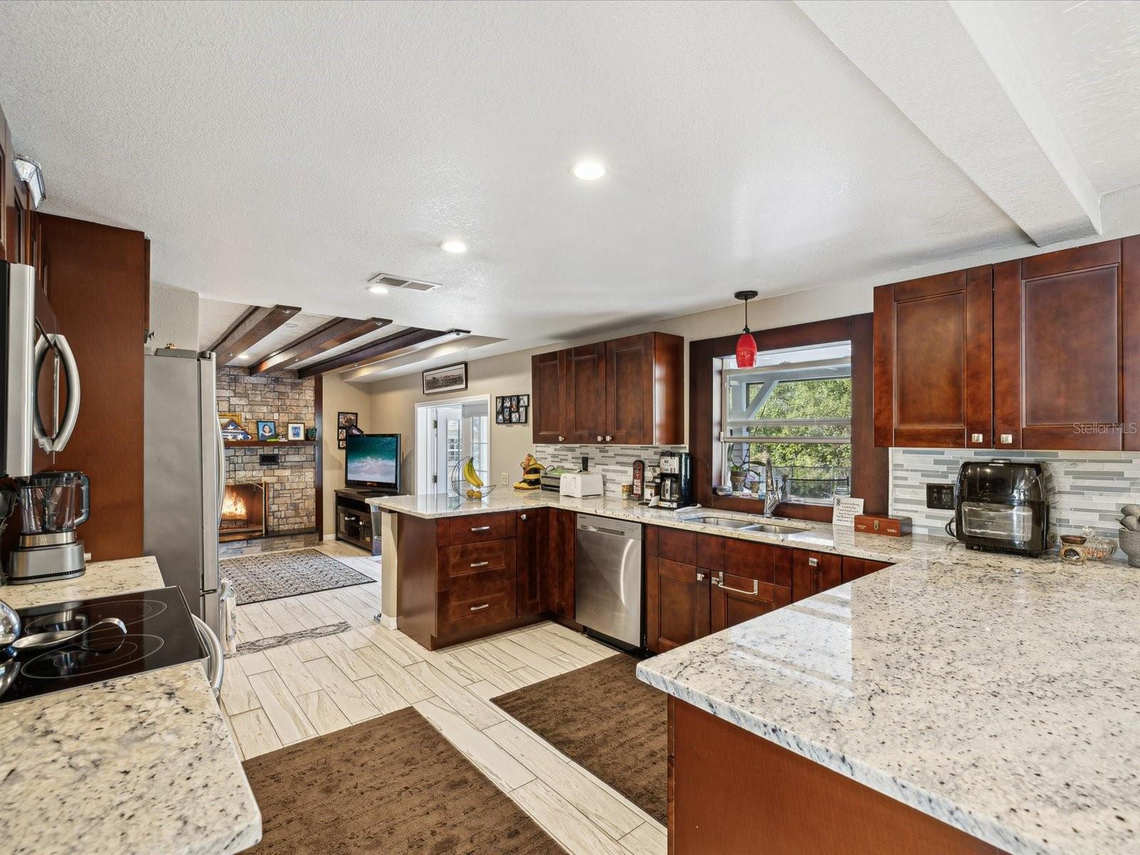 Aninhado em quase um hectare de cenário sereno, semelhante ao país, com todas as vantagens da cidade que moram nas proximidades, esta propriedade excepcional oferece um total de 2.523 pés quadrados de espaço de vida versátil. Apresentando uma suíte totalmente equipada, esta casa é ideal para famílias multigeracionais ou como uma oportunidade de geração de renda. A suíte do sogro, com 971 pés quadrados, oferece 2 quartos, 1 banheiro, sua própria unidade CA (2022), aquecedor de água sem tanque, sistema séptico privado e lavadora e secadora, todos acessíveis por meio de uma entrada separada. Possui uma cozinha completa e se conecta à casa principal através de um breezeway fechado. A casa principal impressiona com 3 quartos, 2 banheiros completos e 2 banheiros convenientes - um na garagem e outro no pátio da piscina. A cozinha atualizada exibe bancadas em granito, armários de bordo de madeira maciça e utensílios de aço inoxidável. Banheiro atualizado, pisos de ladrilhos de tábuas de madeira, detalhes em madeira e lareira aconchegante adicionam ao charme da casa. A propriedade inclui grandes atualizações, como um telhado (2021), teto plano (2017), AC principal (2017), novos dutos de ar (2023), novo sistema séptico (2018) e um painel elétrico atualizado com uma conexão de gerador. As câmeras de anel e a camada de vídeo também estão incluídas. A vida ao ar livre brilha com um pátio traseiro exibido, uma piscina de água salgada que foi reformada em 2019, completa com um pátio reforçado e acesso à porta francesa da sala da família e do quarto principal. Um amaciador de água, sistema de filtração de água, sistema de sprinklers e quintal totalmente cercado aprimoram a funcionalidade da propriedade. Sem HOA, nenhuma zona de inundação e um oásis de quintal perfeito para entretenimento, esta casa combina conforto, estilo e versatilidade. Certifique -se de agendar sua exibição particular hoje. Passável Tour Virtual 3D disponível.