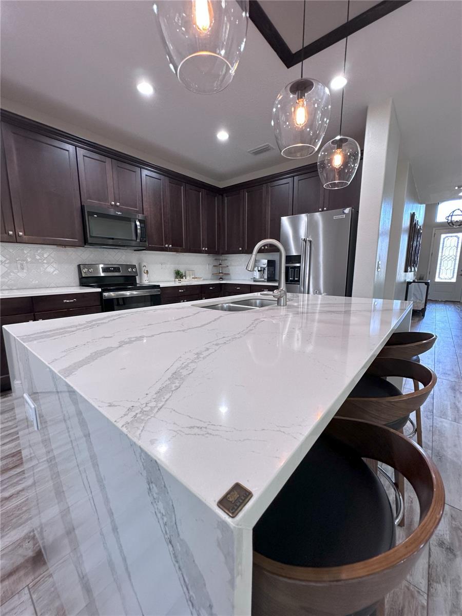 Vendedor motivado -Bring suas ofertas! Não perca o seu Chance para ver esta maravilhosa casa moderna, localizada em Rose Haven, um condomínio fechado sem taxa de CDD. O exterior tem um apelo fantástico ao meio -fio, incluindo uma janela de sacada, alpendre arqueado, detalhes em pedra e porta de fibra de vidro de 8 pés com inserção de vidro de cetim. Você vai se apaixonar pelo seu primeiro passo dentro. O hall de entrada é impressionante, com ladrilhos atualizados que corre por toda a grande sala e cozinha. A cozinha possui um bar da ilha com pias duplas e uma bela bancada de quartzo que "cachoeiras" de ambos os lados. Armários superiores de 42 polegadas com moldagem por coroa, aparelhos de estrela de energia da GE, uma torneira de níquel de níquel escovada Moen® com uma torneira única com pulverizador de tração e uma despensa de armário incluída. A cozinha se abre para a espaçosa grande sala, com controles deslizantes com vista para o espaço verde e a piscina comunitária. A suíte master possui armários duplos e o banheiro principal faz um chuveiro com paredes de vidro completas e sem costura e detalhes de seixos de parede atualizados no ladrilho. Existem três quartos adicionais, incluindo um com seu próprio banheiro na suíte, ideal para uma suíte "sogro". Muita iluminação extra nesse modelo, o disco pode luzes, luzes pendentes e luzes sob o gabinete da cozinha. Os armários da cozinha e todos os armários do banheiro foram atualizados e todos os banheiros têm bancadas em granito. Você até recebe um chuveiro de chuva no teto na suíte master. Todos os quartos têm vinil de luxo impermeável. A comunidade de Rose Haven tem uma entrada fechada, com um belo calçadão à beira do lago, e piscina comunitária e cabana. Como mencionado acima, não há taxa de CDD e uma baixa taxa de HOA de US $ 128 por mês. Essa taxa não apenas cobre a piscina, cabana, calçadão e portão de entrada, mas também cobre sua coleta de lixo e cabo básico. Convenientemente localizado a poucos quilômetros do Suncoast Parkway para trajeto rápido para Tampa, também fica perto de lojas, parques, restaurantes e praias. Portanto, verifique se esta casa está na sua lista para ver e venha hoje !! Por favor, verifique o tour de vídeo