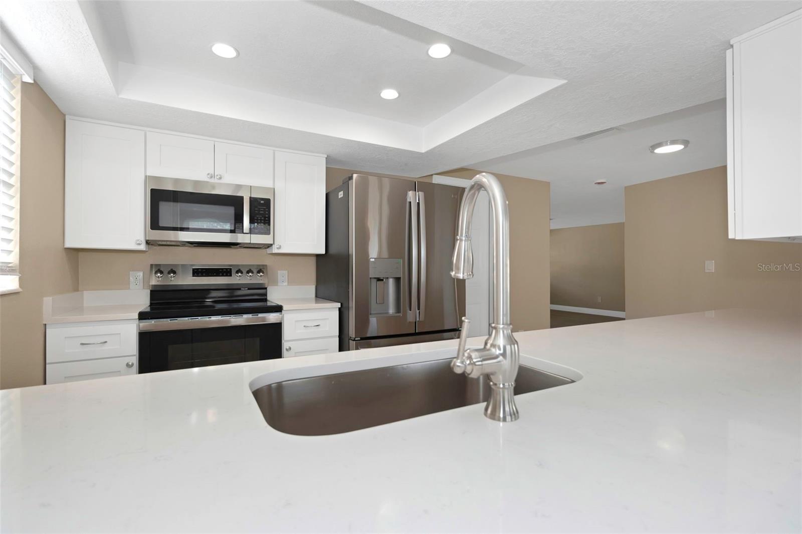 Remodelado de três quartos, dois banheiros e uma garagem de um carro. Cozinha atualizada com armários agitados, bancadas de quartzo e utensílios de aço inoxidável. Nova tinta interior e exterior. Novo piso de prancha de luxo por toda parte. Banheiros atualizados. O telhado tem menos de 10 anos. O sistema de ar condicionado é novo. A varanda da frente coberta, o pátio fechado da tela traseira e o quintal cercado por privacidade (PVC). Localizado em terra alta e seca, não exigindo seguro de inundação. Nenhum dano das tempestades passadas, especificamente Helen e Milton.