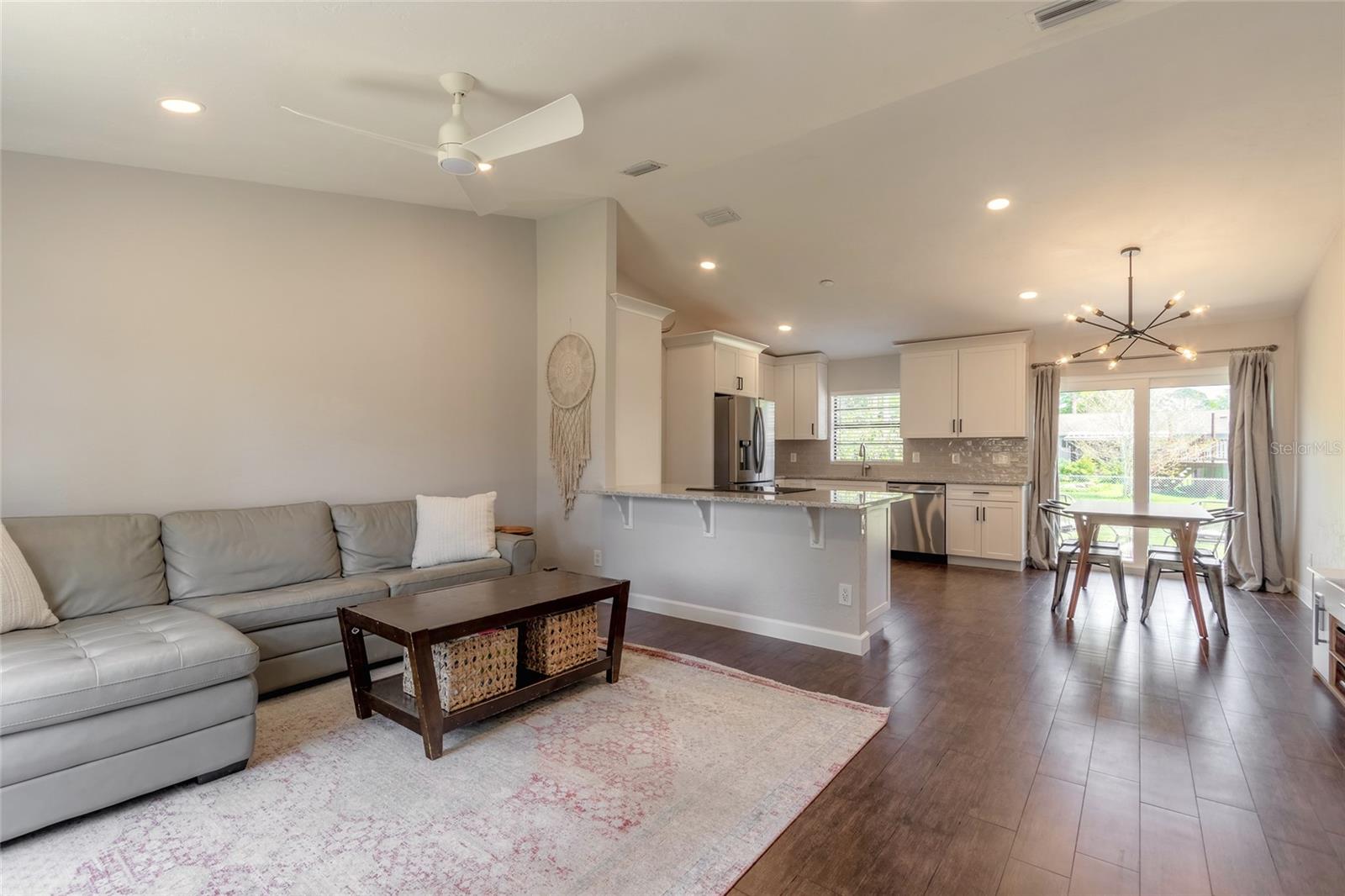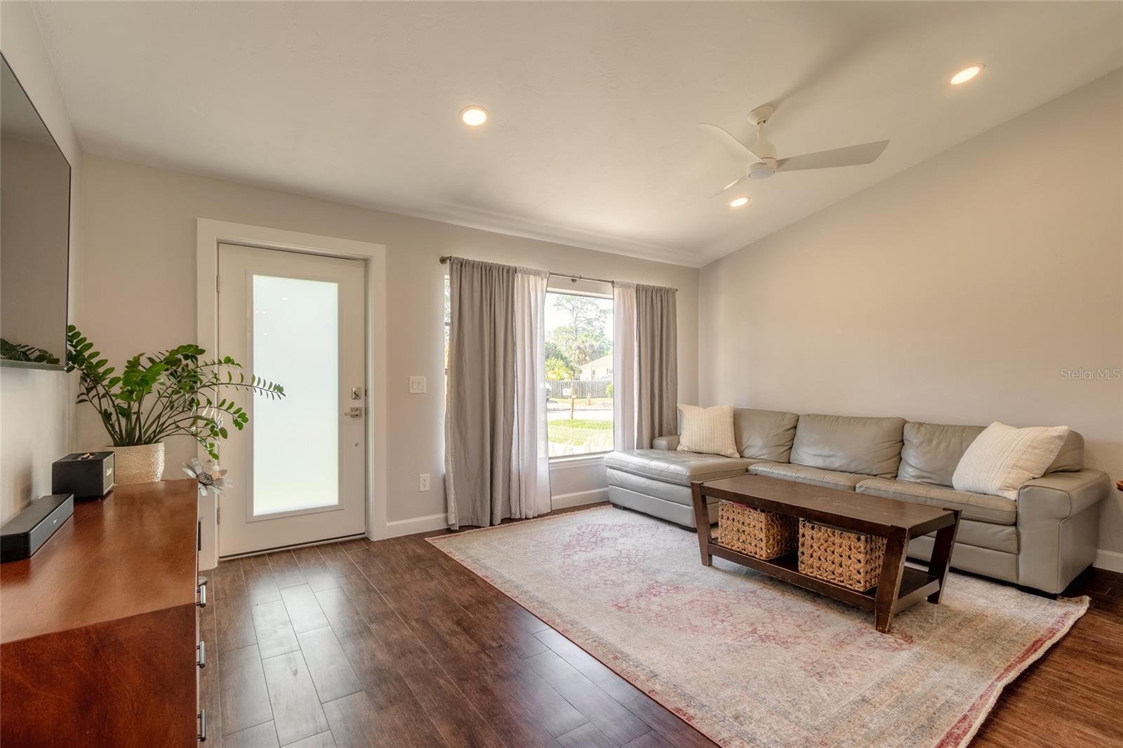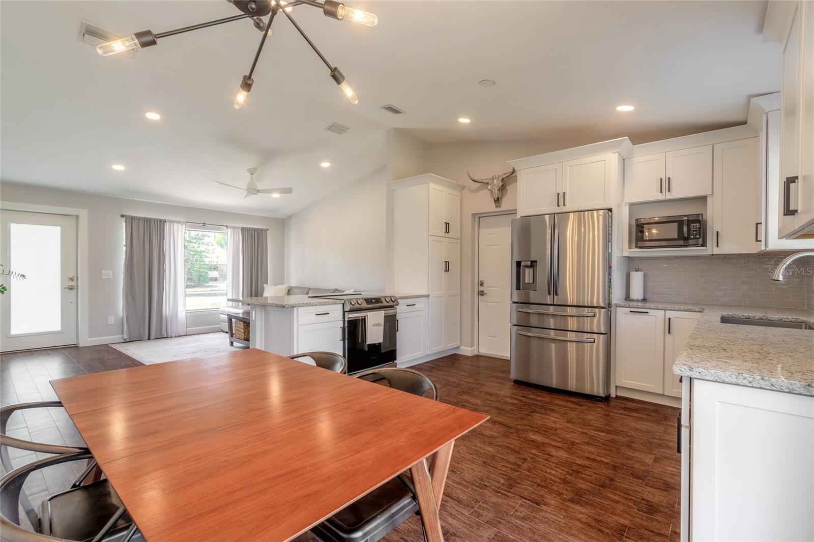 Descubra o fascínio desta residência cativante renovada de 3 quartos e 2 banheiros, aninhada no coração de New Smyrna Beach! Ao entrar, seja recebido por tetos abobadados que amplificam a sensação de espaço e luz. A cozinha recém-atualizada possui armários de madeira maciça elegante, gavetas convenientes na despensa, bancadas elegantes de granito e uma pia de aço inoxidável profunda, todos complementados por um conjunto de aparelhos novos instalados em 2023. Delícia no charme contemporâneo do banheiro hóspede recém-renovado, adorado com estilos modernos e elegantes. Com a porta da frente e o controle deslizante traseiro substituído de novo, esta casa combina perfeitamente a funcionalidade moderna com apelo atemporal. Não perca a oportunidade de fazer desta jóia a sua! Todas as informações devem ser precisas, mas não garantidas.