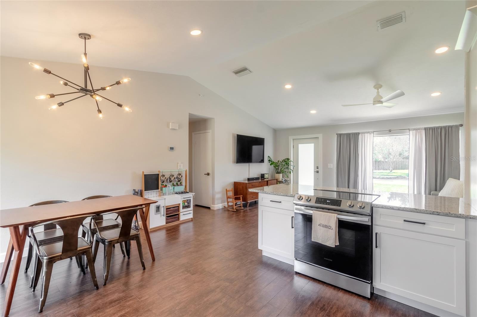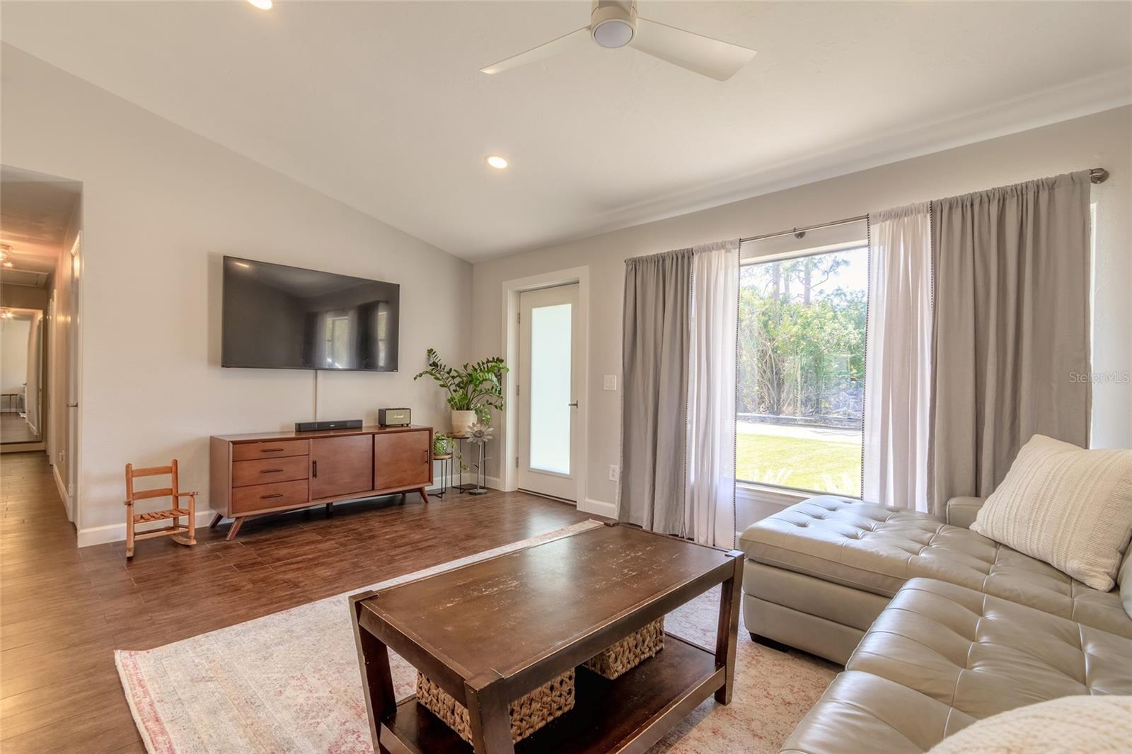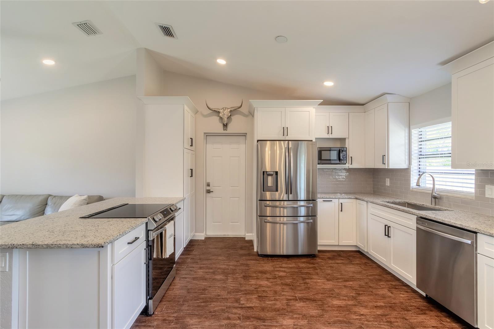 Descubra o fascínio desta residência cativante renovada de 3 quartos e 2 banheiros, aninhada no coração de New Smyrna Beach! Ao entrar, seja recebido por tetos abobadados que amplificam a sensação de espaço e luz. A cozinha recém-atualizada possui armários de madeira maciça elegante, gavetas convenientes na despensa, bancadas elegantes de granito e uma pia de aço inoxidável profunda, todos complementados por um conjunto de aparelhos novos instalados em 2023. Delícia no charme contemporâneo do banheiro hóspede recém-renovado, adorado com estilos modernos e elegantes. Com a porta da frente e o controle deslizante traseiro substituído de novo, esta casa combina perfeitamente a funcionalidade moderna com apelo atemporal. Não perca a oportunidade de fazer desta jóia a sua! Todas as informações devem ser precisas, mas não garantidas.