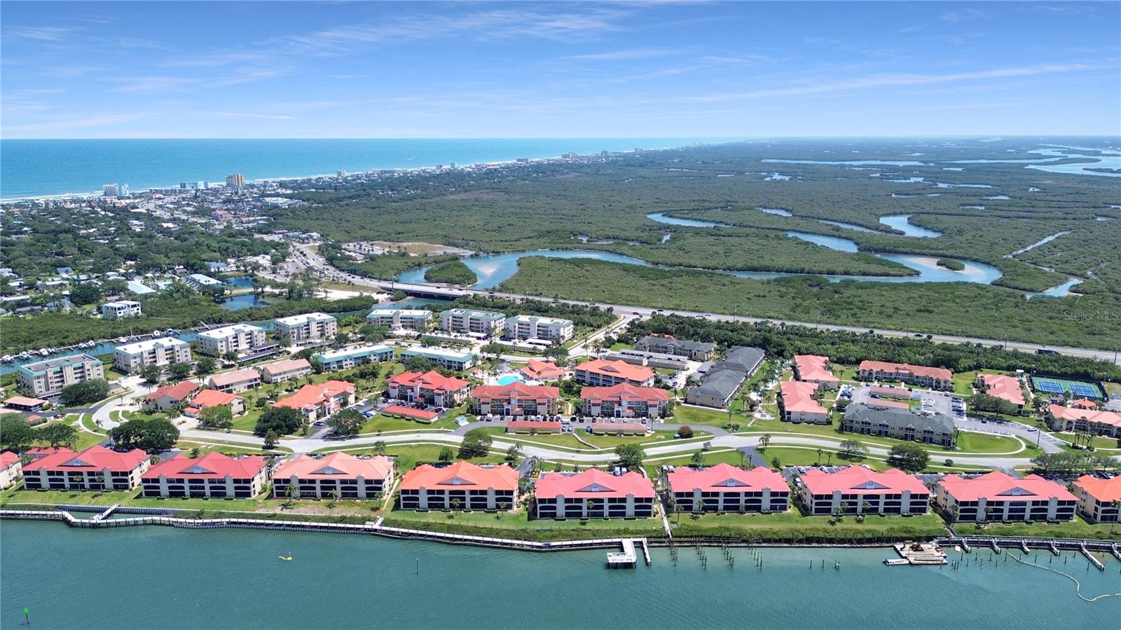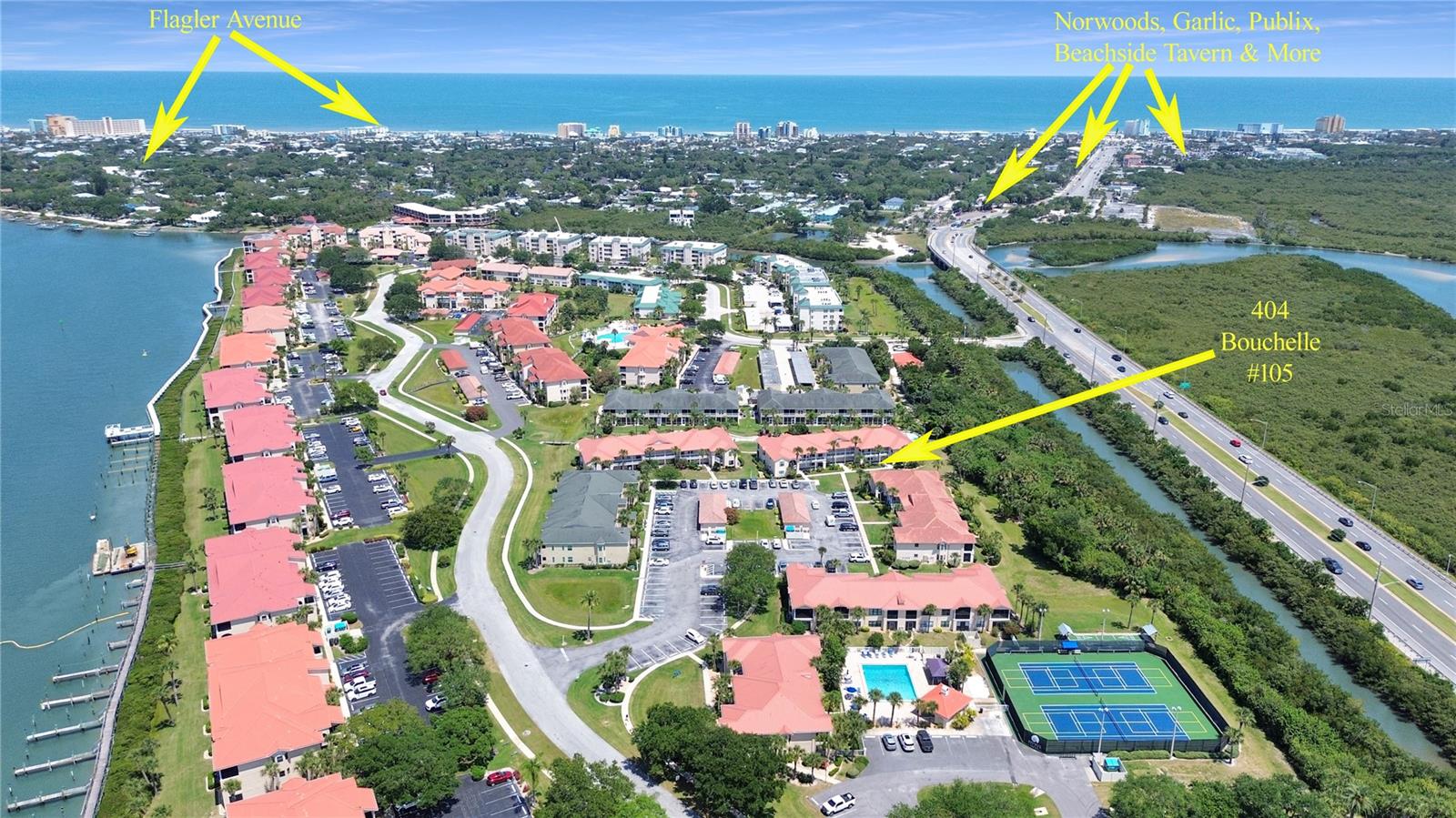 Fetae de praia perfeita, retiro de inverno ou residência em tempo integral. Muitas opções aqui! Este condomínio leve e brilhante 2-BR, 2BA, térreo, em Bouchelle Island, está pronto para o piso de parede a parede, janelas com classificação do vento e cozinha atualizada. Planta piso ideal com características como lavadora/secadora de tamanho completo, armário espaçoso e chuveiro walk-in, pátio fechado com armário de armazenamento privado. Este edifício está em uma excelente localização em Bouchelle Island, que inclui muitas comodidades difíceis de arrastar, como duas piscinas aquecidas, calçadão à beira do rio, rampa de barcos/doca/marina, campo de golfe de 18 buracos e putt, quadras de pickleball, clubhouse e estacionamento/armazenamento de barco/trailer (verifique a disponibilidade). Super perto da praia, restaurantes, compras e eventos especiais de New Smyrna Beach!