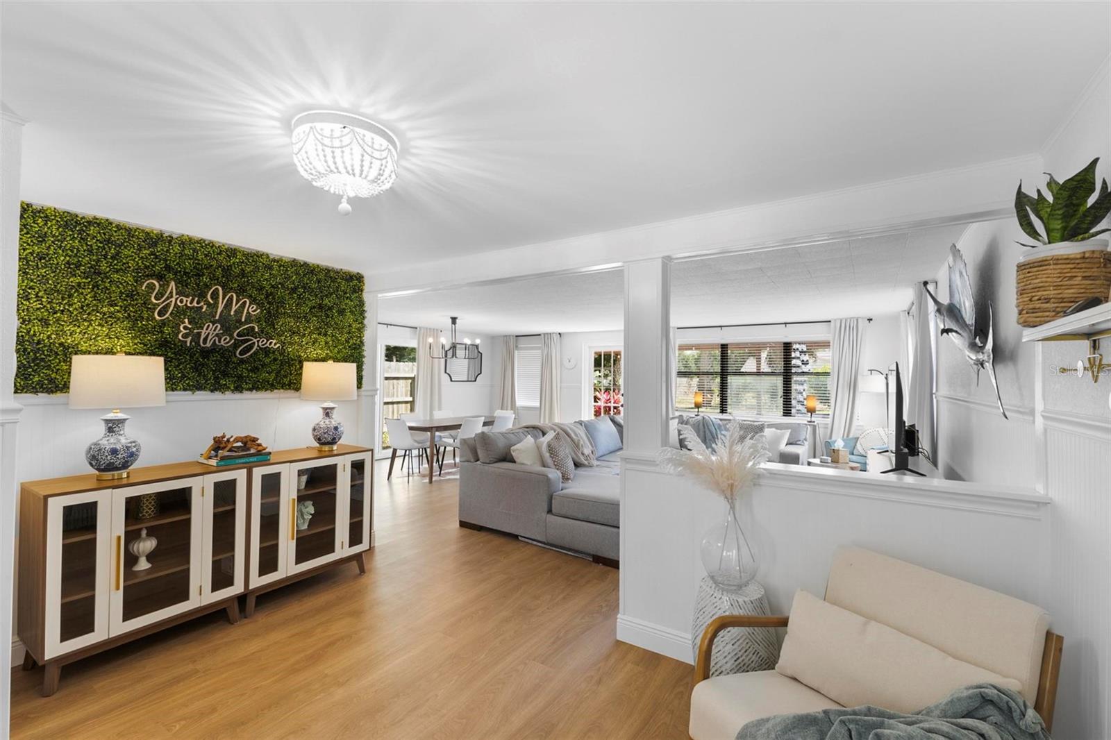Esta casa fica a quarteirões do cênico Dr. Riverside, que corre ao longo da hidrovia intracoastal. Plano de piso aberto espaçoso com novo piso de tábua de vinil de luxo por toda parte. O mestre em suíte tem um chuveiro. Pia de cozinha recentemente atualizada, backsplash da cozinha e bancadas de cozinha, hardware e facetas atualizados em banheiros, armários refinados em toda a casa, interiores totalmente pintados em 2023. A sala olha para um paisagismo iluminado lindamente bem cuidado, sistema de irrigação, um pátio iluminado e um arremesso de armazenamento. Quintal totalmente cercado. Chuveiro ao ar livre com água quente e fria. Há uma garagem de um carro grande o suficiente para mais armazenamento. Vendido totalmente mobiliado por US $ 669.000,00. Uma escapadela de fim de semana perfeita ou residência permanente.