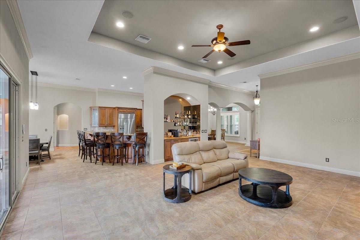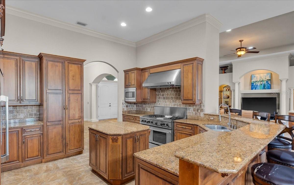 Descubra o epítome do luxo e conforto nesta requintada casa de 5 quartos, 4 banheiros e escritório situado no condomínio fechado de Venetian Bay. Com um ambiente de estilo resort e vistas deslumbrantes do lago. Ao entrar, você é recebido por tetos altos e muita luz natural, dando o tom para os amplos espaços internos. O nível principal apresenta uma espaçosa cozinha de chef equipada com eletrodomésticos de última geração, armários personalizados e uma ilha perfeita para entusiastas da culinária e reuniões. Adjacente à cozinha, a convidativa sala de estar oferece vista para a piscina e para o lago e oferece um bar molhado e acesso perfeito ao oásis ao ar livre. Retire-se para a luxuosa suíte master, que oferece um oásis privativo com um quarto espaçoso, um banheiro privativo tipo spa com banheira de imersão e chuveiro separado, além de um amplo closet. Três quartos adicionais localizados no térreo oferecem conforto e privacidade para familiares ou convidados, cada um equipado com piso de vinil de luxo, amplo espaço no armário e fácil acesso a um banheiro lindamente decorado. A área externa é um verdadeiro santuário, pensado para relaxamento e entretenimento. Saia para encontrar um amplo pátio com uma piscina e spa imaculado de grandes dimensões, cercado por uma paisagem exuberante e vistas panorâmicas do lago. Seja organizando churrascos de verão ou aproveitando as noites sob as estrelas, este retiro ao ar livre é o sonho de qualquer artista. No andar de cima, descubra a espaçosa sala familiar, incluindo lareira de pedra, elegante bar completo com armários personalizados, bancadas de granito, pia, adega refrigerada embutida e amplo balcão para preparar bebidas ou servir aperitivos. Seja para uma reunião casual ou uma festa formal, esta área certamente impressionará pela sua funcionalidade e estilo. Além disso, no andar de cima, encontre a suíte que vem completa com varanda privativa. Esta casa foi cuidadosamente atualizada com conveniências modernas e acabamentos de alta qualidade, incluindo pisos de madeira, persianas, proteção paisagística, painéis solares para aquecer a piscina e muito mais. Experimente o melhor da vida em estilo resort nesta casa impecável que oferece artesanato, sofisticação incomparáveis e vistas deslumbrantes do lago.