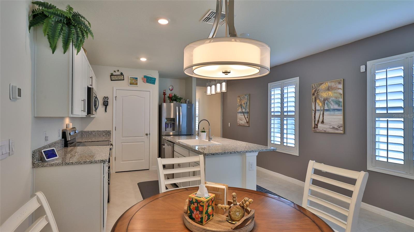 Aninhado na prestigiada Subdivisão de Palms de Baía Veneziana, esta casa mais recente de 3 quartos e 2 banheiros é uma verdadeira jóia, com uma infinidade de atualizações que garantem conforto e estilo modernos. Ao entrar, você será recebido pela elegância do piso de vinil LVP e LVP que flui perfeitamente por toda a casa. A despensa de cozinha e o closet primário estão equipados com organizadores de armários personalizados, maximizando o espaço e a conveniência de armazenamento. Aproveite o luxo de portas de vidro sem estrias em seu banho primário, enquanto as persianas de plantações adicionam um toque de sofisticação a todos os cômodos. A cozinha é o deleite de um chef, com uma pia epóxi com uma torneira de aço inoxidável extraída e aparelhos de aço inoxidável de ponta, incluindo uma geladeira de porta francesa. Os recursos adicionais também incluem iluminação atualizada e pátio frontal fechado. Ao ar livre, a cerca de vinil oferece privacidade e o pátio de pavimentador de tijolos é perfeito para entreter ou relaxar na varanda de tela fechada. O quintal meticulosamente paisagístico inclui a restrição de canteiros de flores, melhorando o apelo do meio -fio. A garagem de dois carros não é apenas funcional, mas também elegante, com um controle de garagem inteligente com piso e myq com segurança e epóxi para maior segurança e conveniência. Esta casa combina atualizações modernas com uma localização privilegiada, tornando-a uma propriedade imperdível no Venetian Bay Palms. As características da comunidade de Bay Venetian incluem campo de golfe, casa de clube, centro da cidade, trilhas para caminhada/bicicleta, compras, restaurantes e muito mais. A associação opcional do Country Club e o Community Beach Club estão disponíveis. As medições e dados estão sujeitos a erros, omissões ou alterações e devem ser verificados.