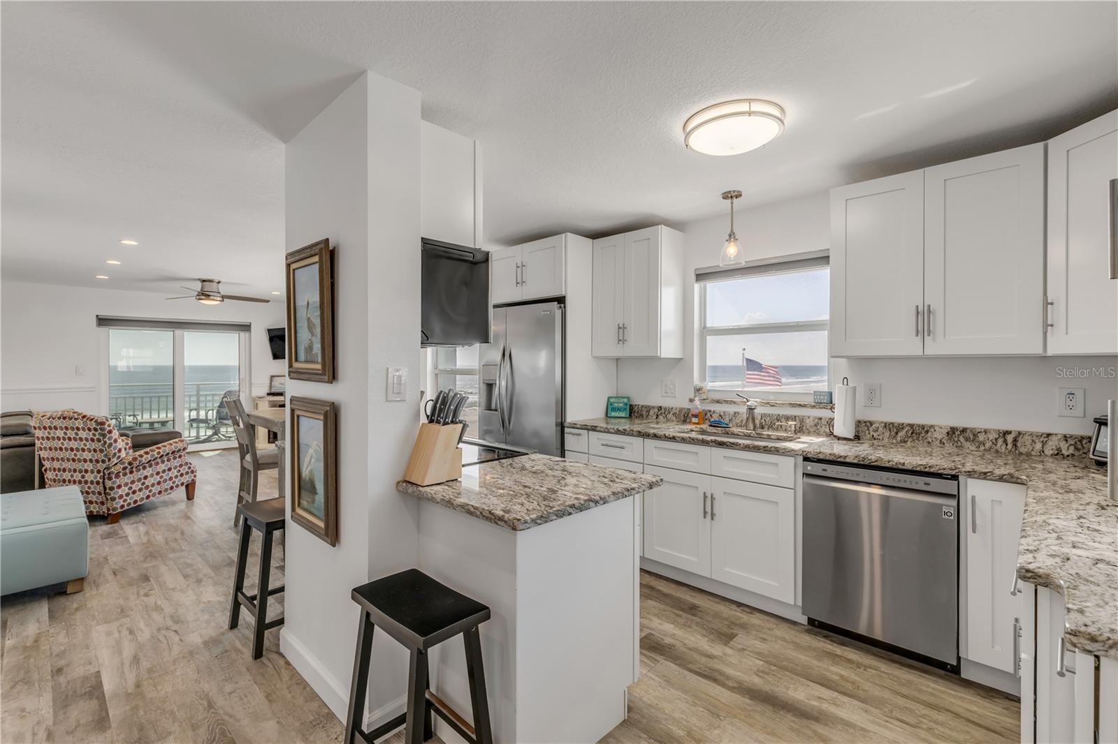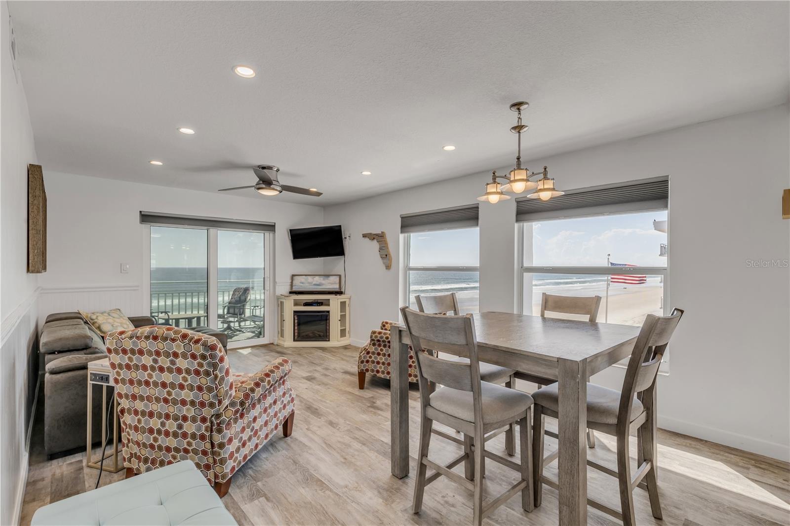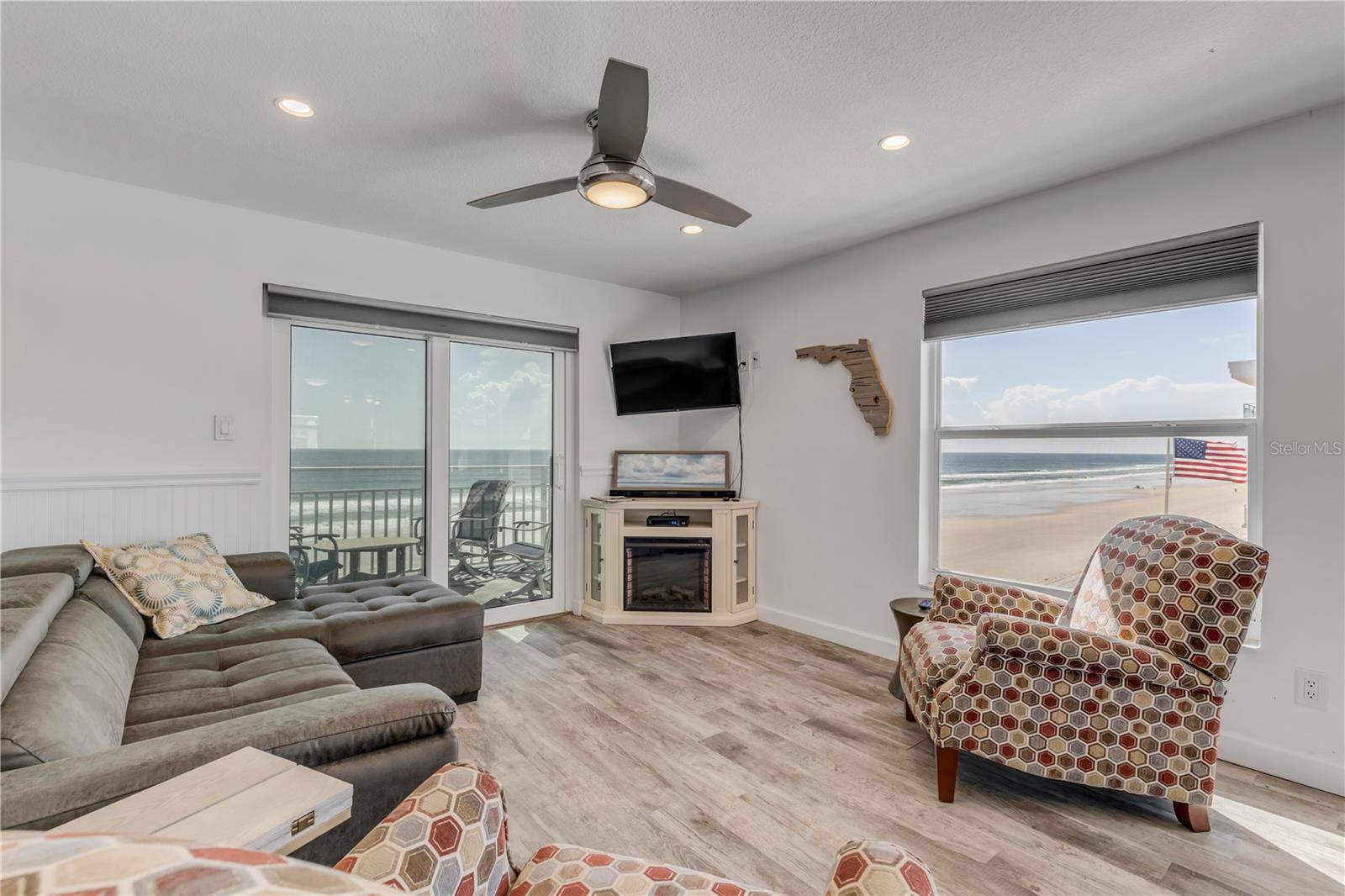 Unidade de canto direta à beira-mar, casa de condomínio totalmente mobiliada reformada em 2019. Esta casa de condomínio de 2 quartos e 2 banheiros à beira-mar fica na procurada praia sem carro nos condomínios mais desejáveis de Sea Coast Gardens II. A área de estar é espaçosa, com deslumbrantes vistas diretas para o mar. Saia para a sua VARANDA PRIVADA para apreciar o nascer do sol deslumbrante e a brisa refrescante do Oceano Atlântico. Aconchegue-se com a lareira elétrica de canto exclusiva nas noites frescas de praia durante os meses de inverno. As vistas para o mar continuam no quarto principal e o segundo quarto é perfeito para familiares e convidados. A cozinha aberta é uma delícia para o chef, com bancadas de superfície sólida, eletrodomésticos de aço inoxidável, muito espaço de armazenamento, área de bar de café/vinho e um layout perfeito para entretenimento. O luxuoso piso de pranchas de vinil flui por toda a casa, complementado por móveis modernos. Ambos os banheiros são totalmente atualizados com acessórios modernos. O HVAC foi instalado em 2021 e possui janelas de impacto e controle deslizante. No pátio comunitário, você encontrará duas piscinas GRANDES, perfeitas para se refrescar nos dias quentes da Flórida. Localizado a apenas 3-5 minutos de carro dos bairros comerciais Flagler e Canal Ave., onde você poderá desfrutar da vida noturna vibrante, lojas artísticas e restaurantes de propriedade local que New Smyrna Beach tem a oferecer. Esteja você procurando um retiro pessoal ou um imóvel para alugar com melhor rendimento, esta unidade atende a todos os requisitos. Agende sua exibição hoje.