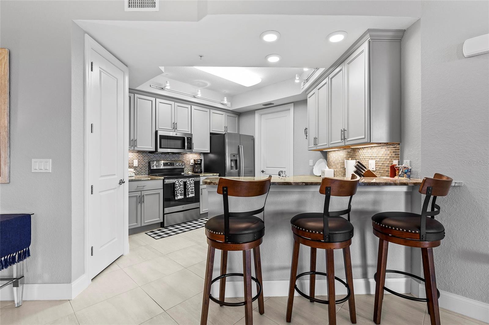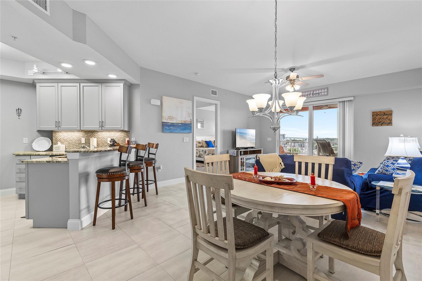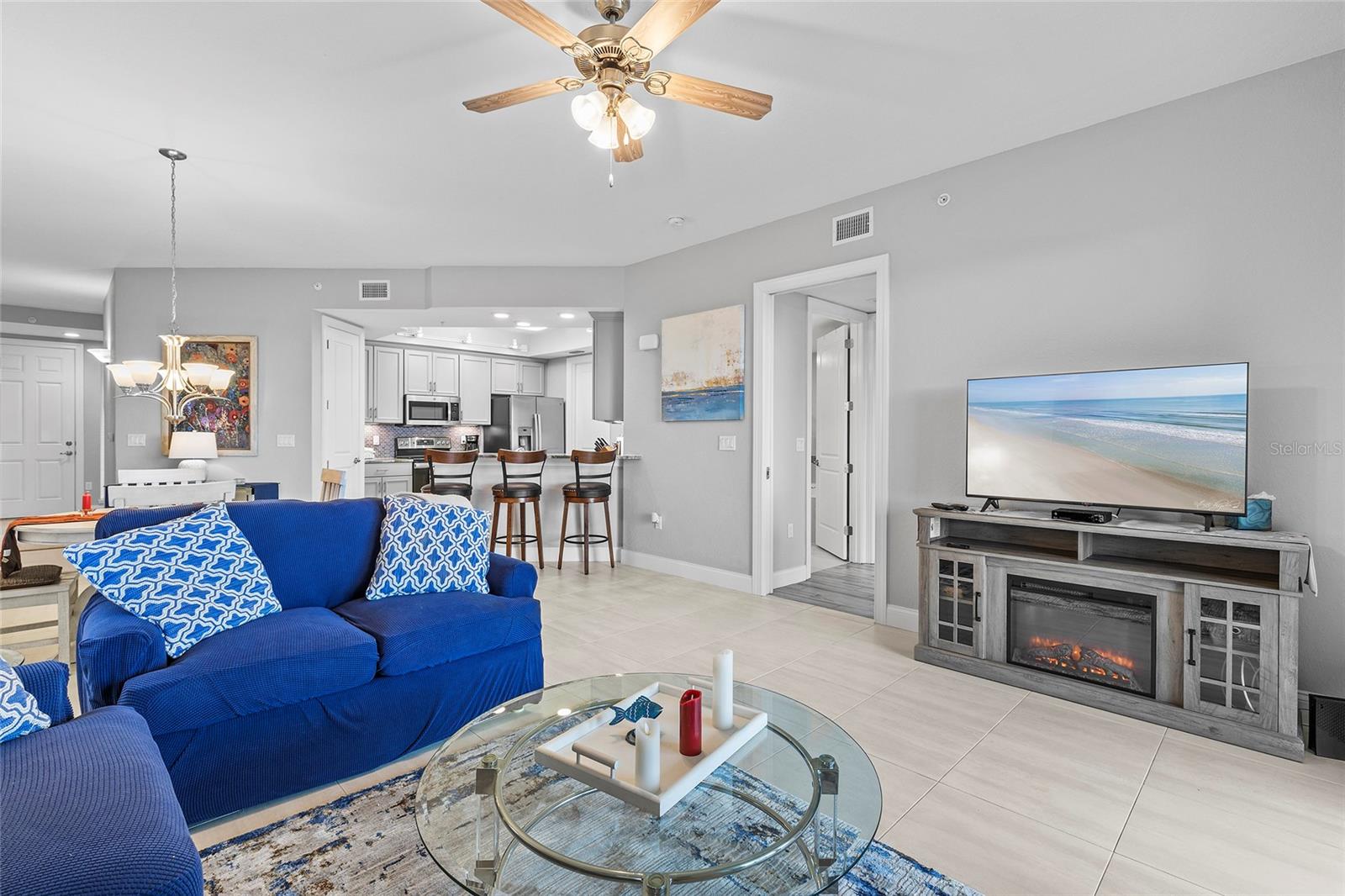 Residência intracoastal de dois quartos e dois banheiros completos em Riverwalk / Armários de madeira maciça / Eletrodomésticos GE inoxidáveis / Pia inoxidável / Bancadas de pedra personalizadas / Backsplash de telha de vidro / Vista sul, / Todos os quartos possuem closet / O quarto principal possui uma divisão Tempur-Pedic Colchão King com estrutura motorizada/ Banheiro principal com pia dupla/banheira de hidromassagem e box amplo. Grande varanda/varanda (20' X 10') Com vista para a Marina NSB, Intracoastal. Riverwalk está localizado no coração de New Smyrna Beach. Fácil acesso ao continente e a uma curta caminhada do Brannon Center, do Riverside Park e das lojas, restaurantes e festivais de artes da Canal Street. Para o leste, é fácil caminhar, andar de bicicleta ou de carrinho de golfe até os restaurantes, bares, boutiques e rampa de praia na Flagler Ave. / Espaço de estacionamento atribuído na garagem subterrânea / Armário de armazenamento privado no 5º andar. Estão disponíveis deslizamentos flutuantes para barcos em águas profundas.