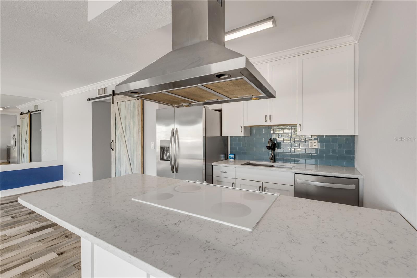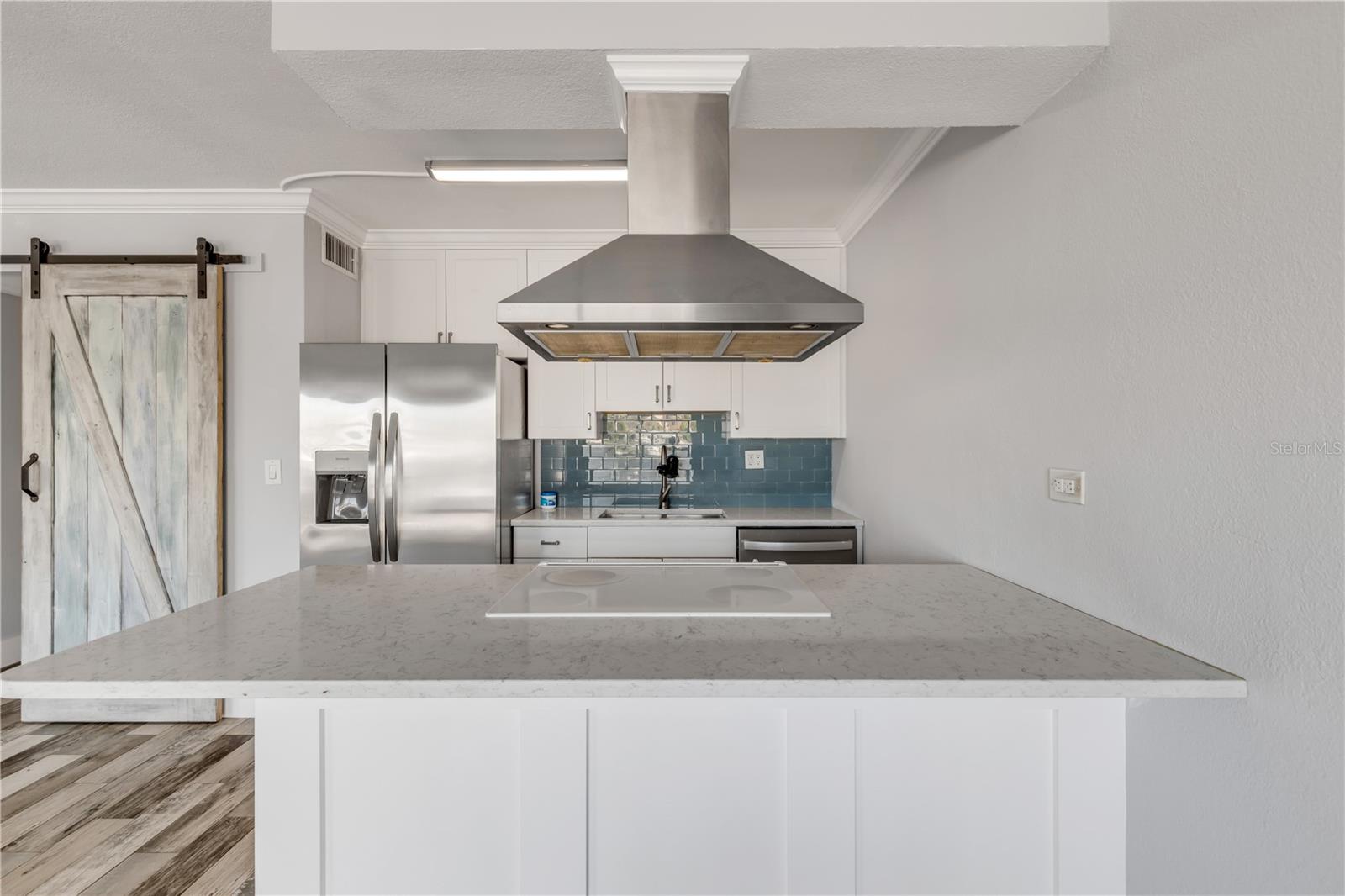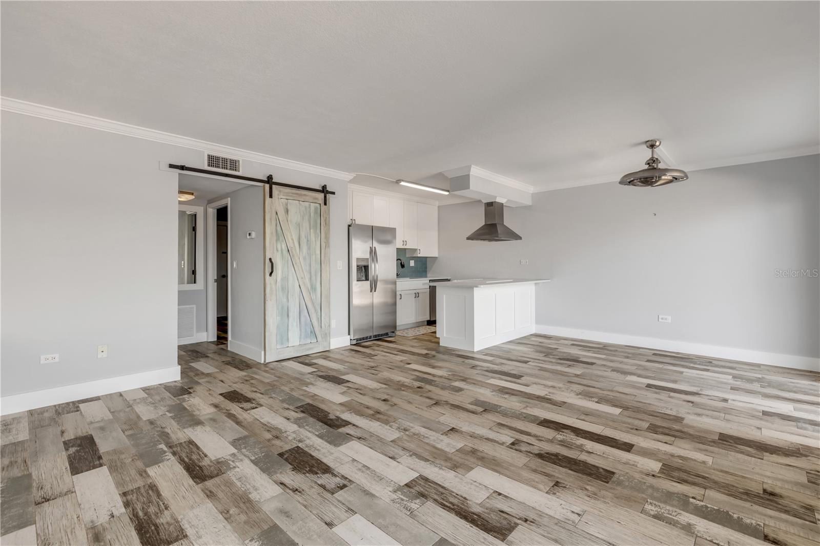 Caminhada direta no primeiro andar até a casa de hidrovias na casa da praia veneziana, New Smyrna Beach. Esta campanha brilhante e arejada, 1 cama, 1 casa de banho oferece um piso plano aberto com ladrilhos de porcelana de madeira deslizante por toda parte. A cozinha possui bancadas de quartzo, um elegante backsplash de telha, um capuz decorativo, uma barra de café da manhã conveniente, eletrodomésticos inoxidáveis e uma geladeira de 2024 do ano novo de 2024. Uma porta funcional do celeiro fecha o quarto, enquanto o banheiro possui uma bancada de superfície sólida e um chuveiro ambiente de ladrilhos encerrado em vidro. A casa do condomínio tem um espaço de estacionamento coberto. Ideal para a vida à beira -mar com fácil acesso ao intracoastal. Os deslizamentos de barco estão disponíveis via lista de espera e o armazenamento de bicicleta/caiaque está disponível a qualquer momento. A localização é fundamental, com apenas uma curta caminhada da Ave Flagler para desfrutar de restaurantes, compras e praia. Fácil de ver em um momento de aviso prévio.