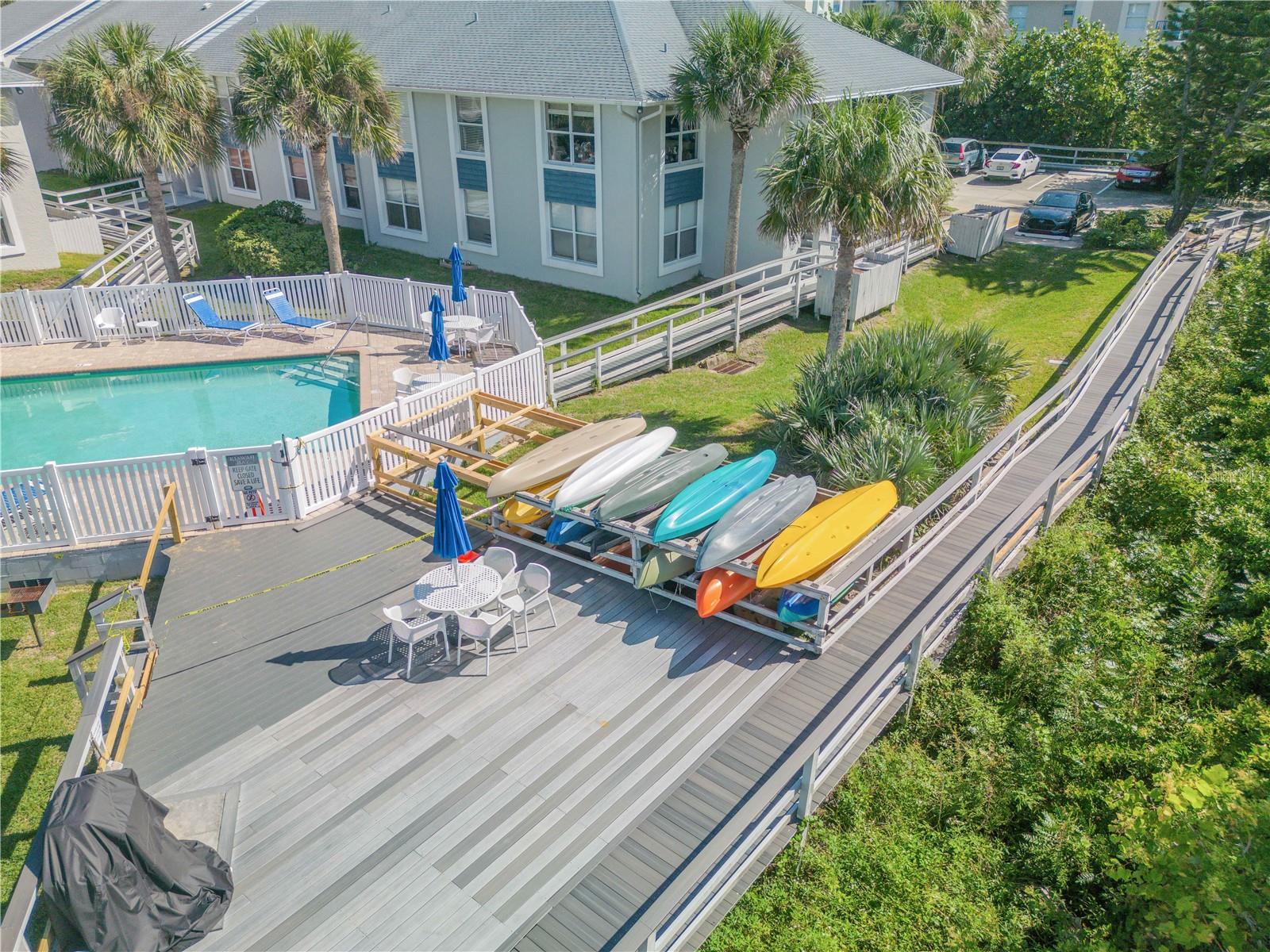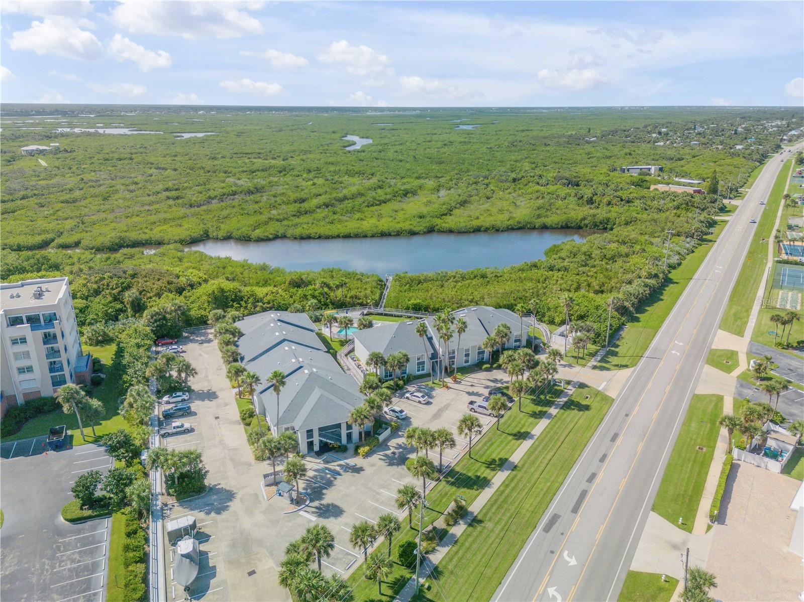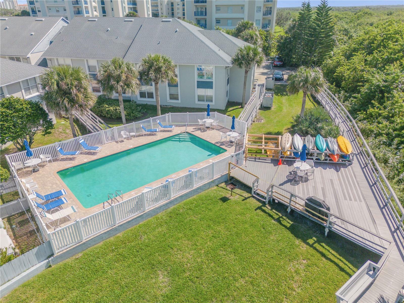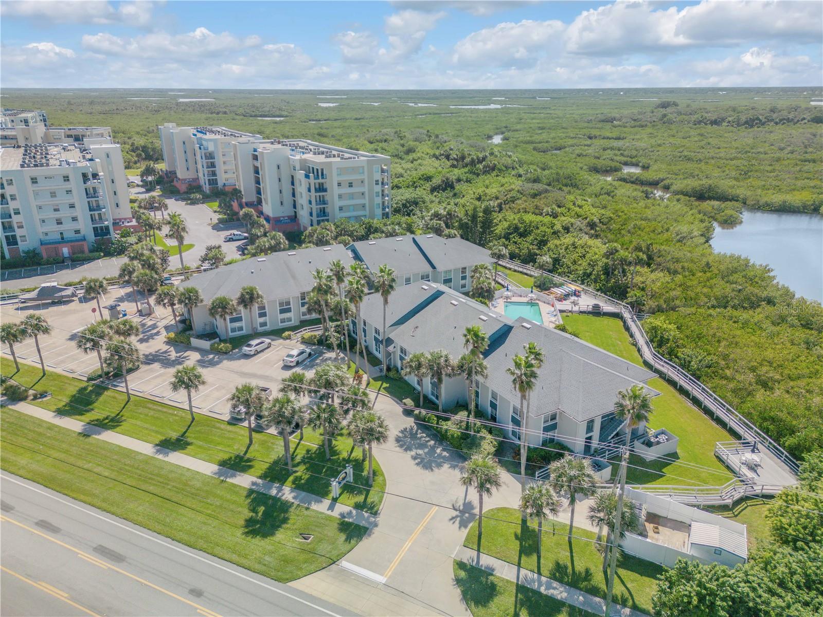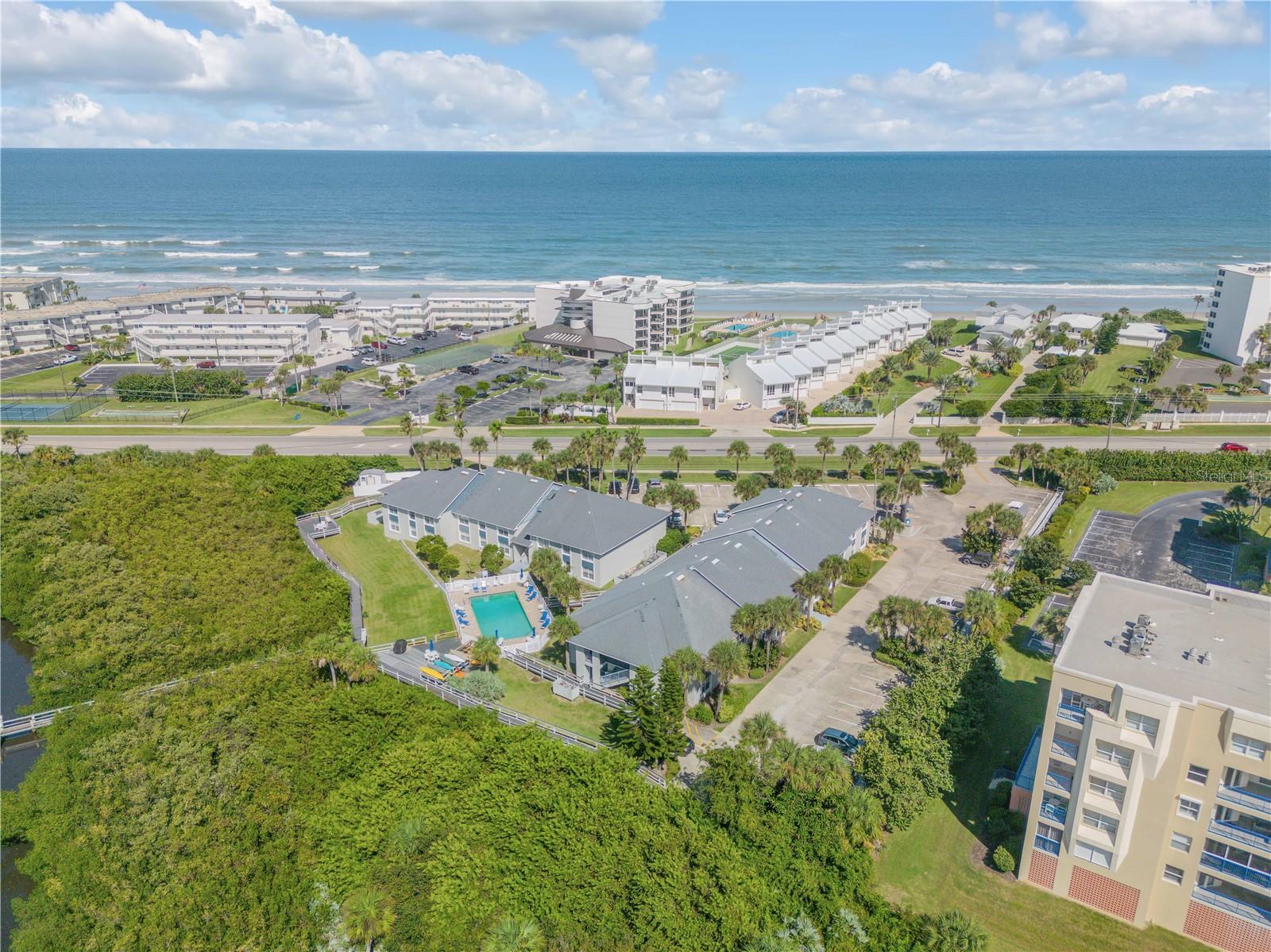 Bem-vindo ao retiro costeiro dos seus sonhos que oferece ESTACIONAMENTO DE BARCOS no local! Este lindo condomínio de 2 quartos e 2 banheiros localizado no segundo andar está perfeitamente situado na serena Lagoa, do outro lado da rua da praia em New Smyrna Beach. Aproveite os poucos condomínios da região que oferecem estacionamento para barcos, é um achado raro para os entusiastas da água! Este condomínio oferece piscina privativa, caiaques, espreguiçadeiras e cais privativo. Desfrute de tranquilidade com atualizações recentes, incluindo novos equipamentos elétricos, AC mais recentes e um novo aquecedor de água. Comece suas manhãs com um nascer do sol deslumbrante e relaxe com um pôr do sol deslumbrante, tudo no conforto da sua casa. Assista aos lançamentos de ônibus espaciais da sua varanda, adicionando um toque único à sua experiência de vida à beira-mar. Localizado a poucos minutos do JB's Fish Camp e do imaculado Canaveral National Seashore, este condomínio oferece a mistura perfeita de natureza, relaxamento e aventura costeira. Esteja você aproveitando a praia próxima ou explorando os canais, este é o local ideal para a vida costeira. Não perca esta rara oportunidade de possuir um pedaço do paraíso!