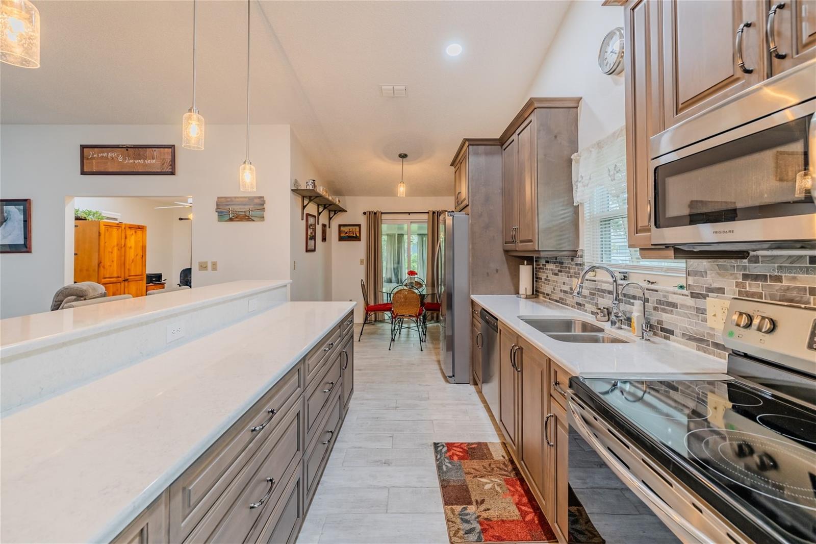 Descubra esta casa 2BR/2BA luxuosamente atualizada com escritório/escritório separado e garagem para 2 carros no coração de New Smyrna Beach! Esta casa meticulosa fica em um terreno de esquina enorme no muito procurado bairro de Pine Island, a menos de 400 metros do campo de golfe municipal e a 10 minutos de cinco outros campos. Com localização central, fica a apenas 4,8 km do centro histórico de Canal St e do outro lado da calçada das praias e das lojas, restaurantes e entretenimento da Flagler Avenue. Esta casa está repleta de recursos. No interior, desfrute de tetos abobadados, iluminação embutida, planta aberta, uma nova cozinha ultra sofisticada com impressionantes armários de madeira manchada “river rock” e parte superior de 42”, um enorme balcão de ilha com barra elevada de 18”, balcões de quartzo , backsplash, despensa embutida, máquina de osmose reversa para água potável e eletrodomésticos em aço inoxidável. A suíte principal oferece closet e banheiro privativo convidativo com banheira de jardim e chuveiro separado. Renovações e atualizações adicionais incluem um novo quarto na Flórida 2021 com novas janelas de furacão e controles deslizantes (as janelas no resto da casa são de 2014), novo piso de tábuas, novo telhado em abril de 2023, novo aquecedor de água de 40 galões em dezembro de 2023, AC 2018, nova irrigação bomba de poço raso 2023 e um título transferível de cupins. Lavadora e secadora incluídas na venda. A subdivisão de Pine Island tem uma bela piscina comunitária e clube e o HOA custa apenas US$ 400/ano. Agende uma exibição hoje e prepare-se para ficar impressionado! TODAS AS INFORMAÇÕES SÃO PRECISAS, MAS NÃO GARANTIDAS. TODAS AS MEDIDAS SÃO APROXIMADAS. OS COMPRADORES E SEUS AGENTES DEVERÃO VERIFICAR QUALQUER INFORMAÇÃO QUE CONSIDEREM IMPORTANTE PARA ELES.
