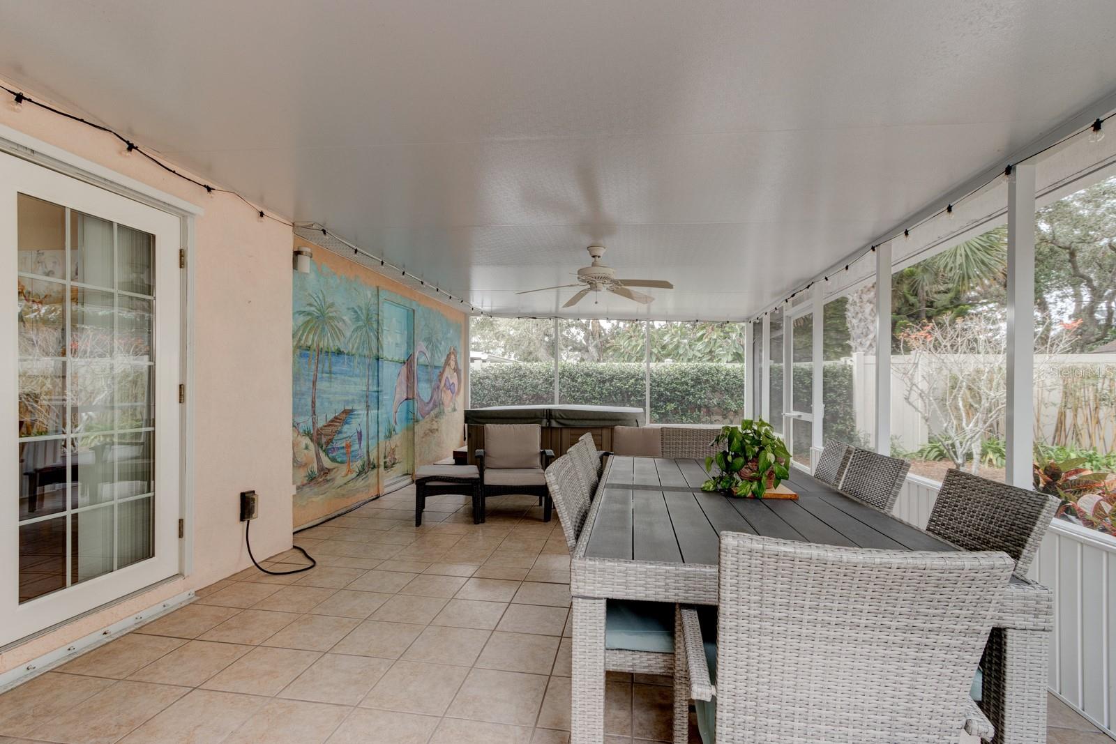 Esta joia à beira-mar meticulosamente mantida fica a apenas uma curta caminhada da praia! Ao entrar, você descobrirá um piso laminado fácil de cuidar que flui por toda a casa, com detalhes em azulejo em ambos os banheiros. A ensolarada janela panorâmica permite que a luz natural inunde a espaçosa área de estar, que se abre perfeitamente para uma grande sala de jantar e cozinha. A cozinha, totalmente remodelada em 2009, conta com bancada em granito, backsplash de azulejos, pia e torneira atualizadas, além de fogão a gás natural para tornar o preparo das refeições uma delícia. O entretenimento é muito fácil com um balcão para café da manhã e uma generosa área para refeições. A lavanderia interna torna o dia da lavanderia um pouco mais fácil! O quarto principal está localizado de forma privada, longe dos quartos de hóspedes. O banheiro principal foi remodelado em 2020 com novo piso, uma penteadeira elegante e um novo ventilador de teto. Também possui uma relaxante banheira de jardim. Os quartos de hóspedes compartilham um banheiro bem equipado com chuveiro de azulejos e portas de vidro fosco. Organizadores de armários personalizados em toda a casa maximizam o espaço de armazenamento. O verdadeiro destaque desta propriedade é o impressionante paisagismo nativo e amigável da Flórida, tanto na frente quanto nos fundos, que atrai uma infinidade de pássaros e borboletas. O jardim da frente apresenta palmeiras robellini, grama branca, grama muhly, rosas flutuantes e nocauteadas e cobertura mínima de jasmim. Na parte de trás, aproveite as noites na varanda com tela de 13x26 e no mural com tema oceânico pintado pela artista local Stephanie Hill. O quintal é um verdadeiro oásis tropical completo com bambu, arbustos de Jatropha, murta crepe e crótons. A cobertura do solo resistente à seca requer pouca manutenção, deixando mais tempo para relaxar e aproveitar a banheira de hidromassagem. E há uma linda palmeira viajante ao longo do lado leste da casa dando sombra e privacidade. A escultura moderna adiciona um toque zen ao ambiente sereno. Um galpão de porta dupla 12x16 oferece amplo armazenamento para equipamentos de gramado, brinquedos de praia ou decorações de Natal. Além disso, a casa inclui um novo aquecedor de água sem tanque, instalado em 2023, para maior eficiência, bem como um sistema HVAC 2022 com aquecimento a gás natural. Solicite uma lista completa de melhorias e manutenções.