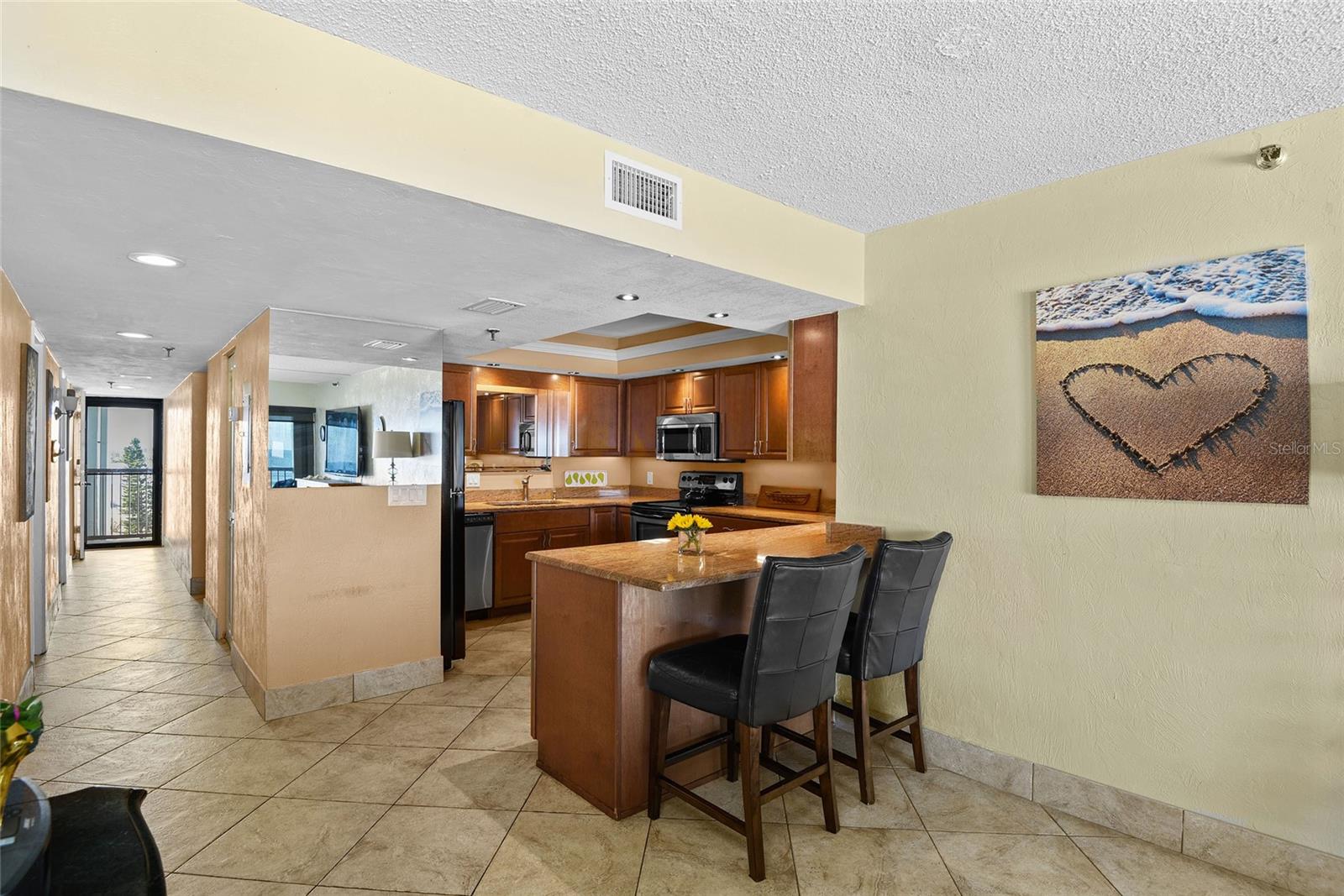 Apresentando ... a marca d'água. O condomínio mais próximo e chique à beira -mar a uma curta distância da Avenida Flagler. O impressionante condomínio à beira-mar localizado na marca d'água muito procurada! Esta unidade de 2 quartos/2 banheiros oferece vistas panorâmicas incríveis do lindo nascer do sol, da lua e da vida selvagem, juntamente com a experiência de vida costeira que você sempre quis! O conceito aberto oferece vistas deslumbrantes, conforto e estilo com características de tons de tinta costeira, piso de azulejos italianos frios e limitados de manutenção por toda parte, ventiladores de teto em cada quarto, elementos de design costeiro e muito mais! A grande sala de estar é central para esta unidade e oferece uma parede de portas de vidro deslizantes do chão ao teto que levam a uma varanda larga. Abra essas portas, ouça as ondas e sinta a brisa do oceano, fica melhor! A grande sala de jantar fora da sala da família também tem acesso à porta deslizante à varanda. O teto detalhado do teto e o lustre de vime da Tailândia deu o tom; Você e sua família desfrutarão de muitas bebidas e refeições neste espaço. A cozinha está bem decorada dentro da unidade e oferece uma barra de café da manhã para assentos ou porções adicionais, bancadas em granito e uma ampla quantidade de espaço para o gabinete. Existem duas entradas para a suíte primária, uma das quais enfrenta o oceano. Seu quarto principal é grande o suficiente para uma área de estar ou lê um recanto e possui portas de madeira deslizantes com ripas ajustáveis para uma continuação da sensação costeira! Adormecer aos sons do oceano, abrindo as portas de vidro deslizantes. O banho de suíte primário tem pias duplas, bancadas em granito, cores vibrantes, um chuveiro e um closet que você deve acreditar. Este armário é grande o suficiente para não apenas para todas as suas roupas e itens adicionais, mas pode acomodar um berço ou um berço para hóspedes transbordantes. O quarto secundário fica na frente do condomínio, com janelas voltadas para o oeste para fornecer iluminação e vista naturais. O banheiro secundário também possui bancadas em granito e uma combinação de chuveiro/banheira. A unidade também possui um grande armário de armazenamento junto com uma lavanderia; Que bônus! Esta unidade vem com uma garagem privada de um carro grande o suficiente para um SUV e espaço para armazenar todos os seus brinquedos de praia, além de um estacionamento aberto adicional e um amplo estacionamento de hóspedes! A comunidade de marca d'água inclui uma quadra de tênis, que também é alinhada para o Pickleball, e possui uma rede de pickleball. A piscina grande e aquecida tem uma área de convés com espreguiçadeiras, mesas e churrascos para desfrutar e hospedar seus convidados, sem mencionar a casa da piscina, que oferece dois banheiros e uma área de mudança. O nascer do sol e a lua da sua varanda são incomparáveis e todas as manhãs oferecerão uma nova paleta de cores e vista que você nunca vai querer perder. A unidade fica a uma curta distância da Avenida Flagler, que mostra toda a nova praia de Smyrna tem a oferecer com música ao vivo, restaurantes e lojas pitorescas! A marca d'água faz uma escolha perfeita para uma casa primária, uma casa de férias ou como adição ao seu portfólio de investimentos. Ligue para agendar sua consulta hoje e nos mostrar como a vida costeira deve se sentir!