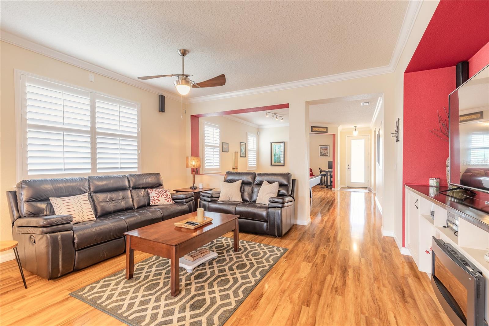 Esta é uma casa "obrigatória" se você estiver no mercado para comprar uma casa que oferece muito e tem o preço de vender! Esta casa de 3 quartos e 2 banheiros, com uma sala/escritório flexível adicional, está localizada em Venetian Bay. Ele não só tem tudo, mas está realmente pronto e carregado com atualizações e melhorias por dentro e por fora. O telhado de ladrilhos, a nova tinta externa, o teto de língua e abastecimento na varanda frontal e traseira e paisagismo de pedra ao redor do perímetro de toda a casa destacam esta casa. O grande pátio, que foi pintado recém-pintado, acrescenta dimensão e espaço extra para um tempo silencioso ou divertido. A garagem possui um piso revestido de epóxi e escadas no sótão puxadas com madeira compensada para armazenamento extra. Um novo ar condicionado e aquecedor de água foram instalados em 2022. A casa possui pisos de madeira projetados por toda parte. O Mestre e o Banho de Guest foram atualizados com um chuveiro de ladrilhos de última geração. A cozinha está equipada com bancadas de quartzo, um backsplash e aparelhos de aço inoxidável. Os recursos adicionais incluem um centro de entretenimento personalizado com alto-falantes de som surround na sala de estar e uma grande sala de jogos/sala de bônus com uma mesa de bilhar incluída. As persianas decorativas de Bahama nas janelas aprimoram o charme desta casa. Na área de jantar, você tem uma vista clara da cozinha e da sala de estar. Se você ainda não encontrou sua casa perfeita, não deixe que este fugisse - escapasse sua exibição particular agora! Todas as informações devem ser precisas, mas não garantidas.