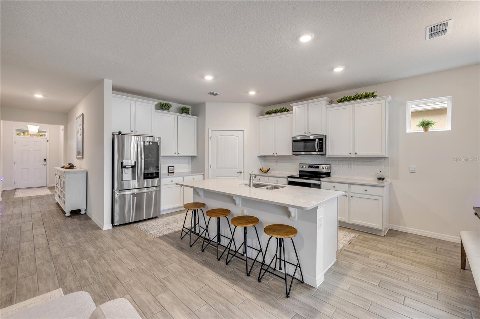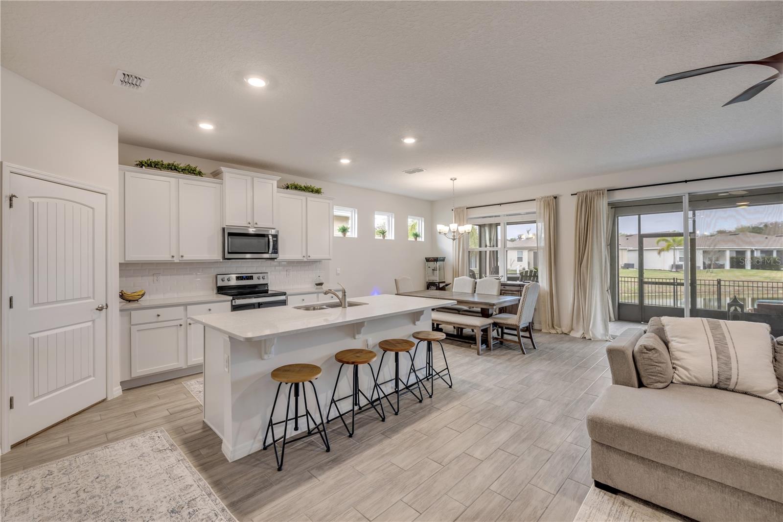 Oportunidade rara-casa de 4 quartos na seção fechada da Reserva de Folhas de Oak | Del Ray Floor Plan Bem-vindo à 1722 Red Rock Road, uma casa lindamente mantida de 4 quartos e 2 banheiros, na seção fechada muito procurada da reserva de folhas de carvalho em New Smyrna Beach. Apresentando a planta baixa do Del Ray, que não está mais disponível para novas construções, esta casa apresenta uma rara oportunidade de possuir um layout cuidadosamente projetado em um local privilegiado. Entre para descobrir um design convidativo de conceito aberto, tetos altos de 9 pés e luz natural abundante. A cozinha gourmet é um destaque, com bancadas de quartzo, utensílios de aço inoxidável, uma ilha espaçosa e uma despensa com prateleiras e armazenamento personalizados-perfeitos para qualquer chef doméstico. A suíte primária oferece um retiro privado com vaidades duplas, um chuveiro e não um, mas dois generosos closet. Três quartos adicionais oferecem flexibilidade para os hóspedes, um escritório em casa ou uma sala de jogos. Desfrute de vistas tranquilas da água do seu quintal cercado e relaxe no Lanai impecavelmente projetado. Este espaço ao ar livre totalmente exibido apresenta ventiladores de teto atualizados, cortinas de privacidade do chão ao teto e pavimentadoras elegantes, levando a uma espaçosa área de grelhar-ideal para entretenimento. Como residente da Oak Leaf Reserve, você desfrutará de comodidades no estilo resort, duas piscinas e equipamentos de fitness ao redor da lagoa da frente. Além disso, você está a poucos minutos das compras, jantares, campos de golfe e a deslumbrante costa de New Smyrna Beach. Não perca esta rara oportunidade! Programe sua exibição particular hoje.