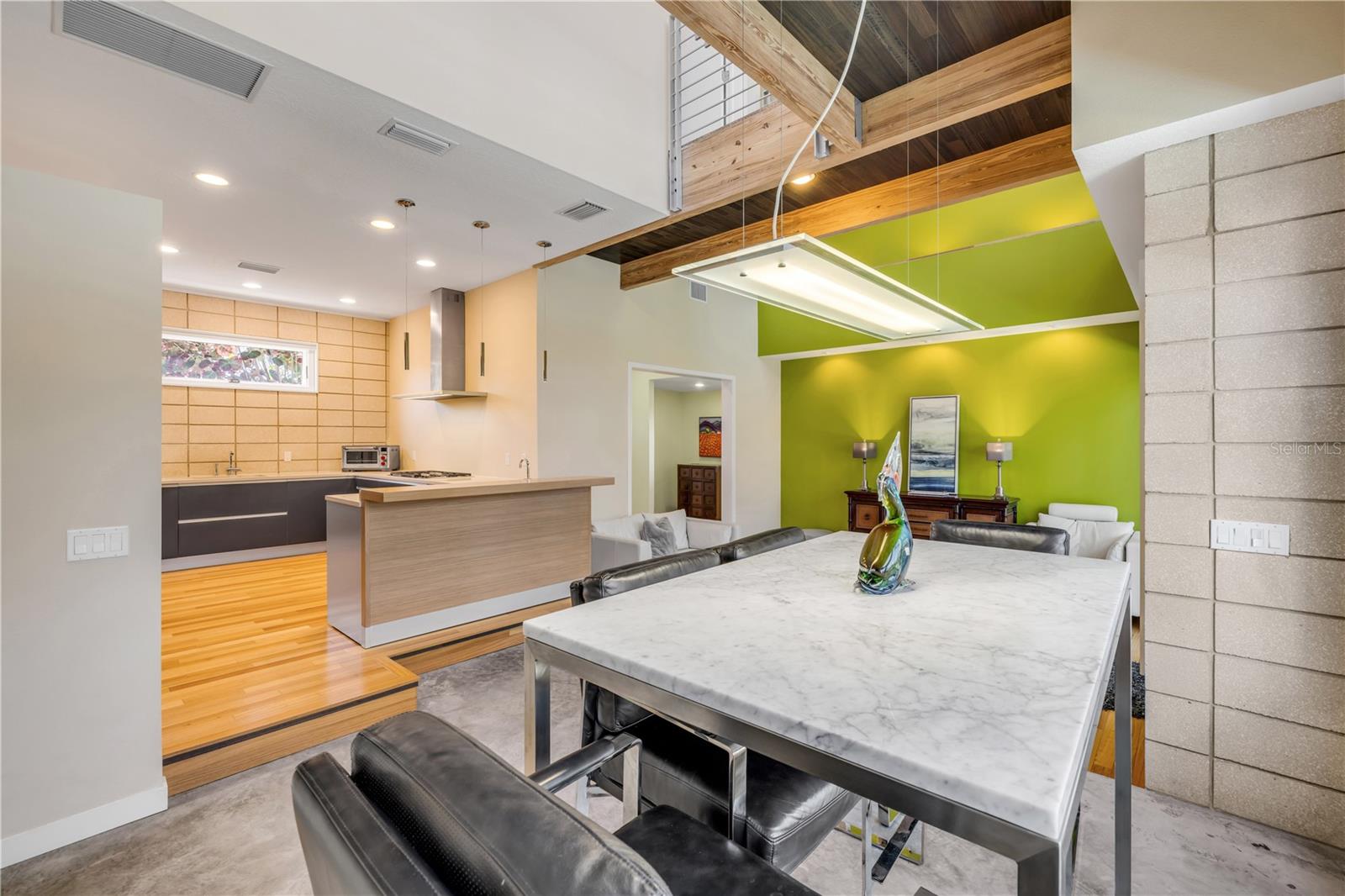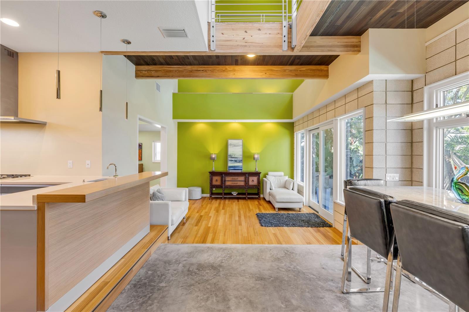 North Beach Gated 3Br, 3 BA Contemporary Pool Home. Aninhado entre a via hidrográfica intracoastal e a praia de New Smyrna, esta casa exala apelo e está a poucos passos da praia e da caminhada das dunas. Uma vez pela entrada fechada, o paisagismo tropical exuberante recebe você. Esta casa personalizada possui pisos de madeira de concreto polido e eucalipto e tetos de 25 '. O quarto do primeiro andar é acessado através de portas duplas no vestíbulo e adjacente ao quarto, você encontrará um banheiro completo com ladrilhos decorativos do chão ao teto. A cozinha gourmet apresenta armários de valcucina italiana, eletrodomésticos e aparelhos de aço inoxidável e aparelhos Miele, bancadas de quartzo, duas pias e uma espaçosa despensa. A sala de jantar apresenta paredes de blocos de concreto expostas com vistas para a piscina. O Grand Living Space ao lado da piscina e da sala de mídia. Os caminhos do segundo andar ignoram o piso principal, levando a uma luxuosa suíte primária, com armários internos e embutidos. O banheiro primário oferece pias duplas, chuveiros duplos e bancadas de quartzo. Quarto 2 com suíte, apresenta bancadas de vidro e uma banheira de concreto polido. A lavanderia do 2º andar com banheira de aço inoxidável profunda está convenientemente localizada. A Garage/Guest House de dois andares possui espaço de bônus adicional adequado para oficina, suíte sogra ou espaço adicional. Uma piscina de 40 ', pátio coberto, fogueira e chuveiro ao ar livre aprimoram a vida ao ar livre. Esta casa possui um novo telhado e revestimento de Pac, generac inteiro generac Gerador de gás natural, duas unidades de A/C de dois anos e aquecedor de água quente sem tanques, janelas com classificação de Hurricane Anderson e câmeras de segurança da marca. Acesso à praia, o Smyrna Dunes Park com praia de cachorro e píer de pesca estão a poucos minutos. As lojas, restaurantes e entretenimento da Flagler Avenue estão a 1,5 milhas de distância, um passeio de bicicleta de lazer. Não é necessário seguro contra inundações.