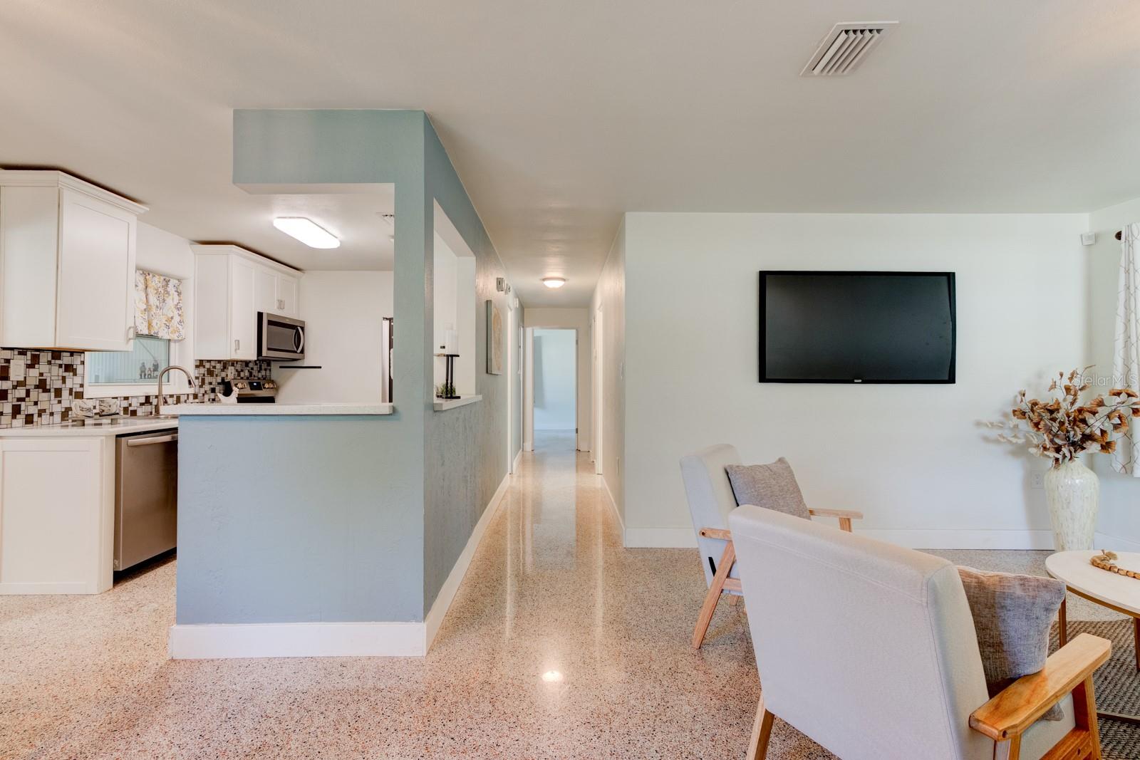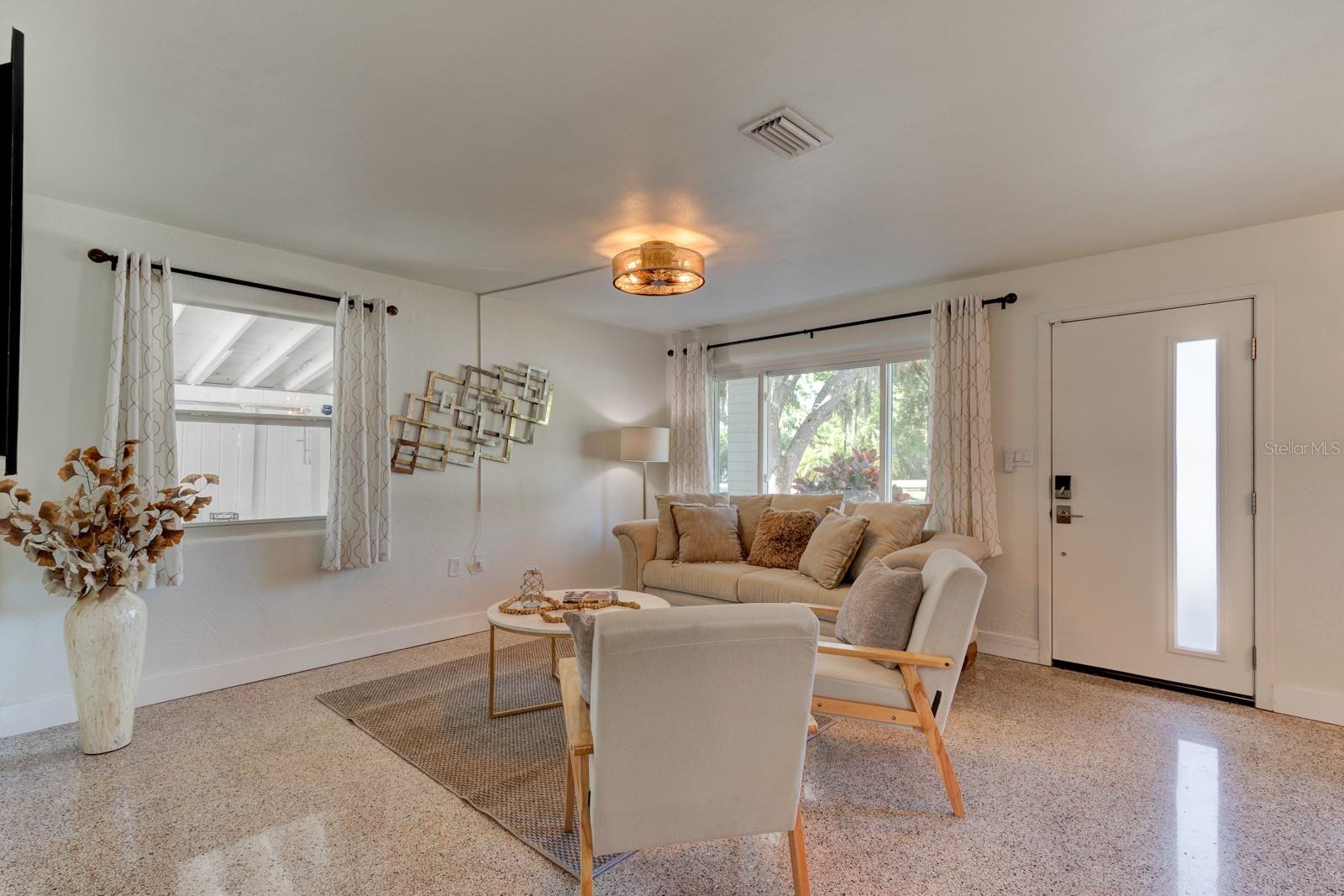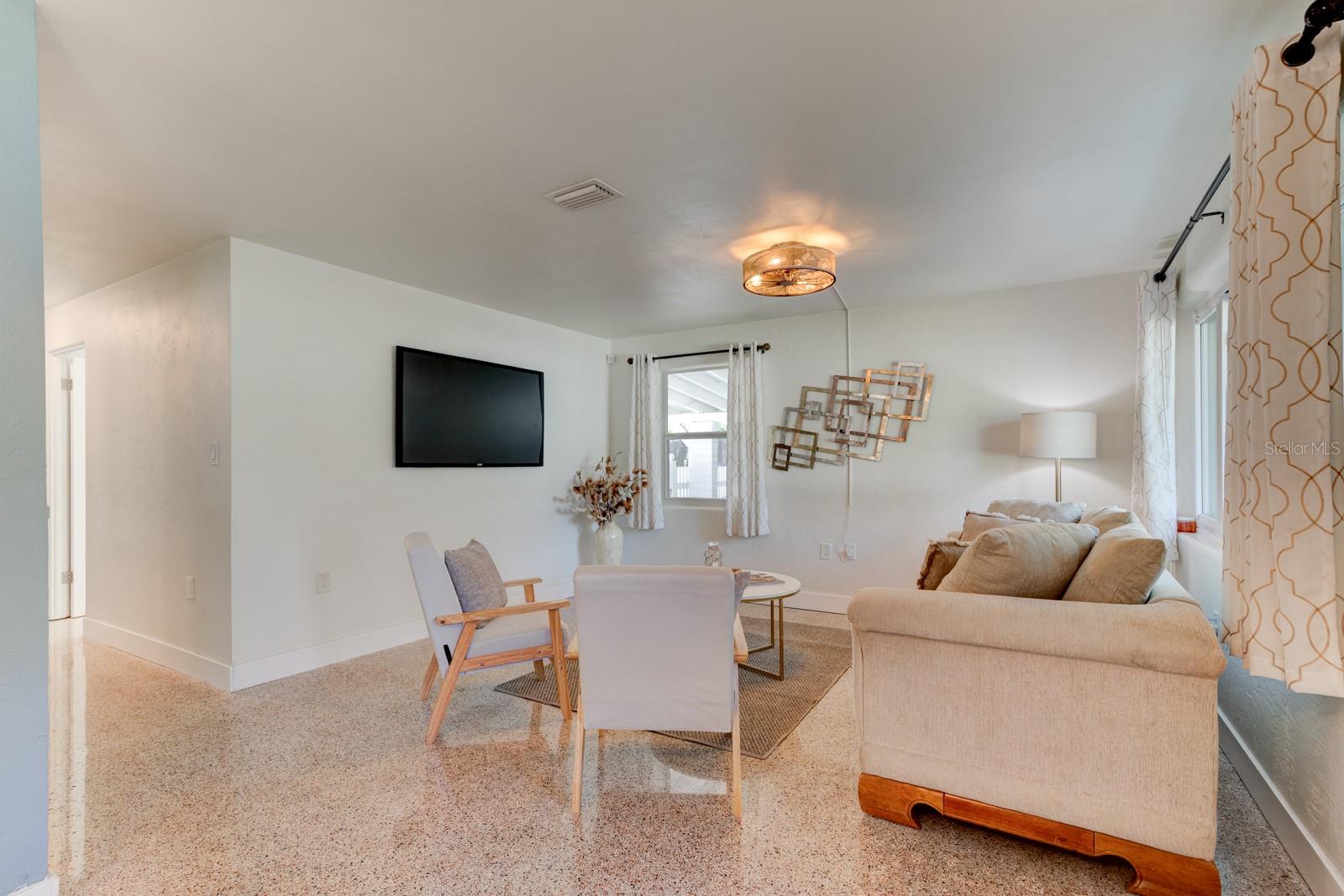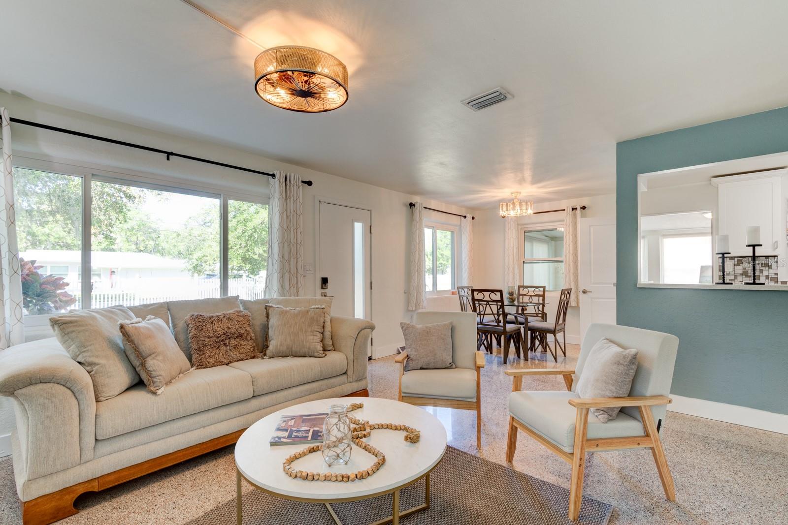 Entre nesta casa lindamente remodelada, onde o charme clássico encontra o estilo moderno de meados do século. Você imediatamente se apaixonará pelos pisos de terrazzo refinados e da planta baixa e arejada. A cozinha atualizada possui armários brancos nítidos com toneladas de armazenamento, uma despensa com prateleiras de tração convenientes, bancadas de superfície sólidas e um backsplash em azulejo geométrico ousado que une tudo. Além disso - todos novos aparelhos de aço inoxidável! A cozinha abre para a sala de estar, permitindo uma conversa com seus convidados e família! Logo na cozinha, a versátil sala da Flórida é ideal para um escritório em casa, estúdio de arte, sala de jogos ou qualquer coisa que seja adequada ao seu estilo de vida. Ele permanece confortável o ano todo, graças ao seu próprio sistema dedicado de mini-split e também inclui a área de lavanderia interna para maior conveniência. Todos os três quartos oferecem um amplo espaço, e os banheiros atualizados apresentam vaidades de madeira com ripas elegantes com gavetas de perto-continuando a estética moderna de meados do século. As atualizações adicionais incluem: telhado de metal mais recente, janelas emolduradas de PVC de dupla panela, todas as novas portas internas e externas, galpão de armazenamento 8x12 e quintal totalmente cercado. Tudo isso em uma localização privilegiada - apenas minutos para fazer compras, refeições, compras e, claro ... a praia!