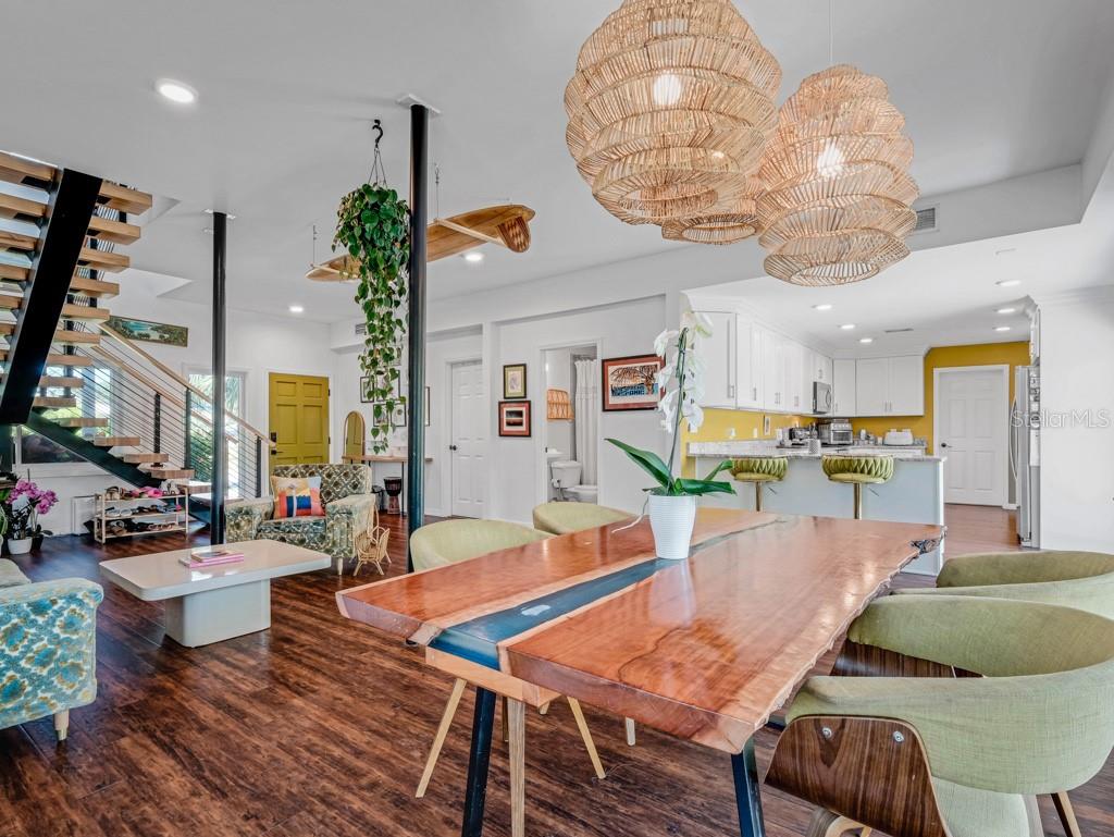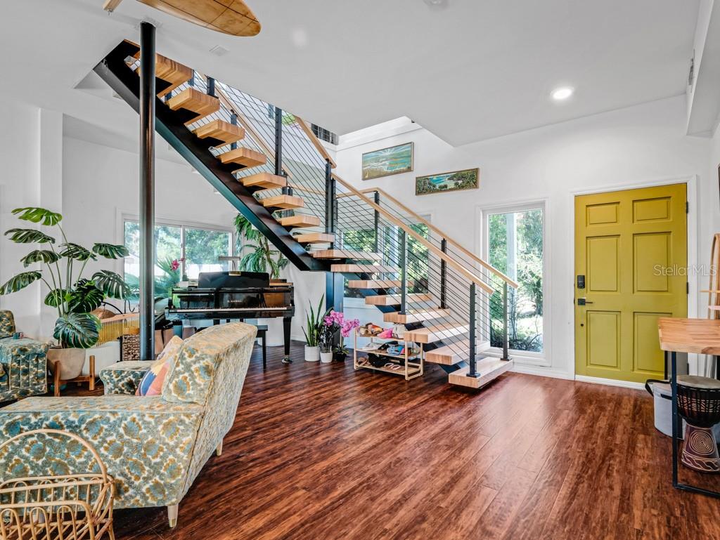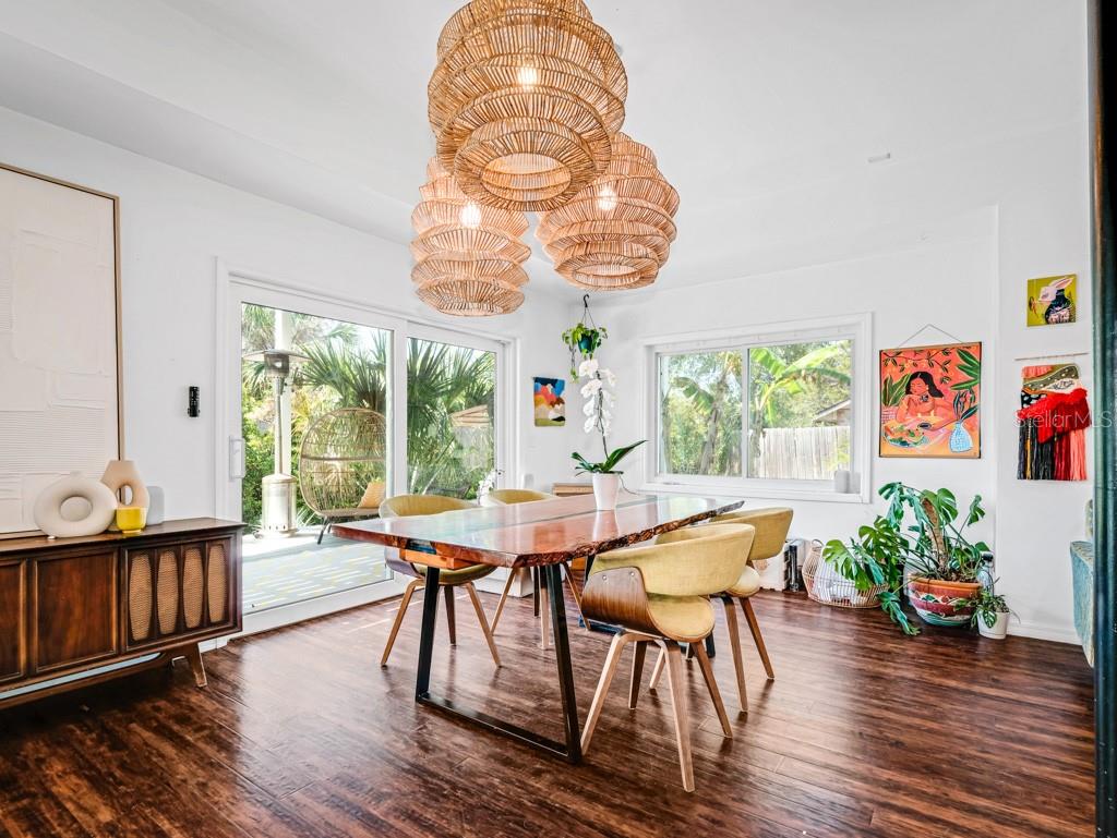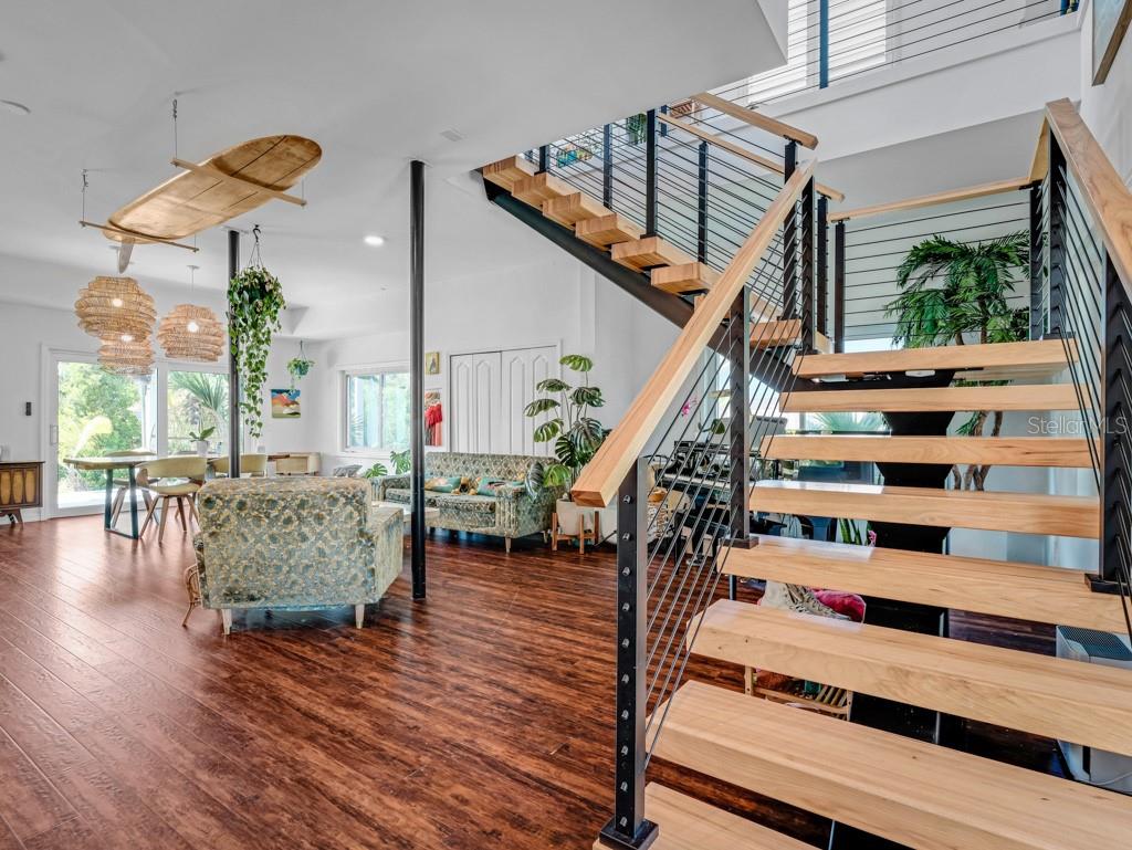 Vistas desobstruídas do pôr -do -sol sobre a ampla lagoa do estuário, levando à hidrovia intracoastal. Inicie seu SUP, caiaque, canoa ou águas pessoais de Shallows preferidas logo após o quintal, chegando aos dedos da linda rede de canais de maré. Milhas de exploração do lado de fora da porta dos fundos. Esta grande casa de família única com quartos de 4 no segundo andar (dois dos quais têm banheiros privativos) e um quarto no térreo atualmente usado como espaço de trabalho. Salas vivas/familiares nos primeiros e no segundo andares, e um deck perfeito assumindo a serenidade da lagoa. Mais de 3000 pés quadrados de espaço vital em um enorme lote de 103x180 pés. Acesso à praia a uma curta caminhada para o leste, bem como vários restaurantes locais e uma mercearia. Muitas atualizações modernas, incluindo painéis solares que compensam as contas de serviços públicos, escada flutuante de conceito aberto, janelas de impacto com classificação de vento por toda parte, sistema de filtração de água de osmose reversa, isolamento de pulverização em sótão, estação de carregamento de veículos elétricos, bem para irrigação, aquecedor de água sem tanque de gás natural e muito mais. O lar está localizado em uma zona de inundação X, o lado oeste do lote dentro dos manguezais é AE. O estuário é maré e a água nunca chegou à parte da grama do quintal. Muito espaço para um barco, trailer, piscina ou todos os três!