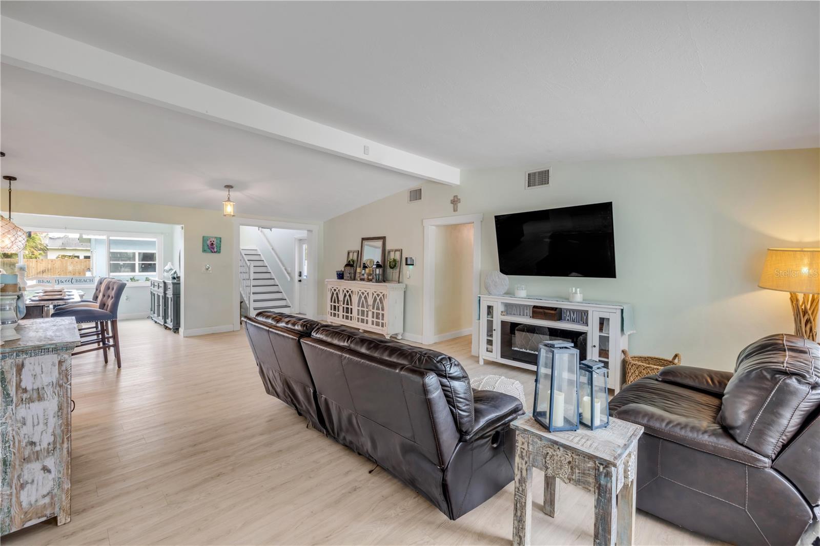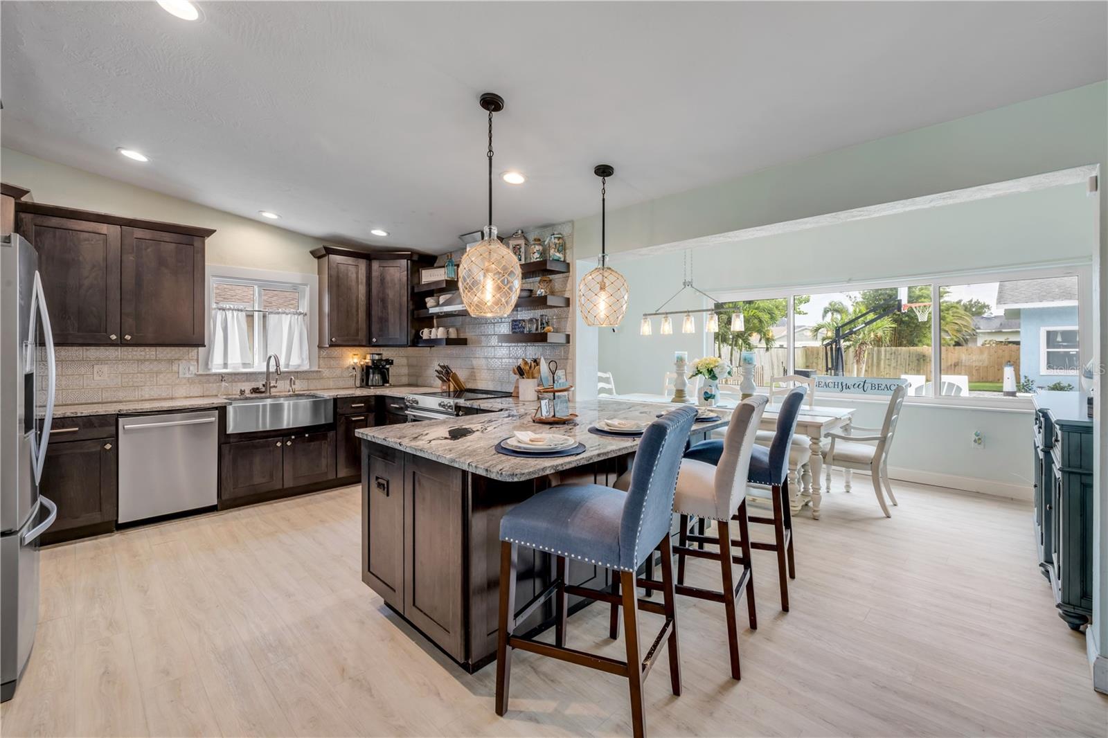 Desfrute de vistas tranquilas da água, incluindo um vislumbre do farol icônico da entrada de Ponce com vistas incríveis do quarto principal. Uma remodelação completa da cozinha com armários de onyx, bancadas de granito, backsplash e utensílios de cozinha. Uma reforma do segundo andar foi concluída em 2018, com piso de Pergo, moldagem por coroa e tons costeiros frescos. Entre 2020 e 2021, a casa foi transformada ainda com piso de tábua de vinil de luxo em todo o nível principal, uma nova iluminação elegante e a adição de uma piscina de água salgada de 45'x20 parada com um spa de borda infinita, prateleira de descanso e limpeza cercada por pavimentadoras imaculadas. O exterior, incluindo uma dependência de 400 pés quadrados de eletricidade, foi recém -pintada em 2022. Em 2025, a experiência de vida ao ar livre foi elevada novamente com uma garagem de pavimentação prolongada, canteiros de flores de rochas do mar, Lush Augustine Grass, paisagismo atualizado e um novo sistema de irrigação. Seja hospedando um churrasco no pôr do sol no pátio coberto duplo, reunindo -se ao redor da fogueira ou assistindo à beira da piscina da TV, esta casa oferece espaço incomparável para entretenimento e relaxamento. A dependência isolada é perfeita como uma casa de piscina, suíte de hóspedes, sala de jogos ou estúdio. As características que aceitam animais de estimação incluem uma corrida de cachorro cercado, porta de cachorro e amplo espaço para passear. A poucos minutos da rampa pública de barcos e a uma rápida viagem de carrinho de golfe até Canal Street, Flagler Avenue e a praia - esse é o estilo de vida que torna a nova praia de Smyrna tão especial. As atualizações adicionais incluem um telhado de 2018, 2024 no andar de cima A/C, termostatos sem fio e entrada sem chave. Charme costeiro, atualizações atenciosas e um local imbatível - este é o NSB que vive no seu melhor.