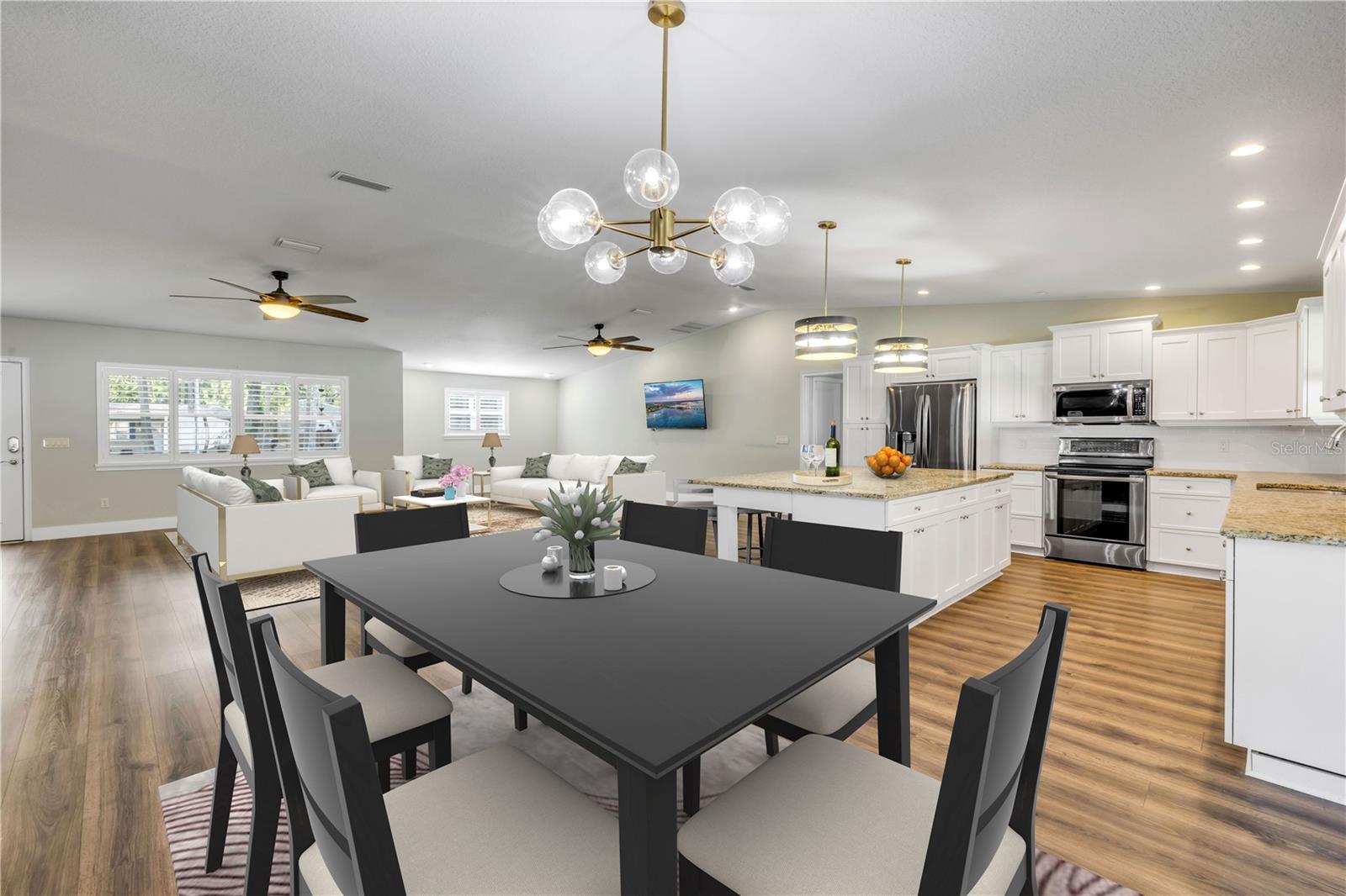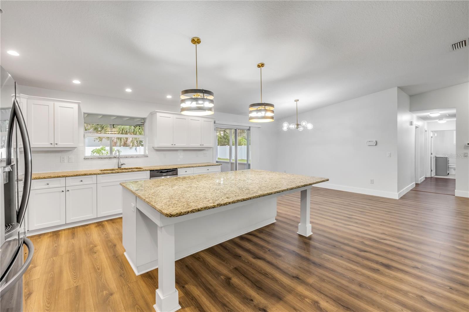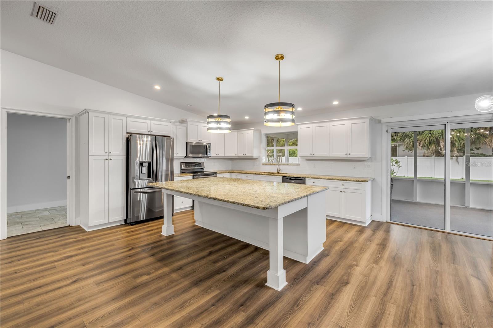 Situado em um grande lote de meio hectare de canto, sem HOA, esta espaçosa casa de 4 quartos e 2 bancos oferece mais de 2.300 pés quadrados de espaço de estar lindamente renovado-perfeito para relaxar a Florida que vive a apenas 5 minutos da praia. A casa recebe você com uma planta piso de conceito aberto, destacado por uma grande sala grande que flui perfeitamente para a cozinha e as áreas de jantar. A cozinha de parada de show apresenta uma impressionante ilha de 5 'x 8', armários brancos elegantes, bancadas em granito e utensílios de aço inoxidável. Grandes vistas com quadros de janelas do jardim de ervas, criando um lugar pacífico e inspirador para cozinhar. Ideal para entretenimento, a espaçosa sala de jantar se encaixa facilmente em uma mesa de 8 lugares e se conecta a uma varanda exibida-criando o ar livre para um prazer durante todo o ano. A suíte primária de grandes dimensões inclui um closet e um banho privativo com pias duplas, bancadas em granito e armários atualizados. Dois quartos de hóspedes estão dobrados do outro lado do corredor, compartilhando um banheiro completo com uma combinação de banheira/chuveiro. Um quarto quarto está localizado no lado oposto da casa, tornando -o ideal como um escritório em casa ou um retiro privado de hóspedes. As atualizações adicionais incluem um telhado de 2016, pisos de tábua de vinil de luxo, persianas de plantações, calhas de cadeia de chuva arquitetônicas, cercas de vinil e uma área de oficina/armazenamento com ar-condicionado separado, perto da garagem. Com muito espaço de estacionamento para o seu barco ou trailer, esta propriedade combina conforto, estilo e liberdade - todos a poucos minutos de uma das praias mais desejáveis da região.
