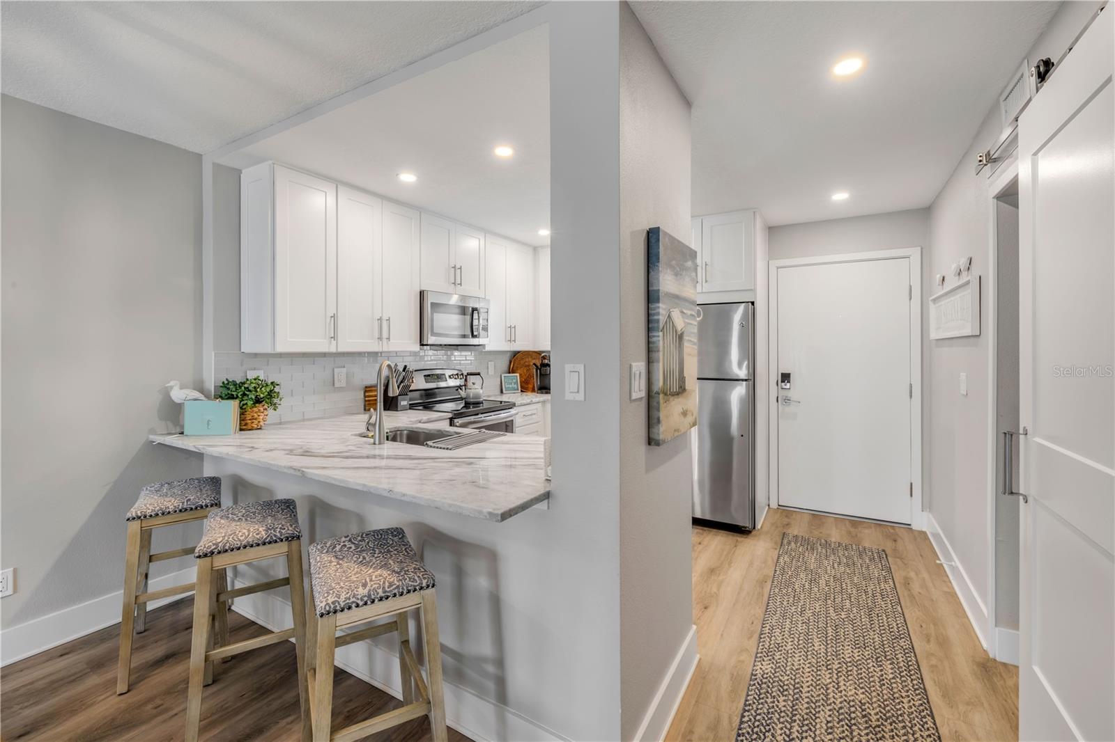 Bem -vindo ao seu Retiro costeiro dos seus sonhos em bela New Smyrna Beach, Flórida. Este condomínio de varanda voltado para o sul, totalmente renovado, oferece vistas deslumbrantes do oceano e uma mistura perfeita de luxo moderno e vida relaxada na praia. Renovado de cima para baixo em 2021, a unidade apresenta tetos elevados, drywall totalmente novo e janelas com classificação de impacto do furacão e portas de vidro deslizantes, permitindo a segurança e a serenidade. Os acabamentos premium são encontrados por toda parte, incluindo persianas elegantes de plantações e banheiros e cozinha completamente remodelados com bancadas de pedra e armários personalizados. O quarto principal possui um banheiro privativo, que é raro para os jardins da costa marítima. Um novo sistema de ar condicionado foi instalado em julho de 2024, garantindo o conforto o ano todo. Esta unidade é vendida totalmente mobiliada com peças sofisticadas, incluindo móveis de quarto de hardware de restauração e uma cama de beliche personalizada, tornando-a ideal como um investimento na mão ou uma fuga de férias pessoais. Atualmente, está operando como um aluguel de curto prazo de luxo de sucesso, com excelente história de aluguel e fortes reservas futuras já existentes. O edifício passou por todos os estudos e benefícios de integridade estrutural e marcos de um paredão recém-instalado para maior segurança e valor a longo prazo. As comodidades adicionais incluem armazenamento de bicicletas no quarto andar e um cubo de armazenamento conveniente do lado de fora da unidade para equipamentos e equipamentos de praia. Esteja você procurando um refúgio sereno, uma propriedade de investimento ou ambos, este condomínio excepcional oferece potencial de conforto, estilo e renda incomparável em uma das cidades litorâneas mais charmosas da Flórida.
