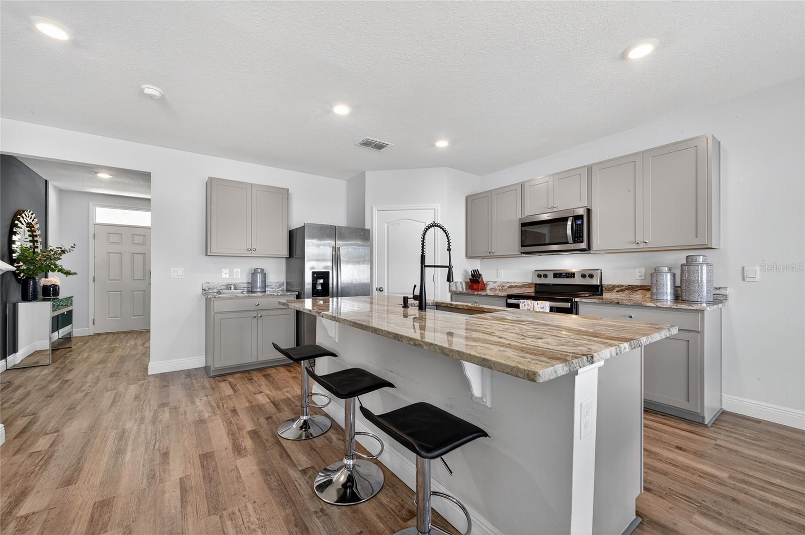 Apenas 3 anos e cheios de atualizações atenciosas, esta casa de 5 quartos e três banheiros na desejável comunidade de Woods Coastals de New Smyrna Beach está pronta e aguardando sua próxima família. Construído em 2022 com construção de blocos de concreto sólido nos dois andares, esta casa de dois andares oferece um layout inteligente que funciona para uma casa movimentada-com um quarto e um banheiro inteiro no térreo, além de um loft espaçoso e mais quatro quartos no andar de cima, incluindo a suíte do proprietário particular. Você vai adorar as atualizações: pisos de tábuas de vinil de luxo no térreo e nas escadas, bancadas de granito de alto nível na cozinha e todos os três banheiros, novas pias e acessórios e uma porta de chuveiro personalizada na suíte do proprietário. O quintal totalmente cercado apresenta esgrima de vinil branca durável com reforço extra de vergalhão, ideal para animais de estimação, crianças ou apenas relaxando ao ar livre. A comunidade Coastal Woods oferece um ótimo estilo de vida com quadras de pickleball, piscina, clube e um playgroundall a poucos minutos das belas praias de nova Smyrna. Com fácil acesso a compras, restaurantes, hospitais, escolas e grandes rodovias, esse local é conveniente e familiar.