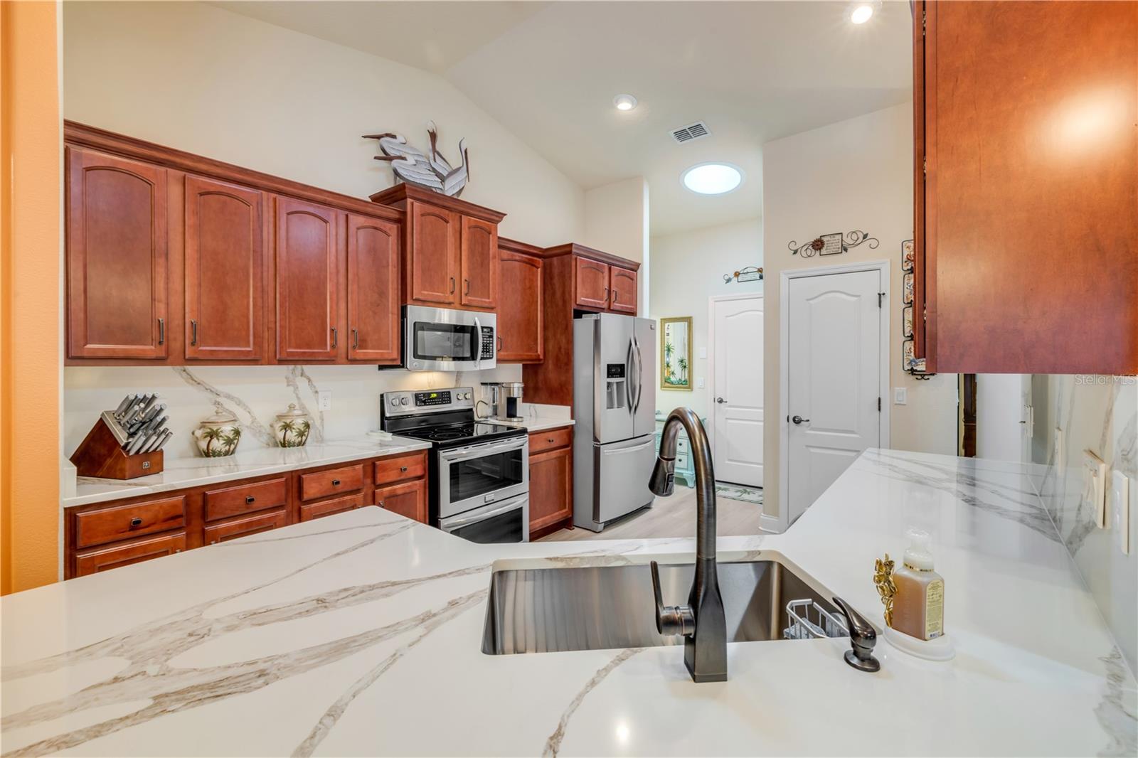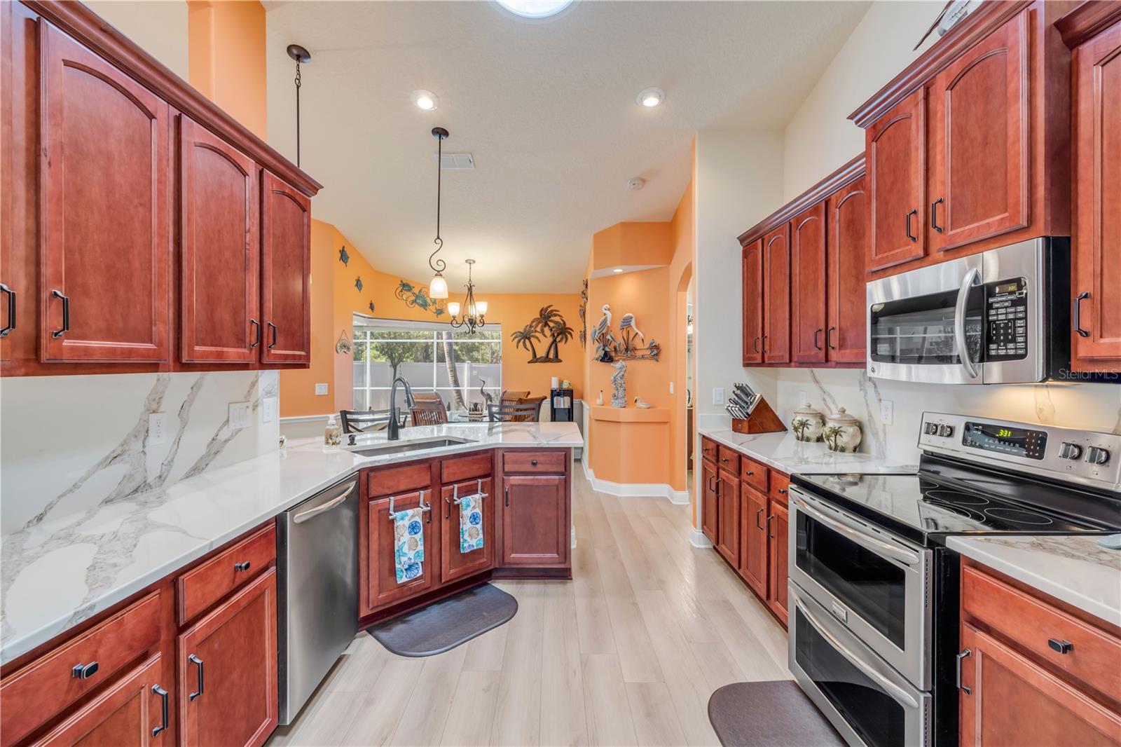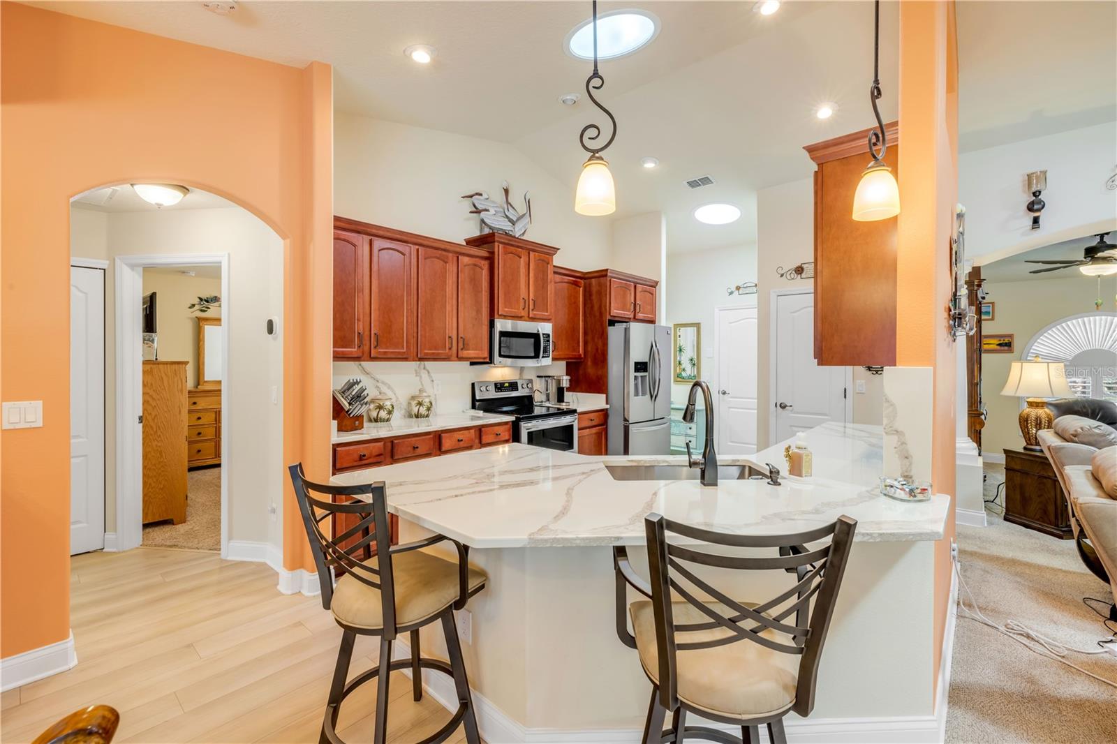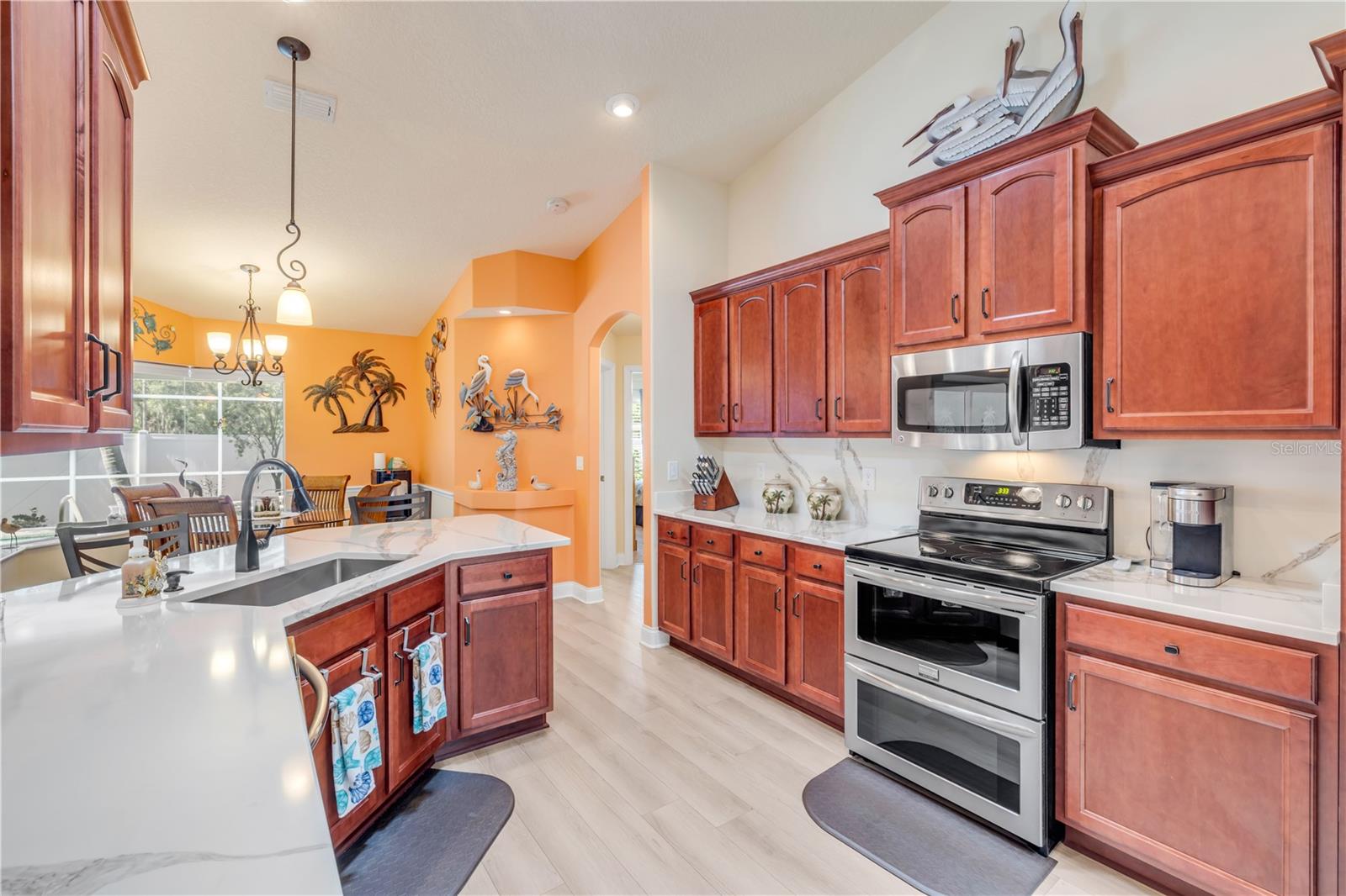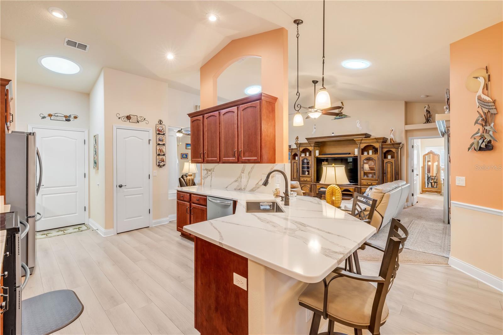 Sua fuga costeira aguarda em Lakewood Terrace !! Bem -vindo a esta casa executiva lindamente mantida na altamente desejável comunidade costeira de New Smyrna Beach - a apenas 15 minutos das praias! Convenientemente localizado perto de tudo, você vai adorar viver o estilo de vida do NSB. Esta casa verifica todas as caixas quanto a conforto, estilo e localização. Construído pela Paytas Homes em 2011 e de propriedade de apenas dois proprietários meticulosos. Após a entrada, você vai adorar a espaçosa área de estar com controles deslizantes para a piscina, tetos abobadados com clarabóias, cores de tendência e novos pisos. Uma cova ou escritório flexível e uma área de jantar formal estão fora do espaço principal. A cozinha é um showstopper-aparelhos atualizados, bancadas deslumbrantes de quartzo, armários altos de madeira maciça, despensa e um balcão de barra que se abre para uma área de jantar aconchegante com vista para o seu oásis ao ar livre. Esta casa de 3 quartos e 2 banheiros oferece muito espaço para privacidade. Sua suíte primária tem seu próprio banheiro anexado com pias duplas, caminhe no chuveiro e grande caminhada no armário. Em seguida, a verdadeira rolha do show é a área de estar ao ar livre. Saia para o pátio selecionado e aqueça a piscina de água salgada e desfrute da verdadeira vida na Flórida. Esta propriedade meticulosamente bem cuidada é cercada por paisagismo tropical exuberante e um quintal totalmente cercado para privacidade. O espaço ao ar livre é perfeito para relaxar ou divertir o ano todo. Muito espaço na garagem grande de 2 carros com porta de garagem com classificação de vento e tela retrátil. Você vai adorar a conveniência e a mente de ter um gerador doméstico inteiro com um tanque de gasolina de propano de 500 galões. Extras? Absolutamente. Janelas com classificação de vento com persianas de plantações, 2024 A/C com eficiência energética com purificador de ar halo, aquecedor de água 2024, telhado 2020, amaciador de água e muito mais. Tudo foi feito, esta casa é pronta e pronta para novos proprietários. Não perca a chance de ligar para o Lakewood Terrace de lar!