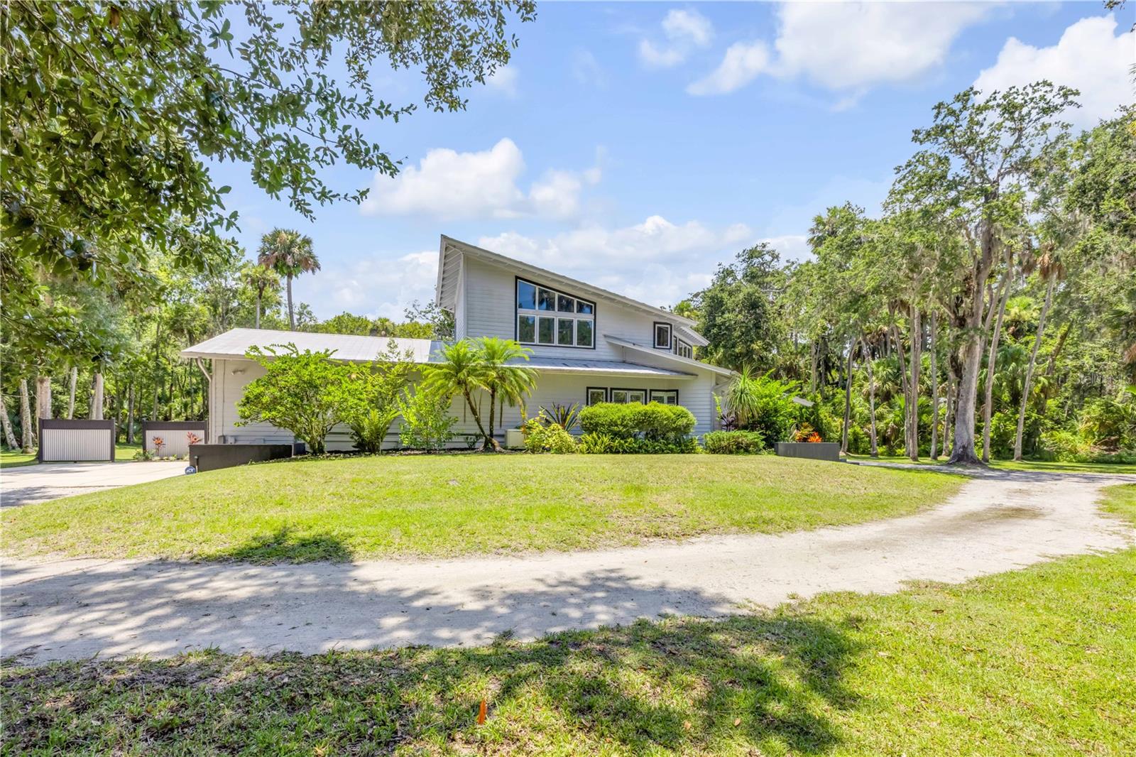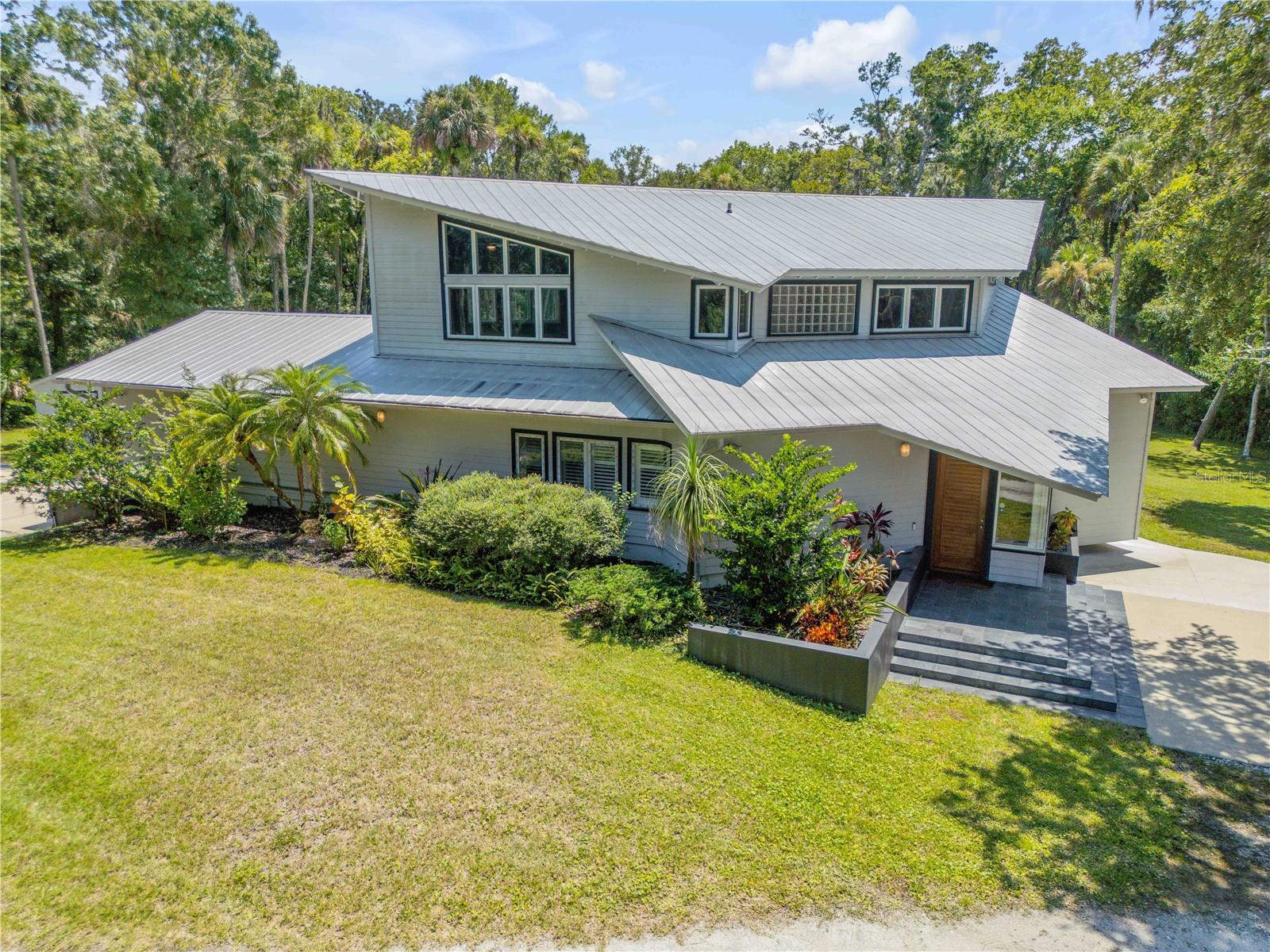 Financiamento Proprietário Disponível!!! Esta impressionante casa moderna, projetada pelo renomado arquiteto Chris Frank e construída pela Hickson Construction, é uma rara oportunidade de possuir uma obra de arte arquitetônica em um ambiente rural sereno com o conforto e a conveniência da vida na cidade. Situada em 3 hectares privados a poucos minutos de New Smyrna Beach e Port Orange, esta residência personalizada de 3 quartos e 3 banheiros apresenta design elegante, artesanato especializado e elementos naturais que criam uma mistura harmoniosa de elegância e funcionalidade. Do portão de metal personalizado à porta frontal feita à mão e à estante embutida, cada detalhe reflete o estilo moderno em um ambiente pitoresco. No interior, tetos com vigas expostas e pisos de madeira de carvalho vermelho fluem perfeitamente para azulejos de ardósia natural na cozinha, lavanderia e banheiros. A cozinha do chef possui luxuosas bancadas de granito e eletrodomésticos de primeira linha, incluindo uma linha de combustível duplo Wolf, geladeira de aço inoxidável e lava-louças. Um quarto no primeiro andar oferece privacidade e fácil acesso, enquanto uma impressionante escadaria de metal aberta leva a um loft espaçoso com tetos altos e uma parede de janelas - perfeito para um escritório doméstico ou espaço adicional. No andar de cima, a suíte do proprietário é um verdadeiro refúgio com um amplo banheiro com banheira de imersão, box amplo separado e closet com gavetas embutidas. A propriedade inclui uma garagem anexa de grandes dimensões para dois carros e uma garagem individual para um carro com ar condicionado que atualmente serve como escritório, estúdio ou ginásio ideal com porta de vidro deslizante e controle de temperatura, mas pode facilmente ser convertida novamente em garagem tradicional, se desejar. Apresentando janelas e portas com vidros duplos e resistentes a furacões, portas internas de madeira maciça, um gerador Generac de 22 kW para toda a casa, aquecedor de água a gás propano sob demanda e dois sistemas HVAC atualizados, esta casa foi projetada para oferecer conforto e resiliência. Ao ar livre, um dossel de carvalhos circunda o pátio de pavimentação personalizado com fogueira de pedra, gazebo e banheira ao ar livre, levando a uma varanda nos fundos com vista para um gramado bem cuidado - perfeito para entretenimento ou reflexão silenciosa. A propriedade também oferece espaço para adicionar um edifício adicional se desejar, tendo o proprietário iniciado o processo de construção de um edifício metálico 42x60. Idealmente localizada perto de Canter Down Farms, The Preserve at Turnbull Bay Golf Course e Doris Leeper Spruce Creek Nature Preserve, esta propriedade oferece o equilíbrio perfeito entre natureza e conveniência.