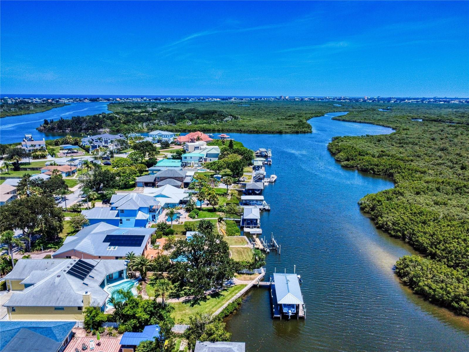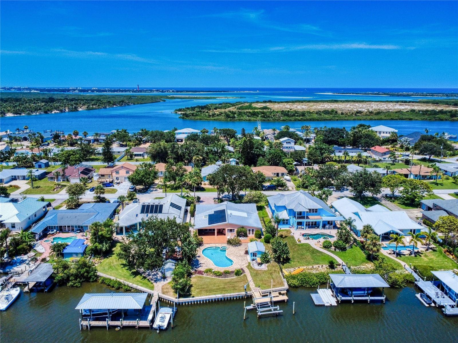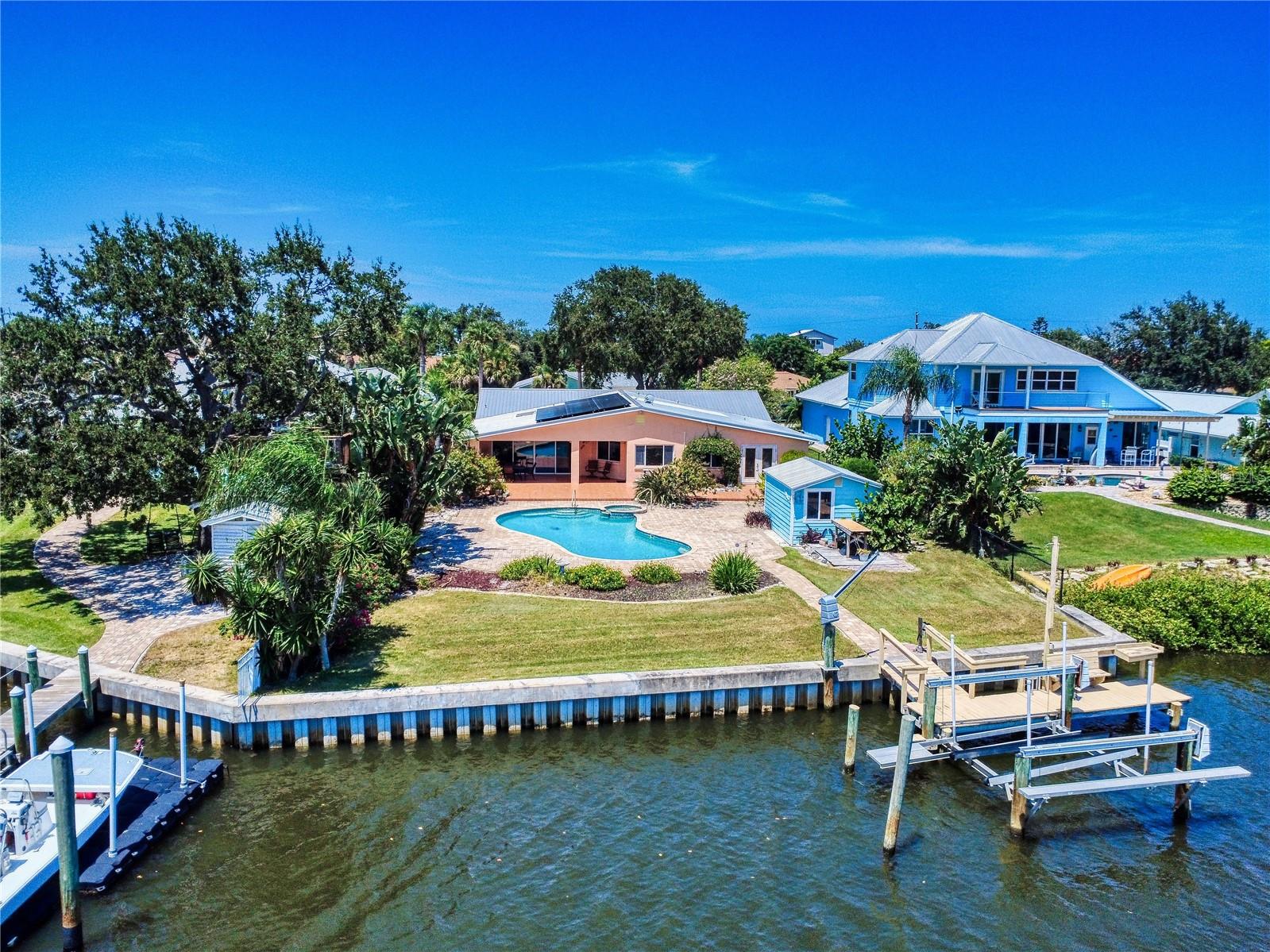 Descubra esta casa de meados do canal contemporânea de meados do século com uma piscina de água salgada, situada em um grande lote de 75x200, perfeitamente escondido em uma comunidade isolada do rio. Esta residência de 4 quartos e 3 banheiros oferece uma espaçosa planta aberta e cheia de luz, onde vistas da piscina, paisagismo tropical exuberante e Hunters Creek Canal o cumprimenta da entrada frontal. A sala de estar com uma lareira de madeira aconchegante flui para a sala de jantar, ampla sala de família e uma grande cozinha projetada para divertir familiares e amigos. Portas de vidro deslizantes se abrem para um pátio coberto com vista para a piscina espumante, doca de barco privado com elevador e canal que leva diretamente à via hidrográfica intracoastal e à entrada do Atlântico. Esta casa é ideal para uma casa de família perfeita, com espaços separados para todos. Imagine as festas e memórias feitas nesta casa, projetadas para conforto e para desfrutar da vida à beira -mar. As características adicionais incluem: Sala Segura Interior, Sala de Bônus, paredão, doca privada com elevador, água e elétrica. 3 unidades A/C separadas, 2023. Metal Roof 2010, uma oficina de ferramentas isolada. O quarto quarto não é retratado. Uma rara oportunidade de viver em um ambiente particular e pacífico e natural!