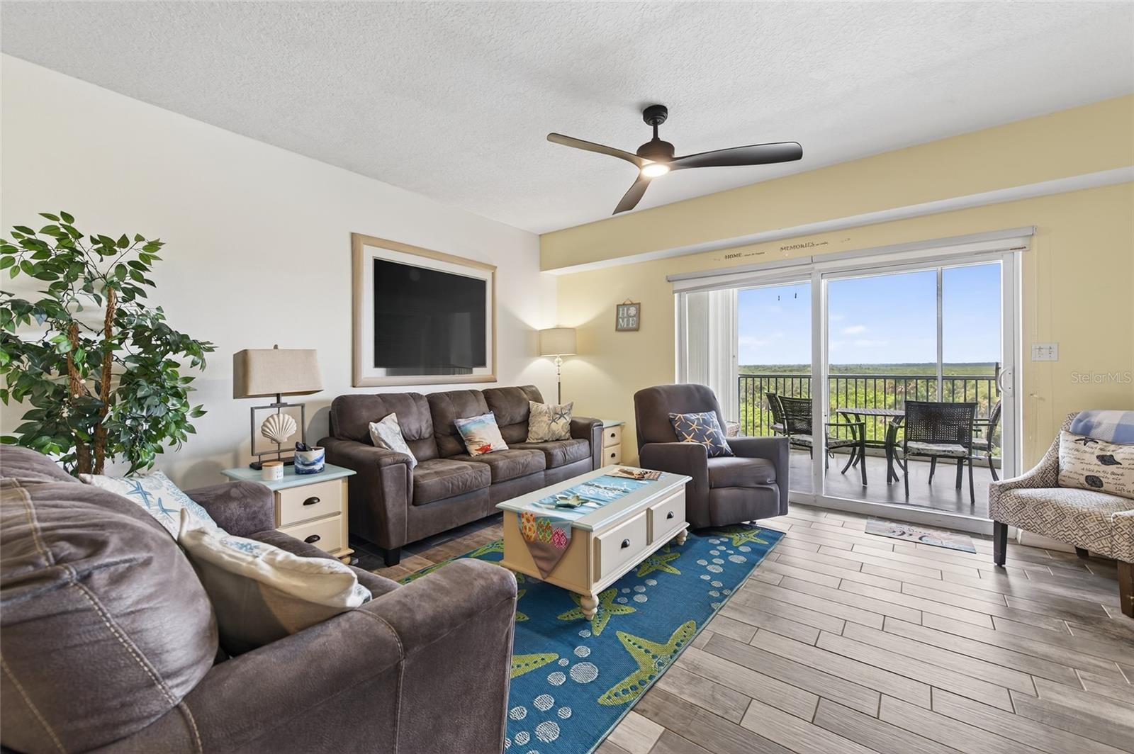 Desfrute de uma vida costeira em New Smyrna Beach? Bem, você acabou de encontrar a casa perfeita! Desfrute do pôr do sol deslumbrante do seu 4º andar espaçoso, exibido em varanda com vista para o pacífico estuário da Lagoa Rio Indian. Este design bastante espaçoso tem quartos divididos, cada quarto tem seu próprio closet, o quarto principal tem seu próprio acesso à varanda, como seu próprio banheiro muito espaçoso, com uma caminhada atualizada no chuveiro, banheira de jato separado, balcões de quartzo e vanidades duplas. A cozinha possui muitos armários, bar de café da manhã, armário de despensa, eletrodomésticos SS com aproximadamente 3 anos de idade, balcões de quartzo, lavanderia espaçosa da cozinha vem equipada com uma lavadora e secadora com gavetas de puxar. As áreas combinadas de jantar e sala de estar estão fora da cozinha aberta para entretenimento. Pisos laminados de luxo em quartos e lindas ladrilhos de madeira nas áreas de estar. A varanda tem persianas de furacões, o AC foi substituído em 2024. Todas as avaliações foram satisfeitas, o novo teto está quase concluído. Ocean Walk é uma comunidade fechada do tipo resort. Possui duas piscinas, spas, saunas, fitness center, tênis, bocha, shuffleboard, basquete, área de churrasco, trilha natural, estacionamento de construção, área de armazenamento, acesso à praia. A comunidade é favorável a animais de estimação, os aluguéis de curto prazo (mínimo de 3 dias) são aprovados. Sirs está concluído. Desenvolvimento curto até a histórica Canal Street e Flagler para entretenimento, compras e restaurantes deliciosos. Faça de uma nova praia de Smyrna sua nova casa na praia!