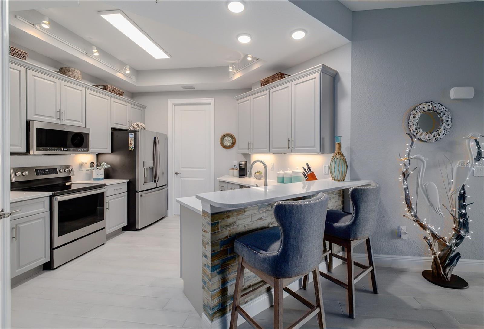 Os proprietários dizem vender! Motivado e quer ofertas! Vistas espetaculares do rio e de Nova Smyrna a partir desta cobertura imaculada no Riverwalk Condominiums perto de tudo! Aproveite este lindo condomínio 2BR/2BA no último 4º andar, que possui tetos de 10', piso frio, uma enorme varanda com tela, armário de armazenamento privado e DUAS vagas de estacionamento reservadas no prédio. As atualizações incluem eletrodomésticos de cozinha SS de última geração, ventiladores de teto atraentes em todos os quartos, backsplash de azulejos e venezianas nas janelas. Caminhe, ande de bicicleta ou ande de carrinho de golfe até as lojas e restaurantes pitorescos da vibrante Canal St. ou da histórica Flagler Avenue, onde você encontrará exposições de arte, degustações de vinhos, mostras de automóveis e festivais durante todo o ano! A planta baixa aberta foi projetada para receber a família e os amigos, e a varanda privativa oferece um lugar na primeira fila para a ação de barco no rio, lançamentos de foguetes do Centro Espacial Kennedy, fogos de artifício, desfiles de barcos e nascer e pôr do sol diários. Este edifício fornece um gerador para operar os elevadores caso falte energia. Riverwalk oferece comodidades em estilo resort, incluindo um belo clube à beira-rio com cozinha, sala de ginástica, teatro, piscina aquecida, spa, churrasqueiras, bocha, pickleball, tênis e uma marina com rampas para barco disponíveis para compra. Os ancoradouros oferecem eletricidade e água e são docas flutuantes. Aproveite o estilo de vida da Flórida que você merece hoje!