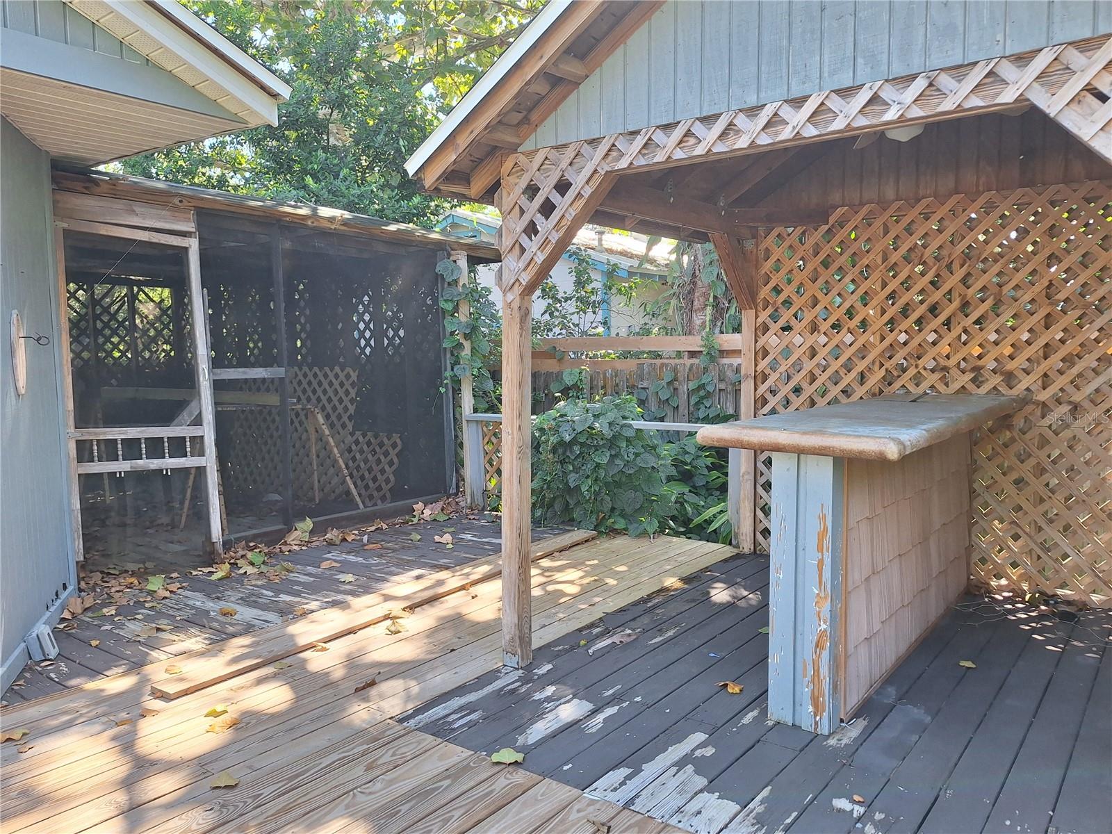 Entre US1 e o Rio na área histórica de New Smyrna Beach!!! Esta propriedade de 70'x174' (pouco mais de um quarto de acre!) Possui um quintal profundo com uma enorme oficina independente com eletricidade, além de uma garagem anexa para armazenamento de barco ou o que você quiser. Charmosa casa 2BR 1BA mais um quarto Florida/Sun room localizado fora da cozinha, que tem piso de cerâmica junto com sua lavanderia interna com conexões. A sala de estar possui uma enorme janela panorâmica que permite muita luz natural, combinação de sala de estar / sala de jantar, persianas de madeira na maioria das janelas, novo LVP na sala de estar, piso de madeira nos quartos e no corredor. BR principal com armário espaçoso e portas francesas para uma sala de tela. Fora da sala de tela há um deck e uma área de gazebo/tiki para apreciar a beleza da natureza no quintal. O interior foi recentemente pintado de fresco e, com um pouco mais de TLC, esta pode ser uma joia histórica para você. A localização é imbatível, localizada a 2 quarteirões do rio, a 1,6 km da histórica Canal Street e a pouco menos de 5 km da PRAIA! Restaurantes e lojas nas proximidades. Todas as medidas são aproximadas, o comprador deverá verificar. Vendedor motivado!