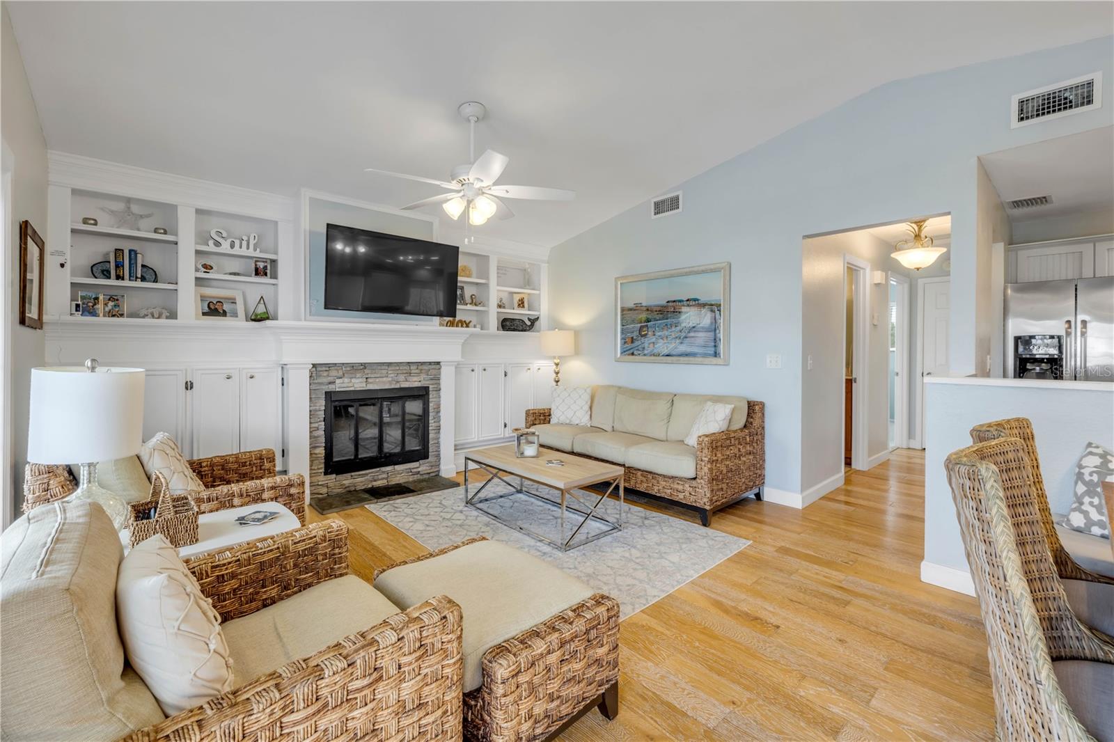 O charme costeiro encontra o conforto moderno! Esta casa à beira-mar lindamente atualizada combina caráter clássico com atualizações modernas, oferecendo o equilíbrio perfeito entre conforto interno e vida ao ar livre. Situado em um terreno de esquina desejável a poucos minutos do oceano, você desfrutará da brisa do mar, decks ensolarados e um oásis privado no quintal. Relaxe e divirta-se ao redor da piscina aquecida a gás e do spa, cercado por um quintal totalmente cercado. As portas francesas abrem para um encantador pátio lateral, criando um fluxo contínuo entre os espaços internos e externos. No interior, a suíte principal do primeiro andar possui um banheiro privativo remodelado com chuveiro de azulejos e banheira de hidromassagem, além de um quarto bônus e lavabo no nível principal. A área de estar no andar de cima é iluminada e acolhedora, com piso de madeira, lareira a lenha e estantes embutidas para estilo e armazenamento. A cozinha brilha com bancadas de granito, armários de madeira, backsplash de azulejos e eletrodomésticos de aço inoxidável. Passe pelas portas francesas duplas para desfrutar do café da manhã na varanda voltada para o leste ou jante ao ar livre no deck Trex de 22' x 17' - perfeito para refeições noturnas e a brisa do oceano. O passeio da viúva oferece vistas panorâmicas, aumentando o encanto costeiro. Atualizações adicionais incluem janelas com classificação de furacão (2015) e uma unidade HVAC mini-split para conforto com eficiência energética. Garagem grande para 1 carro e um galpão ao ar livre para guardar todos os seus brinquedos de praia. Entre no seu carrinho de golfe e desfrute de todos os restaurantes favoritos do NSB ou vá de bicicleta até a Flagler Ave. Esta casa captura a essência da vida em New Smyrna Beach - relaxada, refinada e pronta para desfrutar.