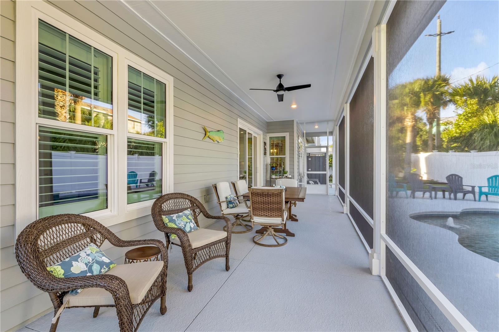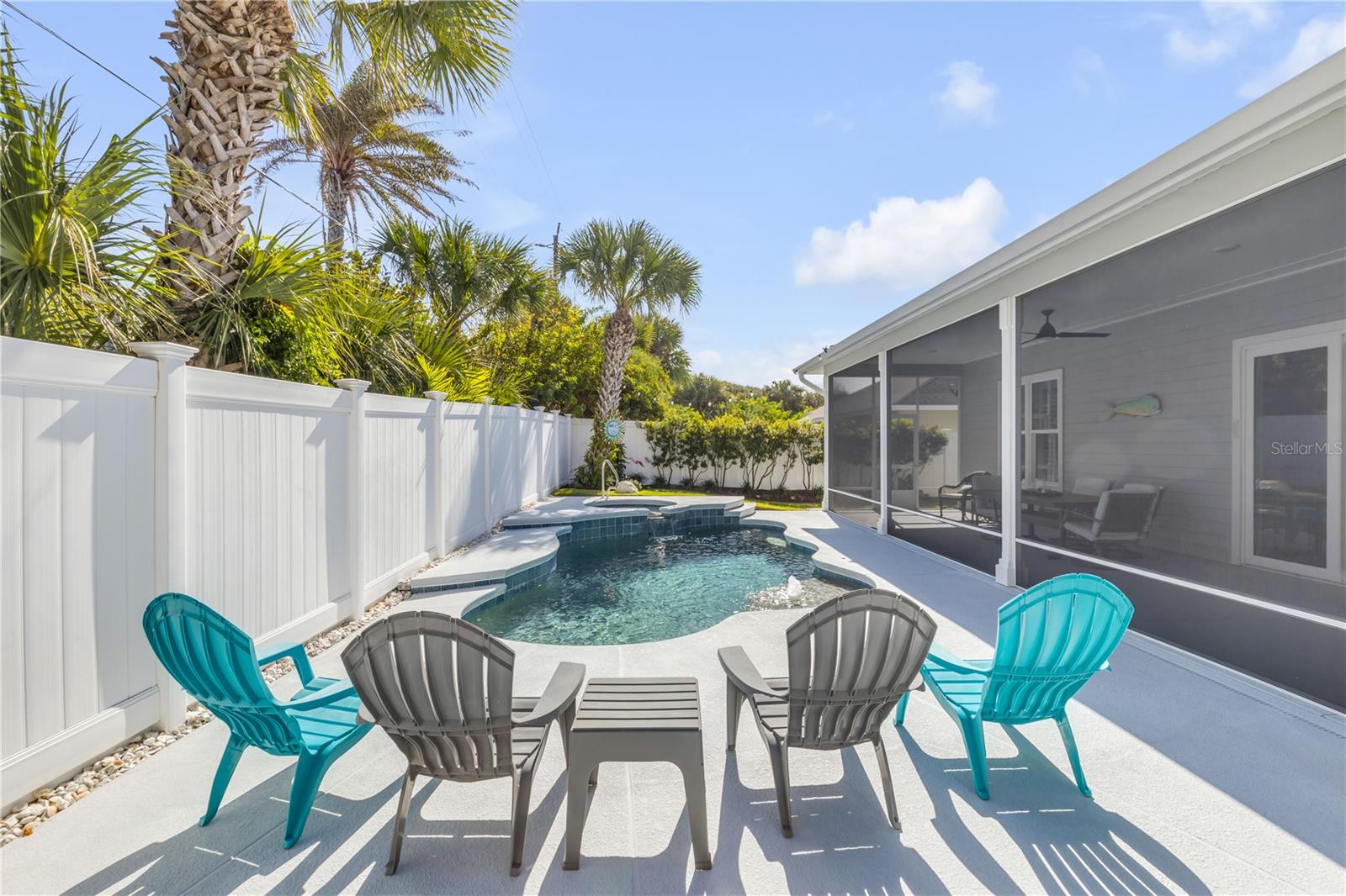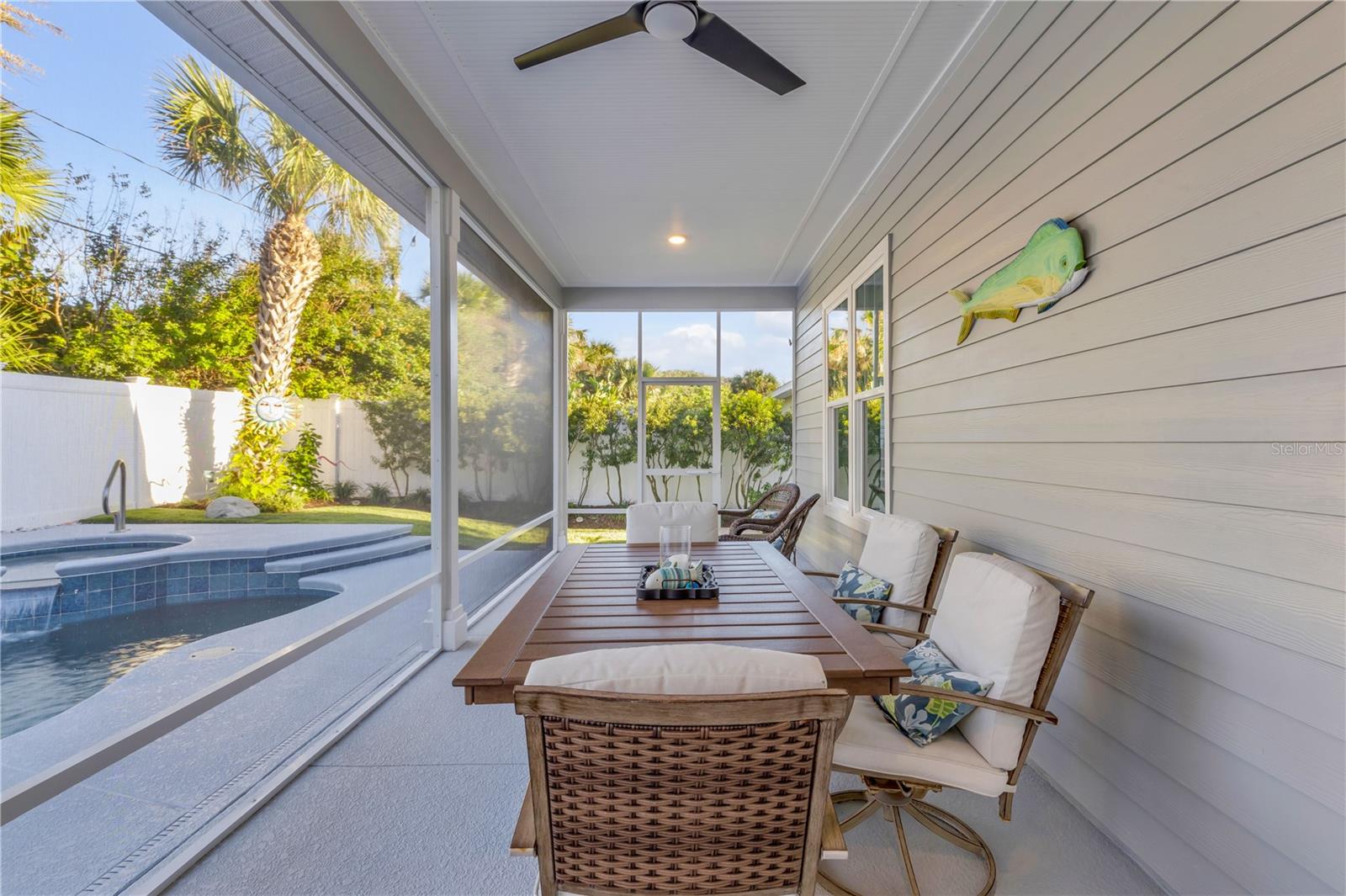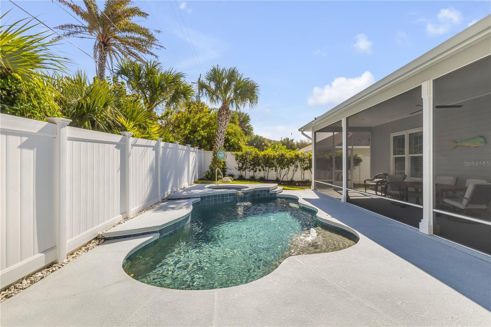 Você está a poucos passos das praias oceânicas nesta espaçosa casa Hickson Built, localizada na muito procurada comunidade de New Smyrna Beach Silversands. Esta casa com piscina lindamente projetada e meticulosamente mantida recebe você com tetos altos de 10' e portas de 8'. As venezianas da plantação fornecem uma visão do oásis cercado no quintal em estilo resort, com piscina de água salgada aquecida, spa e chuveiro ao ar livre. A espaçosa planta aberta inclui uma cozinha com despensa, eletrodomésticos de última geração, incluindo fogão a gás e bancadas de quartzo. Uma verdadeira despensa do mordomo oferece armazenamento adicional, uma máquina de fazer gelo, um refrigerador de vinho e outro recanto de escritório. A sala de estar com localização central apresenta tetos deslumbrantes, lareira a gás e detalhes embutidos personalizados. A área de jantar aberta é perfeita para receber familiares e amigos. Precisa de um escritório em casa? O grande quarto da frente serve como home office ou quarto de hóspedes e possui portas francesas e armários duplos. A espaçosa suíte do proprietário oferece espaço para uma área de estar, e a planta dividida oferece dois quartos adicionais para privacidade, totalizando 4 quartos. A garagem para 2 carros inclui racks de armazenamento superiores para ampla organização. 2024 ar condicionado. Relaxe à noite na luxuosa piscina aquecida e no spa ou dê um passeio nas praias de areia branca de New Smyrna. Transforme o seu sonho de viver no litoral em realidade.