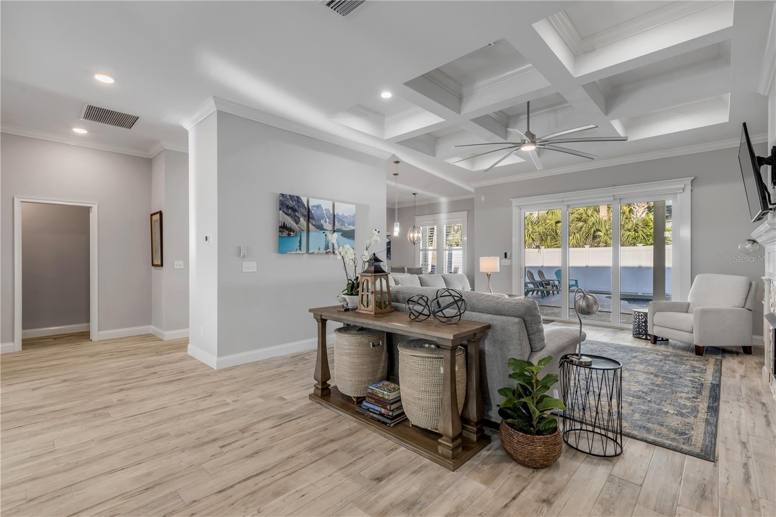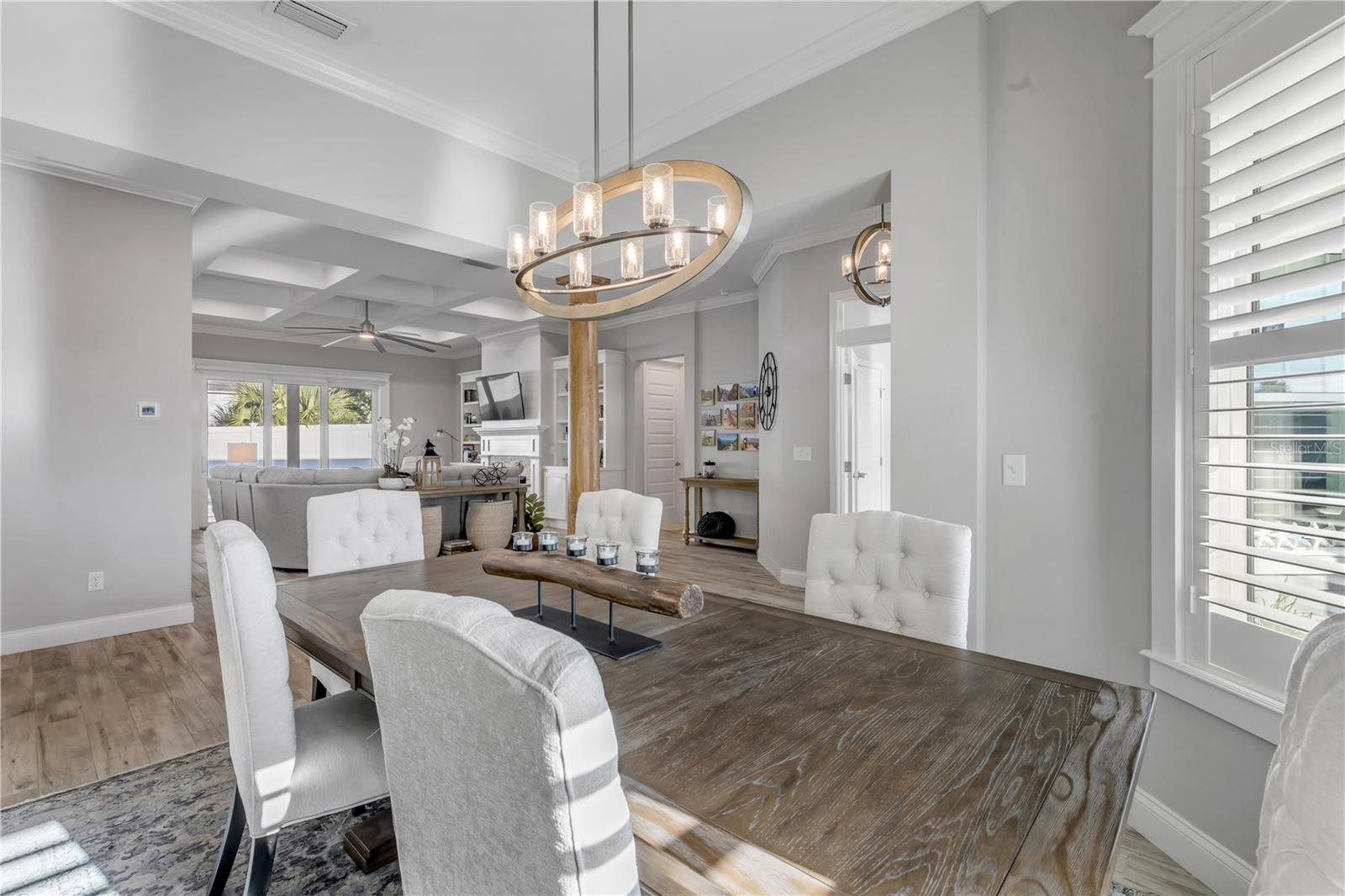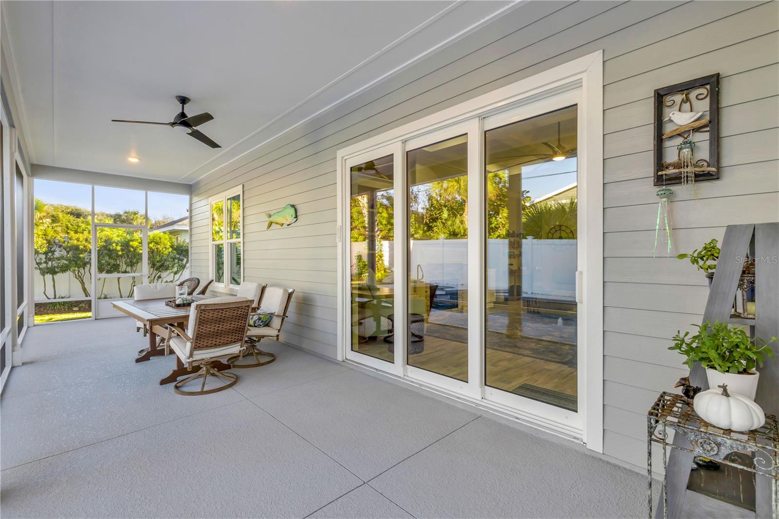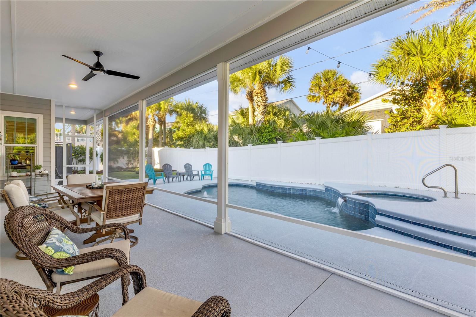 Você está a poucos passos das praias oceânicas nesta espaçosa casa Hickson Built, localizada na muito procurada comunidade de New Smyrna Beach Silversands. Esta casa com piscina lindamente projetada e meticulosamente mantida recebe você com tetos altos de 10' e portas de 8'. As venezianas da plantação fornecem uma visão do oásis cercado no quintal em estilo resort, com piscina de água salgada aquecida, spa e chuveiro ao ar livre. A espaçosa planta aberta inclui uma cozinha com despensa, eletrodomésticos de última geração, incluindo fogão a gás e bancadas de quartzo. Uma verdadeira despensa do mordomo oferece armazenamento adicional, uma máquina de fazer gelo, um refrigerador de vinho e outro recanto de escritório. A sala de estar com localização central apresenta tetos deslumbrantes, lareira a gás e detalhes embutidos personalizados. A área de jantar aberta é perfeita para receber familiares e amigos. Precisa de um escritório em casa? O grande quarto da frente serve como home office ou quarto de hóspedes e possui portas francesas e armários duplos. A espaçosa suíte do proprietário oferece espaço para uma área de estar, e a planta dividida oferece dois quartos adicionais para privacidade, totalizando 4 quartos. A garagem para 2 carros inclui racks de armazenamento superiores para ampla organização. 2024 ar condicionado. Relaxe à noite na luxuosa piscina aquecida e no spa ou dê um passeio nas praias de areia branca de New Smyrna. Transforme o seu sonho de viver no litoral em realidade.