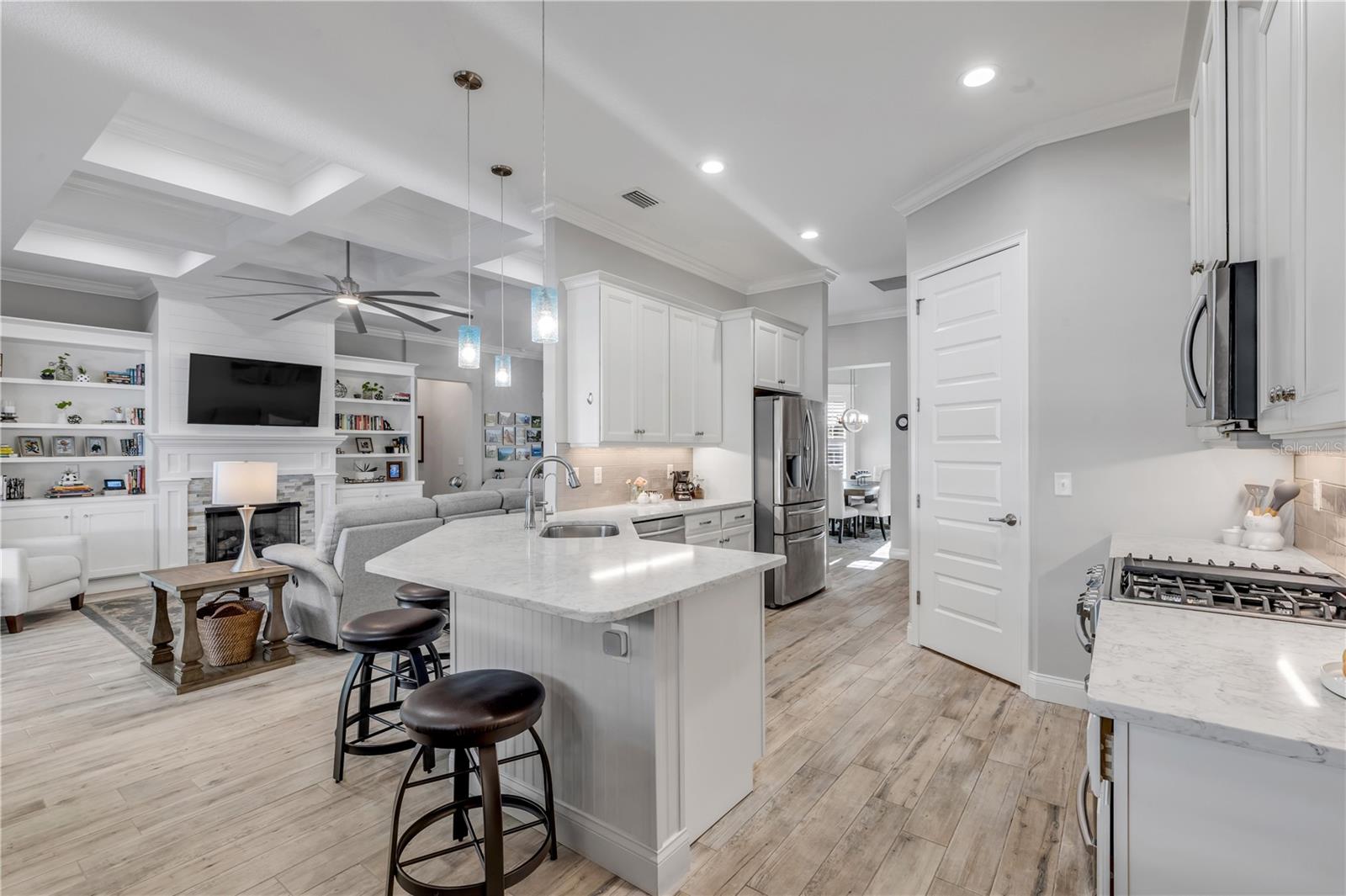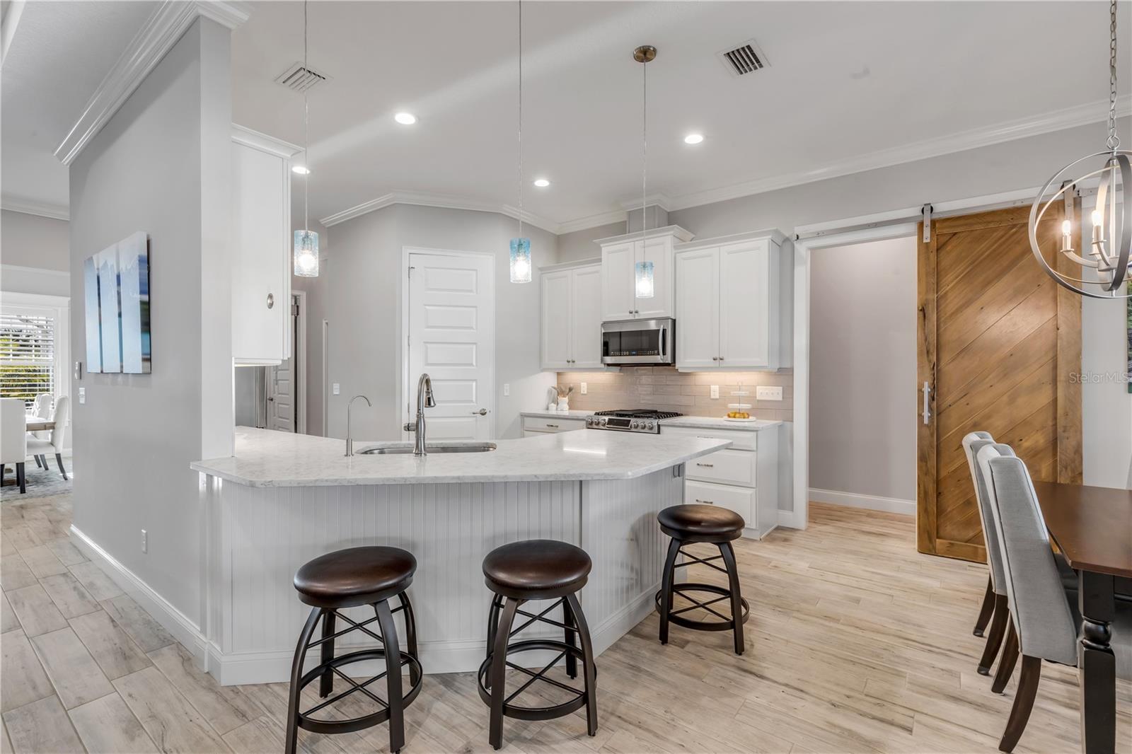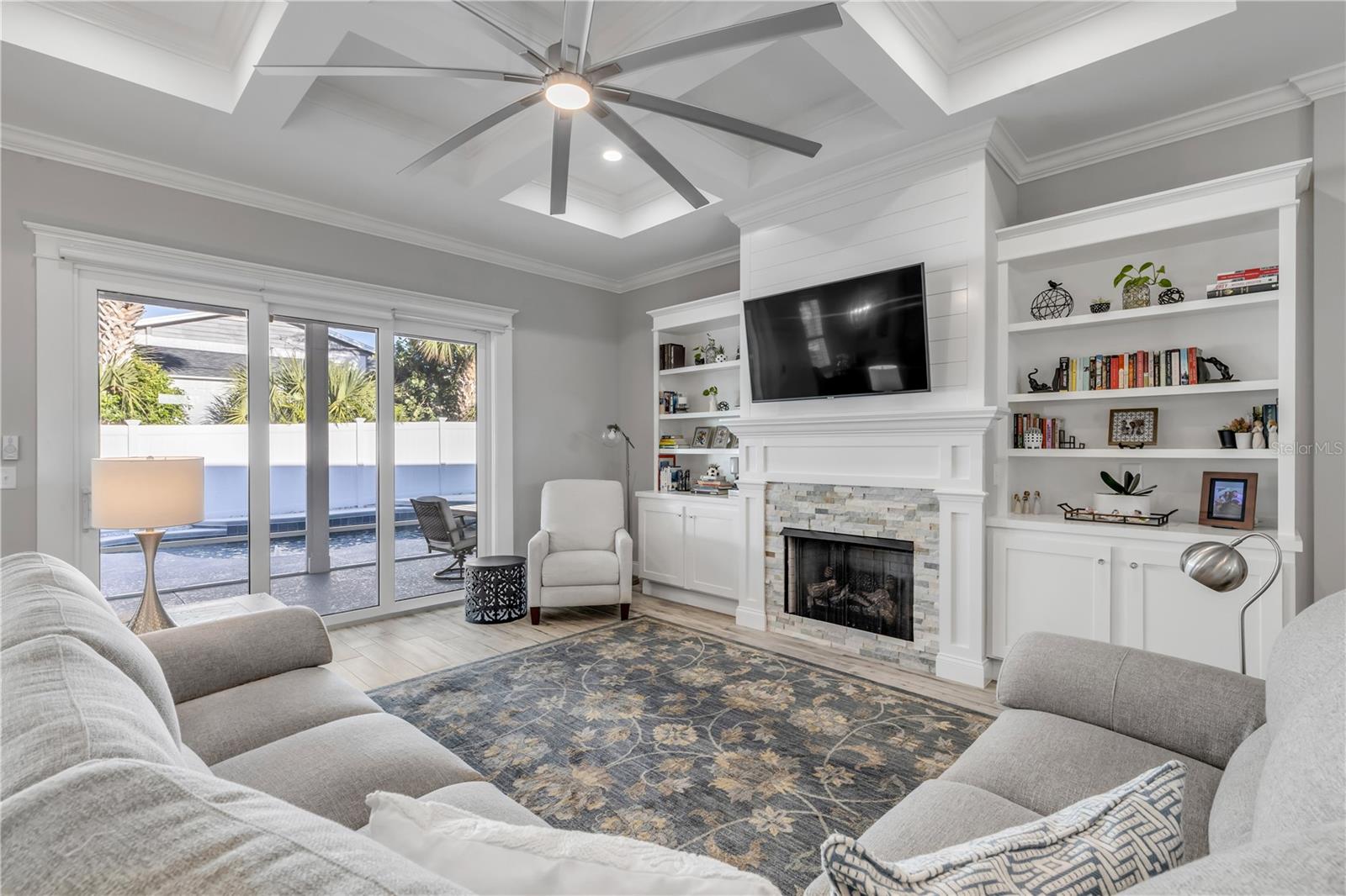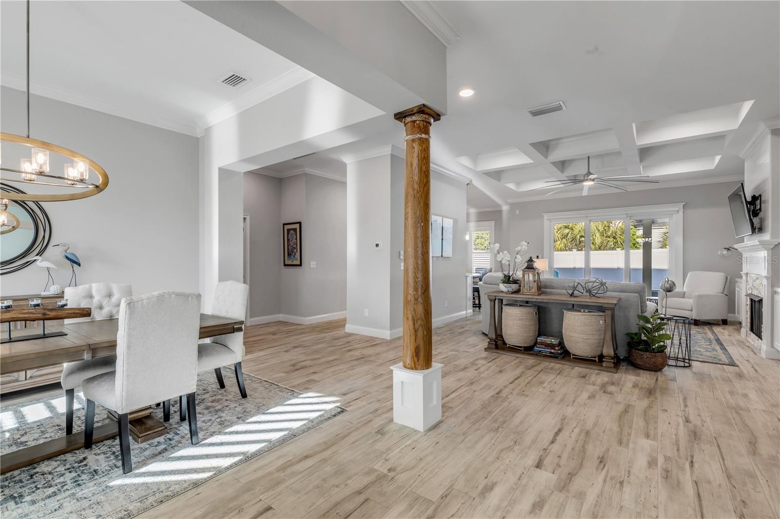 Você está a poucos passos das praias oceânicas nesta espaçosa casa Hickson Built, localizada na muito procurada comunidade de New Smyrna Beach Silversands. Esta casa com piscina lindamente projetada e meticulosamente mantida recebe você com tetos altos de 10' e portas de 8'. As venezianas da plantação fornecem uma visão do oásis cercado no quintal em estilo resort, com piscina de água salgada aquecida, spa e chuveiro ao ar livre. A espaçosa planta aberta inclui uma cozinha com despensa, eletrodomésticos de última geração, incluindo fogão a gás e bancadas de quartzo. Uma verdadeira despensa do mordomo oferece armazenamento adicional, uma máquina de fazer gelo, um refrigerador de vinho e outro recanto de escritório. A sala de estar com localização central apresenta tetos deslumbrantes, lareira a gás e detalhes embutidos personalizados. A área de jantar aberta é perfeita para receber familiares e amigos. Precisa de um escritório em casa? O grande quarto da frente serve como home office ou quarto de hóspedes e possui portas francesas e armários duplos. A espaçosa suíte do proprietário oferece espaço para uma área de estar, e a planta dividida oferece dois quartos adicionais para privacidade, totalizando 4 quartos. A garagem para 2 carros inclui racks de armazenamento superiores para ampla organização. 2024 ar condicionado. Relaxe à noite na luxuosa piscina aquecida e no spa ou dê um passeio nas praias de areia branca de New Smyrna. Transforme o seu sonho de viver no litoral em realidade.