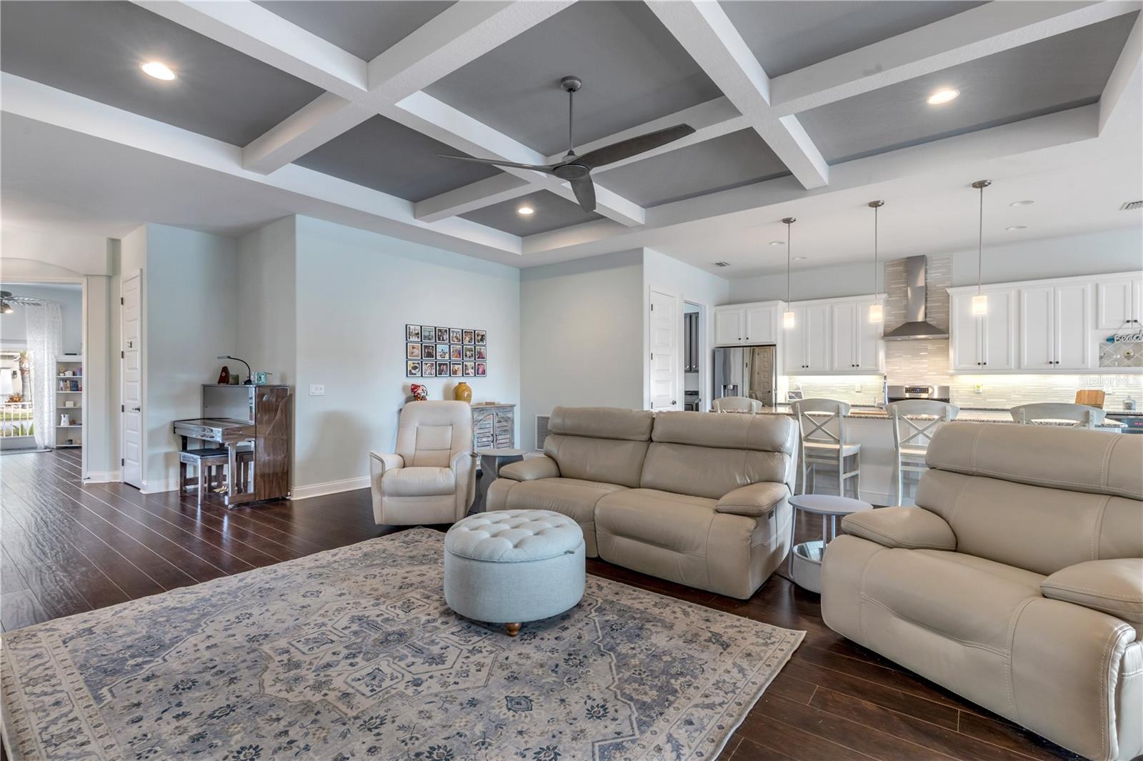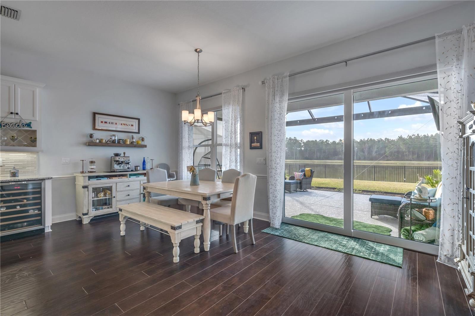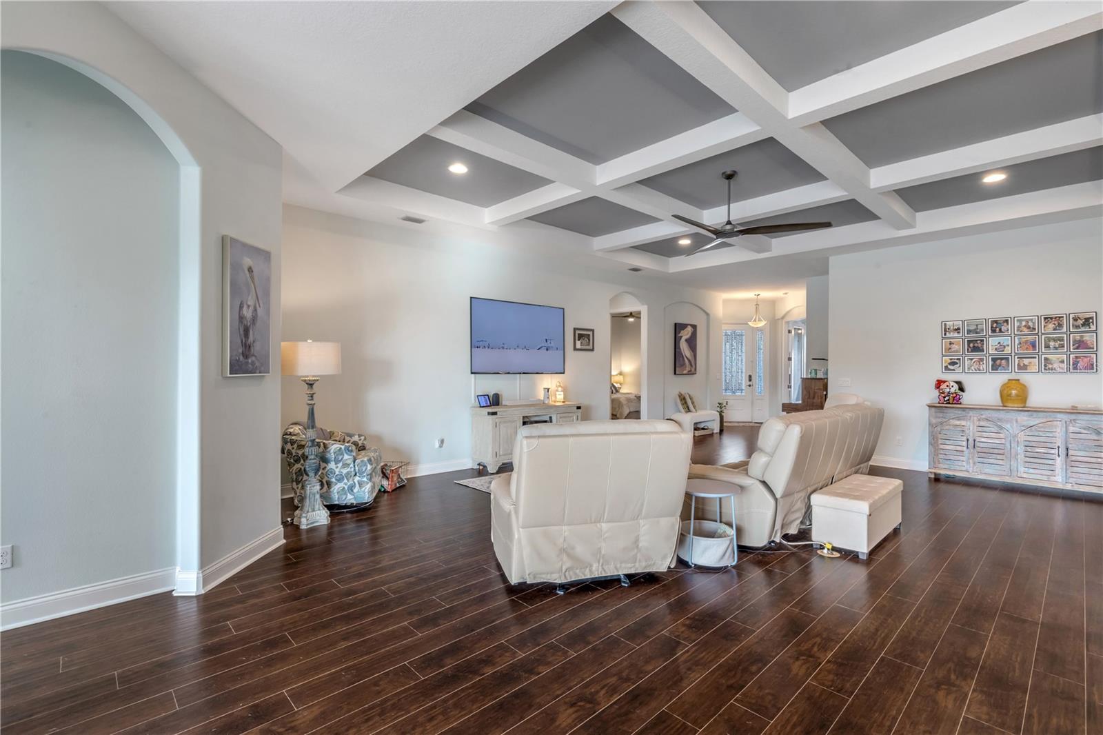 À beira-mar, lindamente atualizada casa de 4 quartos, 2 banheiros e garagem para 2 carros em New Smyrna Beach com vista para um lago panorâmico e cenário de floresta. Os recursos incluem persianas com controle remoto, janelas anti-furacão, uma chave de transferência do gerador e venezianas metálicas removíveis personalizadas. A planta aberta oferece tetos em caixotões nas áreas de estar, jantar e cozinha. A cozinha do chef inclui eletrodomésticos de inox, uma ilha grande, bancadas de pedra, armários de madeira, geladeira para bebidas, despensa e forno a gás. Aparelhos de última geração transportam, incluindo geladeira, micro-ondas de gaveta, lavadora e secadora, além de ventiladores de teto de última geração por toda parte. Pisos de madeira e azulejos percorrem toda a casa. O banheiro principal oferece box amplo, pias duplas e chuveiro com efeito de chuva. Os destaques adicionais incluem uma lavanderia interna, varandas frontais e laterais cobertas, um pátio traseiro com tela de aproximadamente 20 x 18 com vista para o lago e a fonte, além de um pátio pavimentado de 20 x 10. O quintal cercado de ferro forjado é ideal para animais de estimação e crianças. Um sistema de alarme para toda a casa com câmeras é transmitido, e a casa também se beneficia de uma baixa taxa HOA.