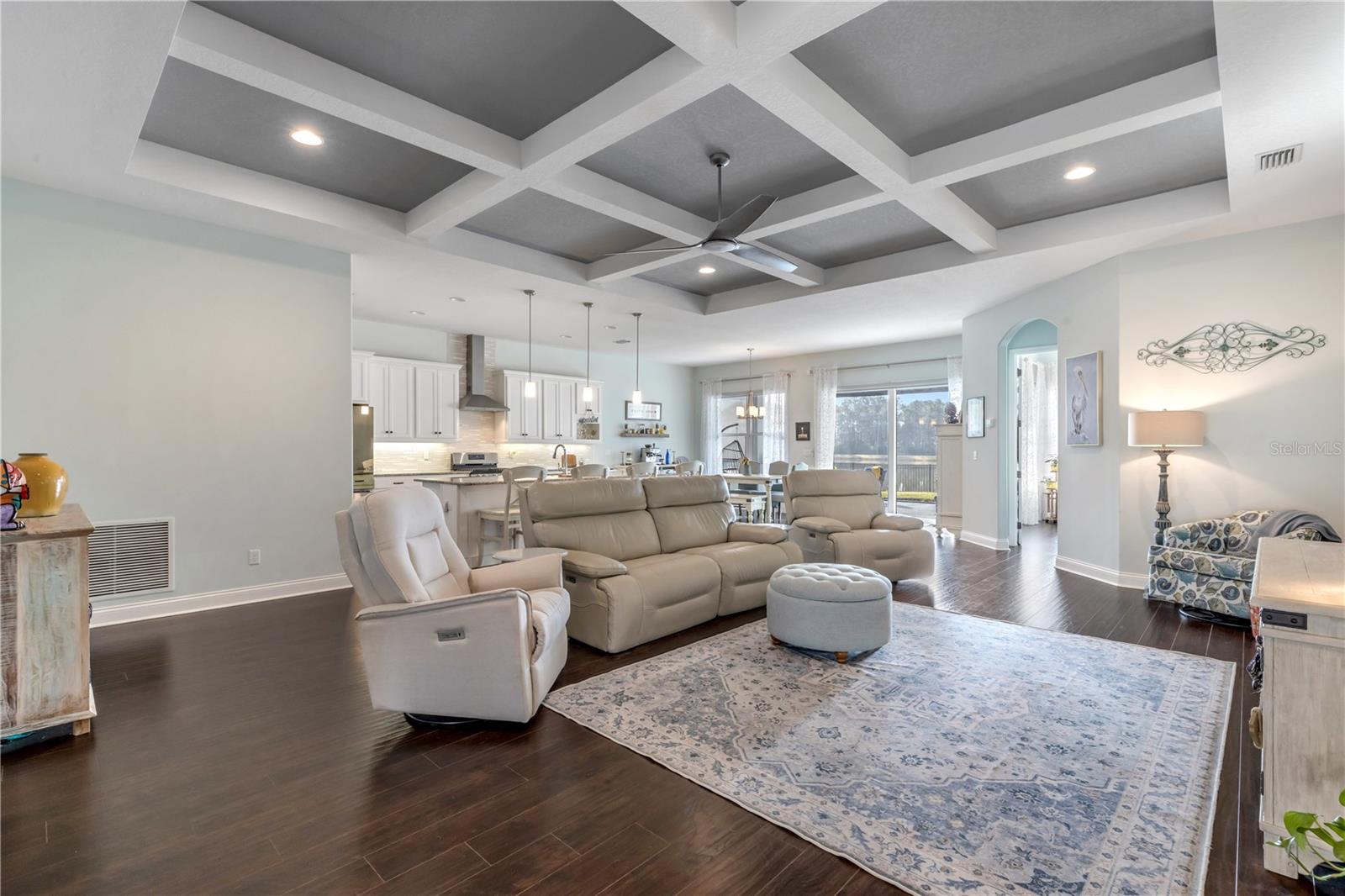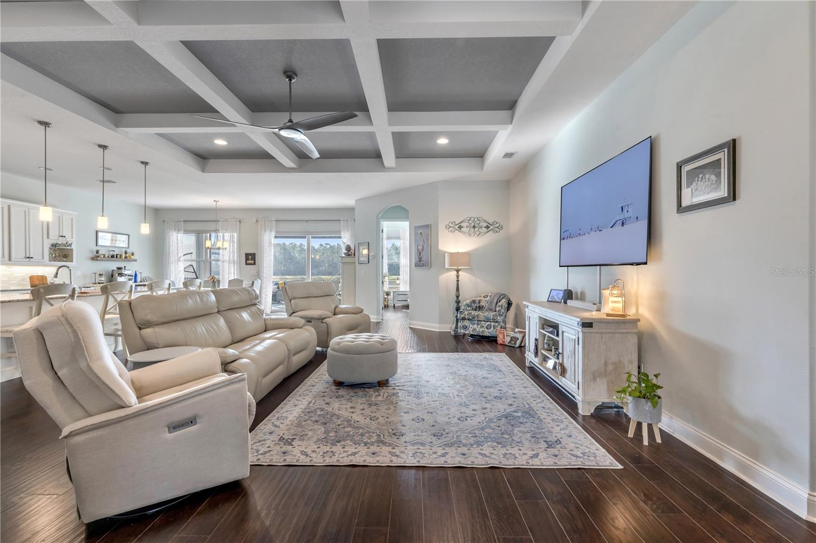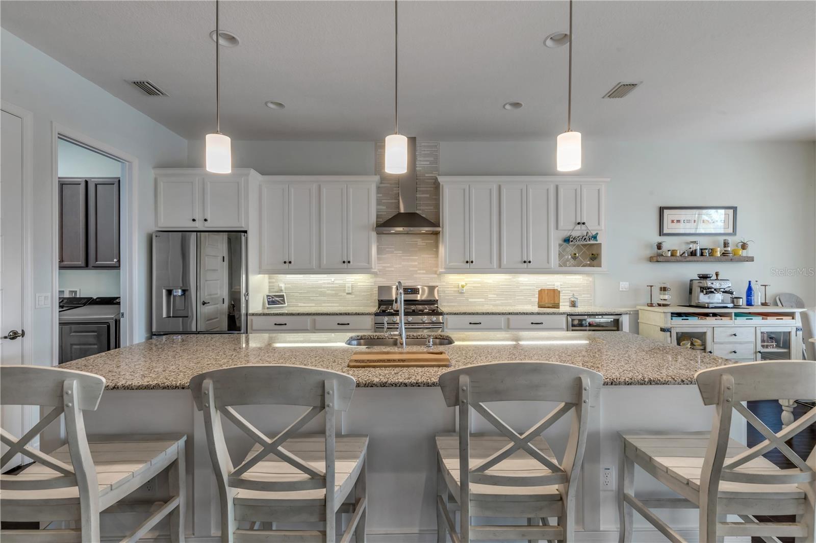 À beira-mar, lindamente atualizada casa de 4 quartos, 2 banheiros e garagem para 2 carros em New Smyrna Beach com vista para um lago panorâmico e cenário de floresta. Os recursos incluem persianas com controle remoto, janelas anti-furacão, uma chave de transferência do gerador e venezianas metálicas removíveis personalizadas. A planta aberta oferece tetos em caixotões nas áreas de estar, jantar e cozinha. A cozinha do chef inclui eletrodomésticos de inox, uma ilha grande, bancadas de pedra, armários de madeira, geladeira para bebidas, despensa e forno a gás. Aparelhos de última geração transportam, incluindo geladeira, micro-ondas de gaveta, lavadora e secadora, além de ventiladores de teto de última geração por toda parte. Pisos de madeira e azulejos percorrem toda a casa. O banheiro principal oferece box amplo, pias duplas e chuveiro com efeito de chuva. Os destaques adicionais incluem uma lavanderia interna, varandas frontais e laterais cobertas, um pátio traseiro com tela de aproximadamente 20 x 18 com vista para o lago e a fonte, além de um pátio pavimentado de 20 x 10. O quintal cercado de ferro forjado é ideal para animais de estimação e crianças. Um sistema de alarme para toda a casa com câmeras é transmitido, e a casa também se beneficia de uma baixa taxa HOA.