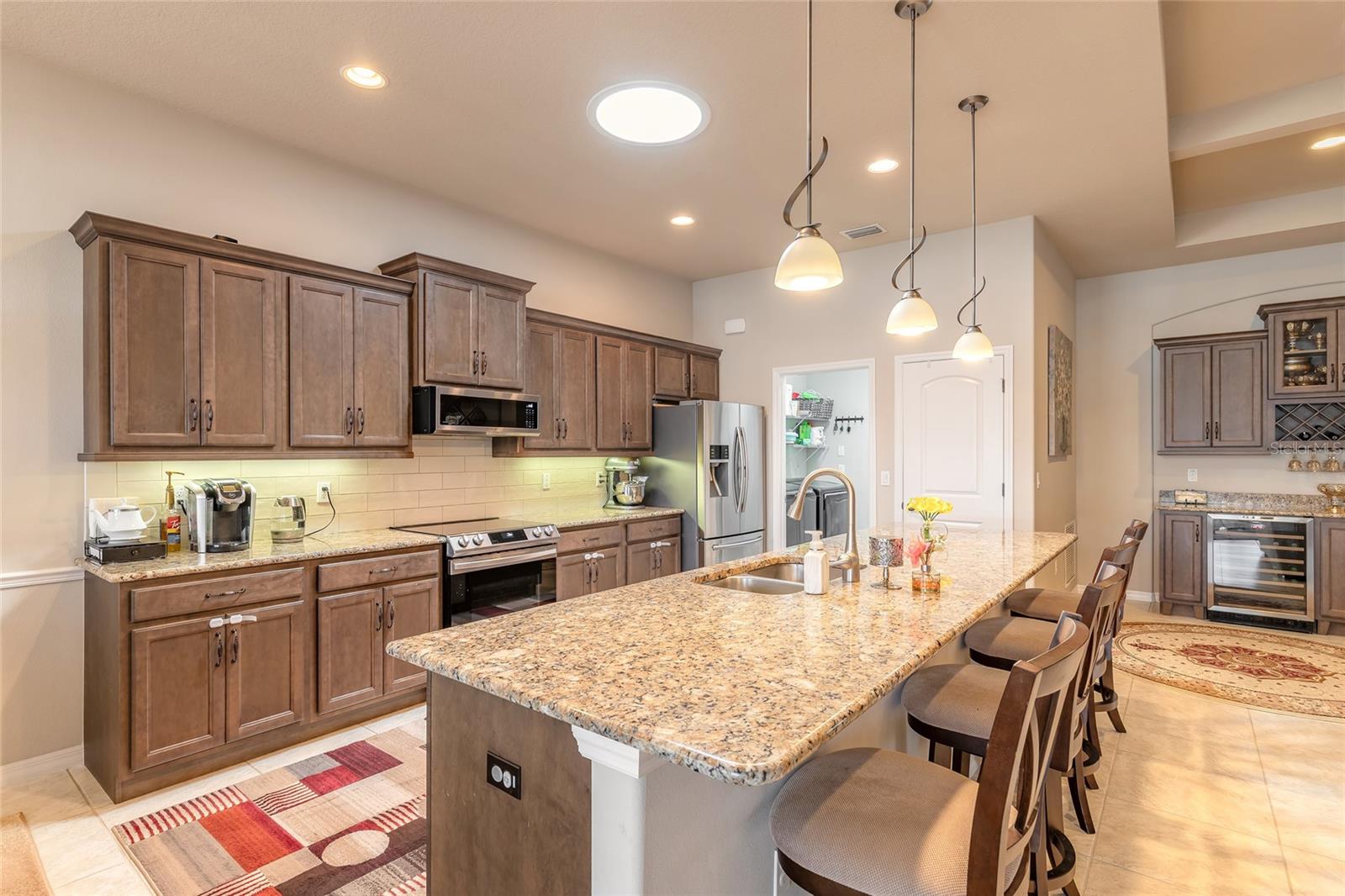 Situada no altamente desejável bairro de Promenade Parke, em New Smyrna Beach, esta casa meticulosamente mantida oferece três quartos, dois banheiros e uma sólida construção em blocos de concreto projetada para oferecer conforto e durabilidade. Uma garagem para três carros agrega valor com espaço para o seu carrinho de golfe. No interior, o piso de cerâmica cria uma sensação coesa e aberta com esta planta aberta. A sala principal é convidativa e elegante, destacada por um teto em bandeja com sancas e amplas portas de vidro deslizantes que levam diretamente para a varanda, enchendo a casa de luz natural. No centro da casa, a cozinha impressiona com uma grande ilha, bancadas em granito e eletrodomésticos de alta qualidade em aço inox. Na área de estar principal, um armário-bar lindamente combinado com refrigerador de bebidas acrescenta estilo e conveniência. A generosa suíte principal inclui um espaçoso banheiro privativo com box amplo e um amplo closet. O escritório frontal é acentuado por amplas portas francesas para o exterior, criando um espaço de trabalho luminoso e convidativo. Duas clarabóias tubulares inundam a casa com uma bela luz natural, criando uma atmosfera luminosa e convidativa. Projetada para uma vida interna e externa sem esforço, a varanda com tela apresenta uma bela piscina aquecida com recursos aquáticos que melhoram sua experiência de vida. O quintal oferece um espaço verde tranquilo que agrega privacidade e um cenário tranquilo cercado por cercas de vinil. A poucos minutos das famosas praias de New Smyrna Beach e das lojas, restaurantes e entretenimento da Flagler Avenue e Canal Street. Esta casa excepcional oferece elegância e funcionalidade em uma localização privilegiada - uma oportunidade ideal para desfrutar do estilo de vida que Venetian Bay tem para você.