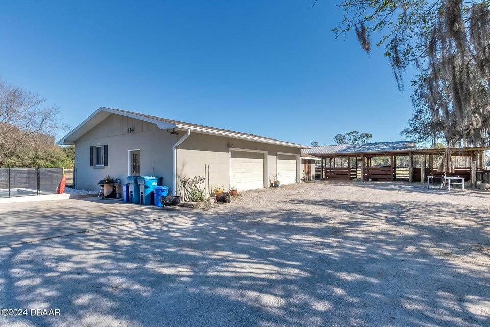 Aceitando ofertas nesta casa de volta para casa! Dirija curta até New Smyrna Beach e Port Orange. 5 acres de pastagens verdes, privacidade completa e serenidade! O portão elétrico entra na propriedade no seu Circle Drive e em 3/1,5 de tijolos, varanda coberta com novo telhado (fevereiro de 2024) novo aquecedor de água quente (fevereiro de 2024) novo Whirlpool, tudo em um sistema de filtração de água (junho de 2024) Lareira de queima de madeira e um novo poço de 40 pés. O novo piso LVP por toda parte e a casa do interior foi pintada recentemente. A varanda coberta é ótimas noites na piscina e festas. Piscina de água salgada com espreguiçadeira (junho de 2020) 1200 pés quadrados Garagem de 4 carros é sua escapada de caverna! 4 barraca de 50 pés de celeiro ao ar livre com água e elétrica com barraca e piquete em separação adicionais. 11x11 Block Block Tack/Sala de feno. O galinheiro de 8x12 personalizado combina a casa com a corrida de aves de 24 pés. Muito espaço para brinquedos, reboques, campistas. A propriedade possui 2 entradas separadas. A propriedade é cercada e cruzada com 4 carvalhos e bambu cercados com vedações maduras, muitas plantas com flores. 15 minutos curtos para a praia!