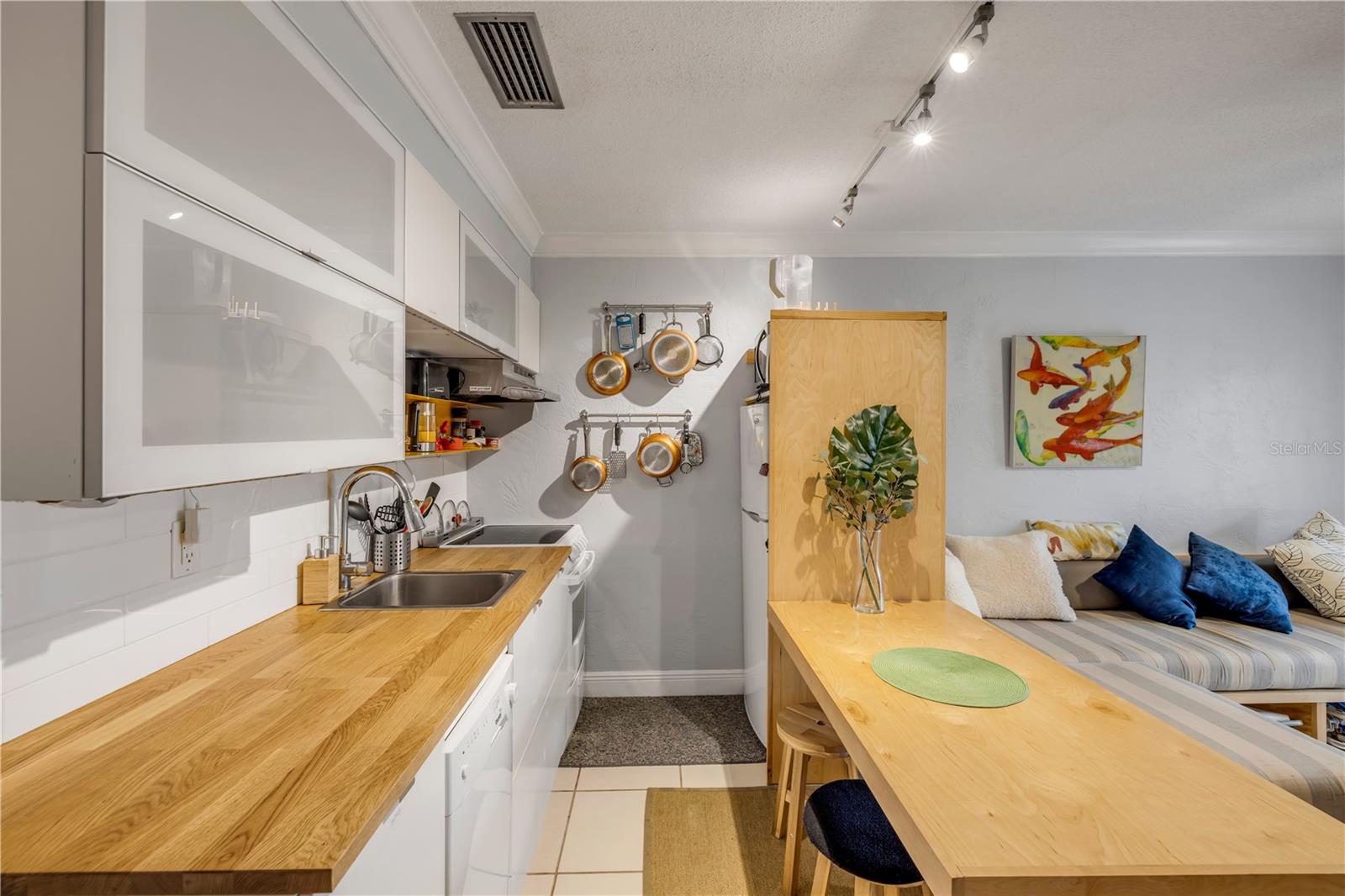 Localizada entre a praia e o rio, esta unidade única 2/2 é totalmente mobiliada, pronta e cuidadosamente estilizada para conforto e funcionalidade. O interior projetado por arquitetos apresenta embutidos personalizados, um elegante centro de entretenimento e áreas de jantar e assentos integradas que maximizam o espaço e a função. Moldagem da coroa para um acabamento polido. Desfrute da brisa do oceano e da vista para o oceano do pátio da frente e das manhãs pacíficas ou dos coquetéis noturnos do seu pátio traseiro privado. As comodidades comunitárias são igualmente impressionantes: piscina intocada, clube bem equipado, churrasqueira ao ar livre, rampa de barco particular, estacionamento de barcos, docas de barco, doca de pesca, shuffleboard, área de armazenamento e lançamento de caiaques e armazenamento no rio. Do outro lado da rua fica a praia sem tração, e a porta ao lado há um parque do condado com tênis, pickleball, basquete, vôlei, um playground e uma doca com vista para o peixe-boi. Caminhe até o acampamento de peixes de JB para uma verdadeira experiência local ou explore a praia nacional da Canaveral a apenas uma milha de distância. Com os aluguéis semanais permitidos, essa propriedade é ideal como residência em tempo integral, fuga sazonal ou aluguel de férias produtor de renda. Se você gosta de passear de barco, pescar, remar e estar cercado pela natureza - esse lugar verifica todas as caixas.