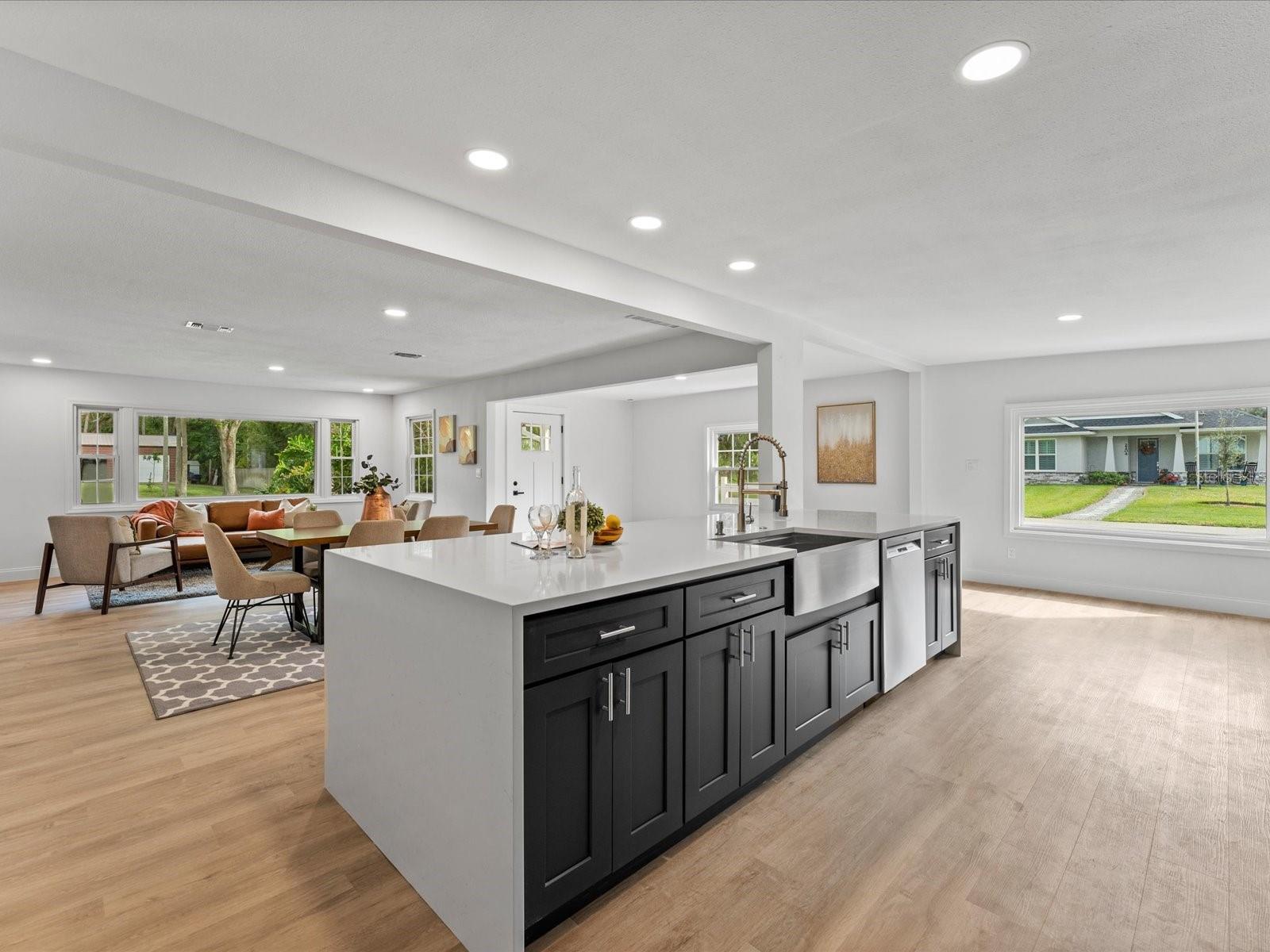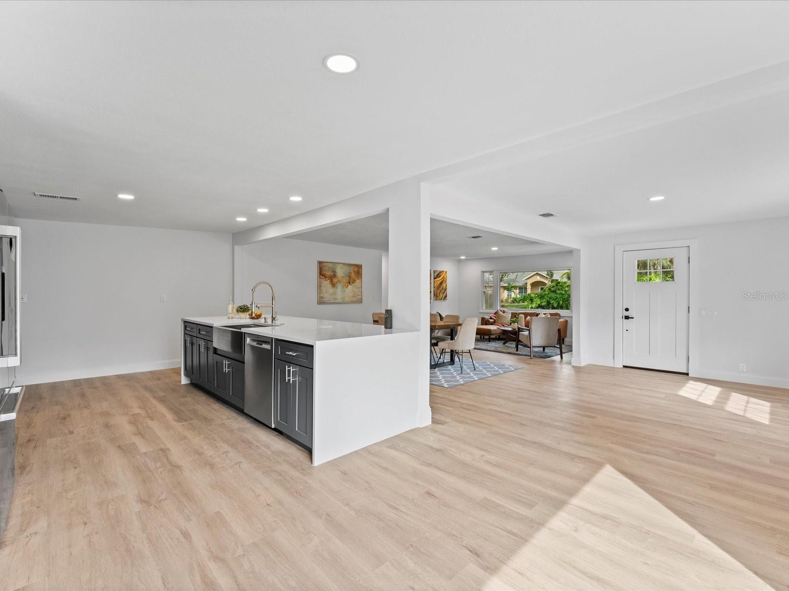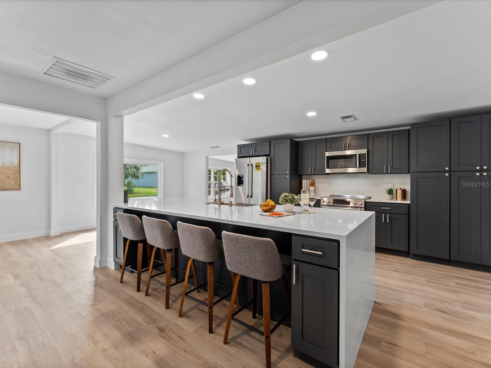 Prepare -se para se apaixonar !! Hgtv, coma seu coração, aqui está a sua próxima piscina fabulosa e completamente remodelada em New Smyrna Beach Home sem Hoa !! Venha ver esta casa moderna absolutamente linda e deslumbrante em plano dividido em Corbin Park. Ao entrar, você se apaixonará por esta casa completamente nova e totalmente reconceptualizada de 4 quartos (incluindo sala de bônus) e 2 banheiros. Você é recebido por um amplo hall de entrada e pela sala de jantar, apenas para dar uma volta na sua nova cozinha moderna e redesenhada, com amplas superfícies e armazenamento, com novos aparelhos de aço inoxidável Bosch e uma ilha de 11x4 de quartzo de tamanho grande, com uma nova sala de estar com uma janela de quartzo. O espaçoso quarto principal tem um enorme armário e um banheiro suíte. Existem 3 quartos separados e de tamanho adequado com um banheiro completo. Há também um espaço de escritório generoso que leva à varanda exibida com infinitas possibilidades. Passe pelas portas deslizantes e você se encontrará com uma piscina de água salgada ampla, refrescante e mais recente (2018) com um deck de pavimentação. Esta casa também possui um amplo quintal e um enorme galpão isolado para armazenamento! E foi remodelado com materiais de alta qualidade. Beautiful Brand-New Water-proof Luxury Plank Vinyl Floors and baseboards, Quartz Countertops Throughout, New High-end Bosch Stainless Steel appliances, New Bathrooms, recessed LED Lights, New Exterior/Interior Doors, Kitchen Wireless Charger, New Roof (2023), Newer 16 SEER Carrier A/C (2015), Updated Electrical, Updated Plumbing, Newer Energy Efficient Double Paned Low-e Windows and Patio Portas, Deck da piscina mais recente e Bach Porch (2018), aquecedor de água e a lista continua e uma. Estilo, charme, caráter e substância, não procuram mais, este é perfeito e ideal. Casas como essa não entram no mercado com frequência, então não deixe que ela passe por você.