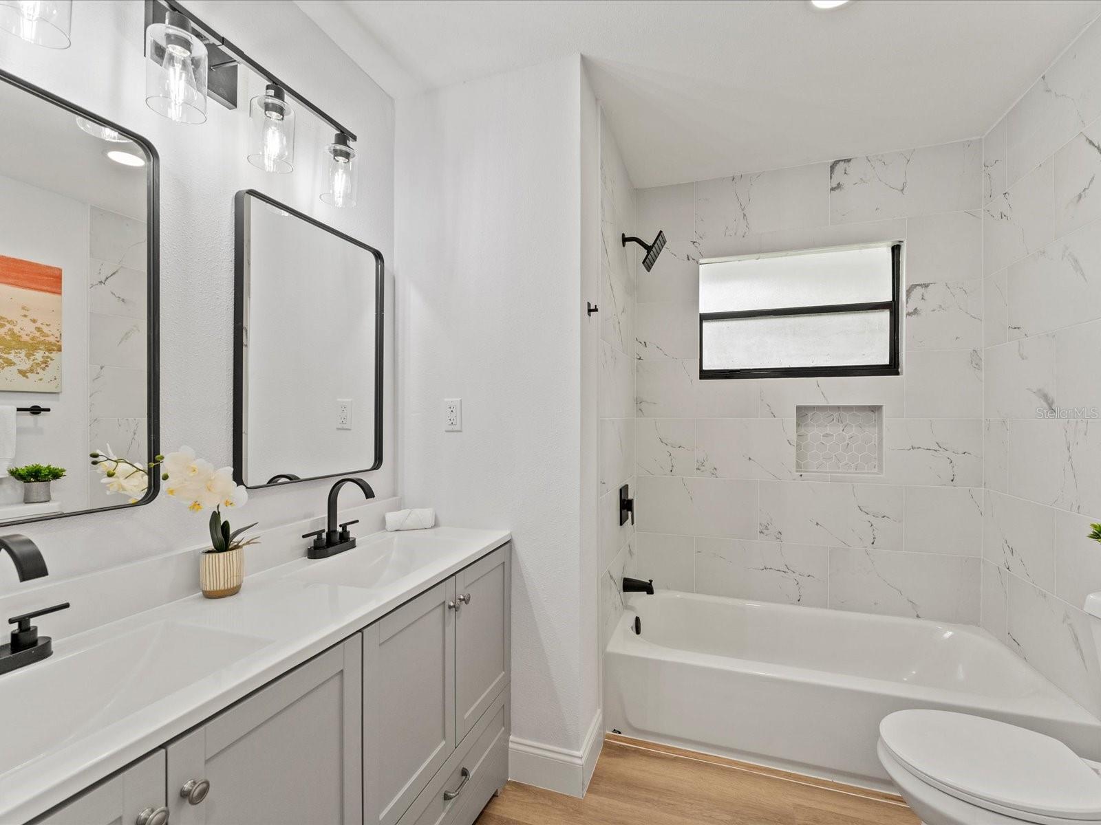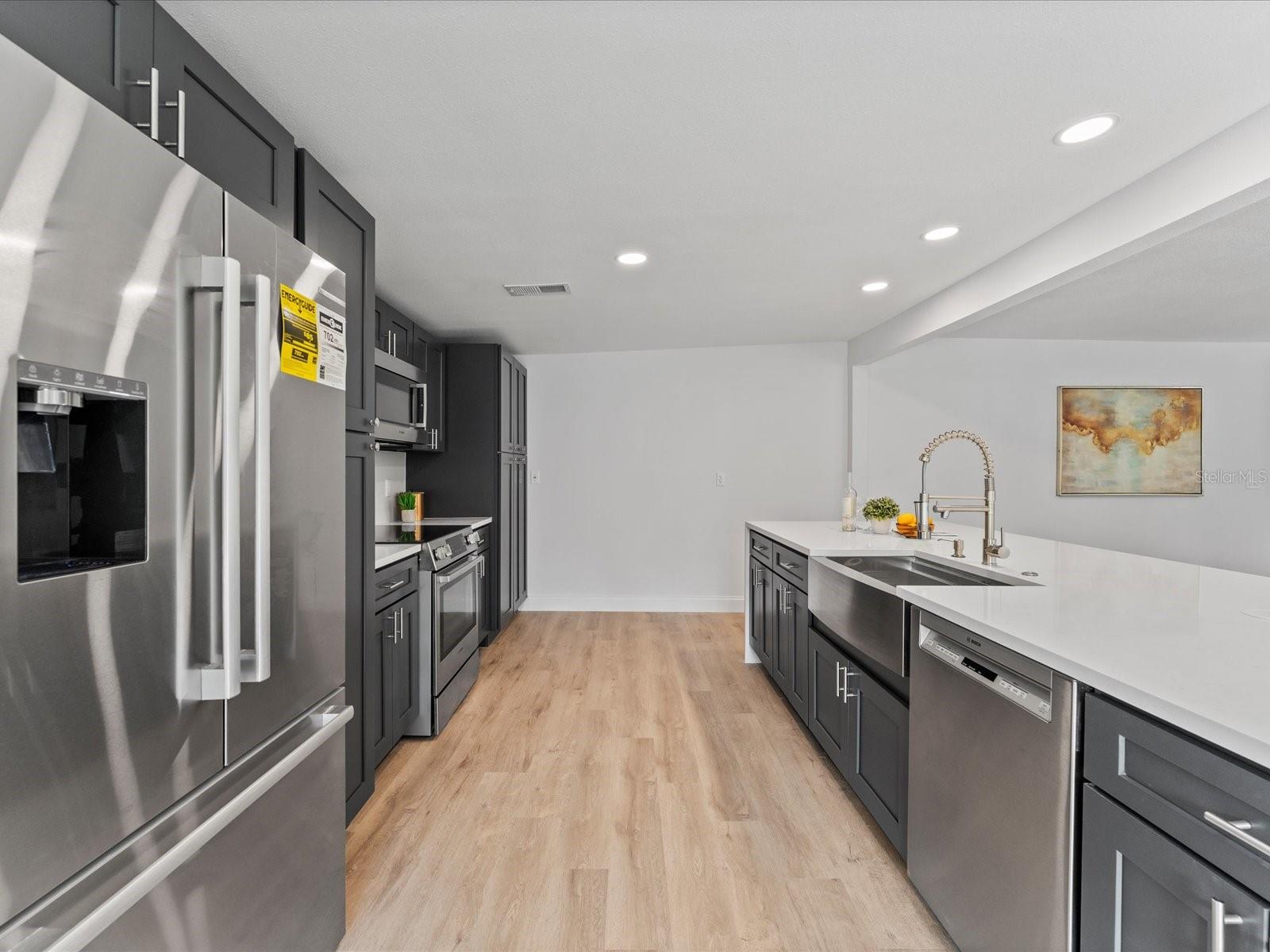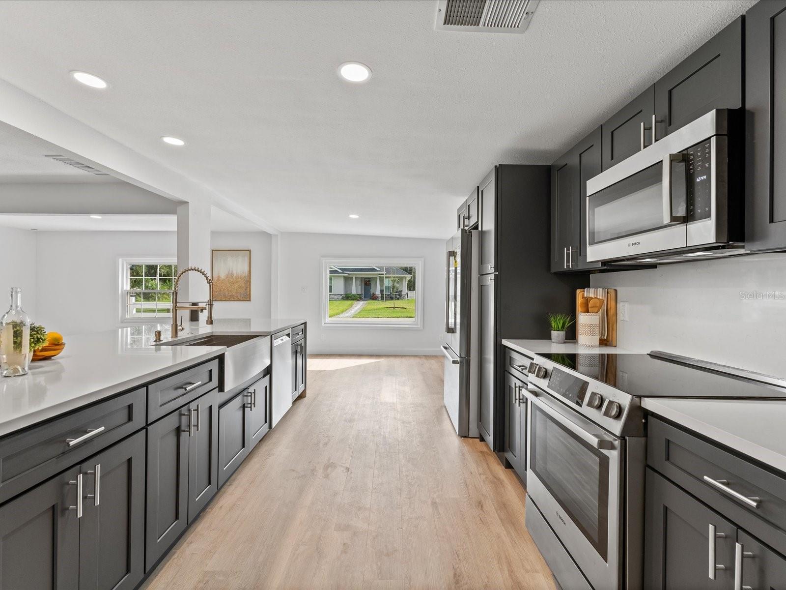 Prepare -se para se apaixonar !! Hgtv, coma seu coração, aqui está a sua próxima piscina fabulosa e completamente remodelada em New Smyrna Beach Home sem Hoa !! Venha ver esta casa moderna absolutamente linda e deslumbrante em plano dividido em Corbin Park. Ao entrar, você se apaixonará por esta casa completamente nova e totalmente reconceptualizada de 4 quartos (incluindo sala de bônus) e 2 banheiros. Você é recebido por um amplo hall de entrada e pela sala de jantar, apenas para dar uma volta na sua nova cozinha moderna e redesenhada, com amplas superfícies e armazenamento, com novos aparelhos de aço inoxidável Bosch e uma ilha de 11x4 de quartzo de tamanho grande, com uma nova sala de estar com uma janela de quartzo. O espaçoso quarto principal tem um enorme armário e um banheiro suíte. Existem 3 quartos separados e de tamanho adequado com um banheiro completo. Há também um espaço de escritório generoso que leva à varanda exibida com infinitas possibilidades. Passe pelas portas deslizantes e você se encontrará com uma piscina de água salgada ampla, refrescante e mais recente (2018) com um deck de pavimentação. Esta casa também possui um amplo quintal e um enorme galpão isolado para armazenamento! E foi remodelado com materiais de alta qualidade. Beautiful Brand-New Water-proof Luxury Plank Vinyl Floors and baseboards, Quartz Countertops Throughout, New High-end Bosch Stainless Steel appliances, New Bathrooms, recessed LED Lights, New Exterior/Interior Doors, Kitchen Wireless Charger, New Roof (2023), Newer 16 SEER Carrier A/C (2015), Updated Electrical, Updated Plumbing, Newer Energy Efficient Double Paned Low-e Windows and Patio Portas, Deck da piscina mais recente e Bach Porch (2018), aquecedor de água e a lista continua e uma. Estilo, charme, caráter e substância, não procuram mais, este é perfeito e ideal. Casas como essa não entram no mercado com frequência, então não deixe que ela passe por você.