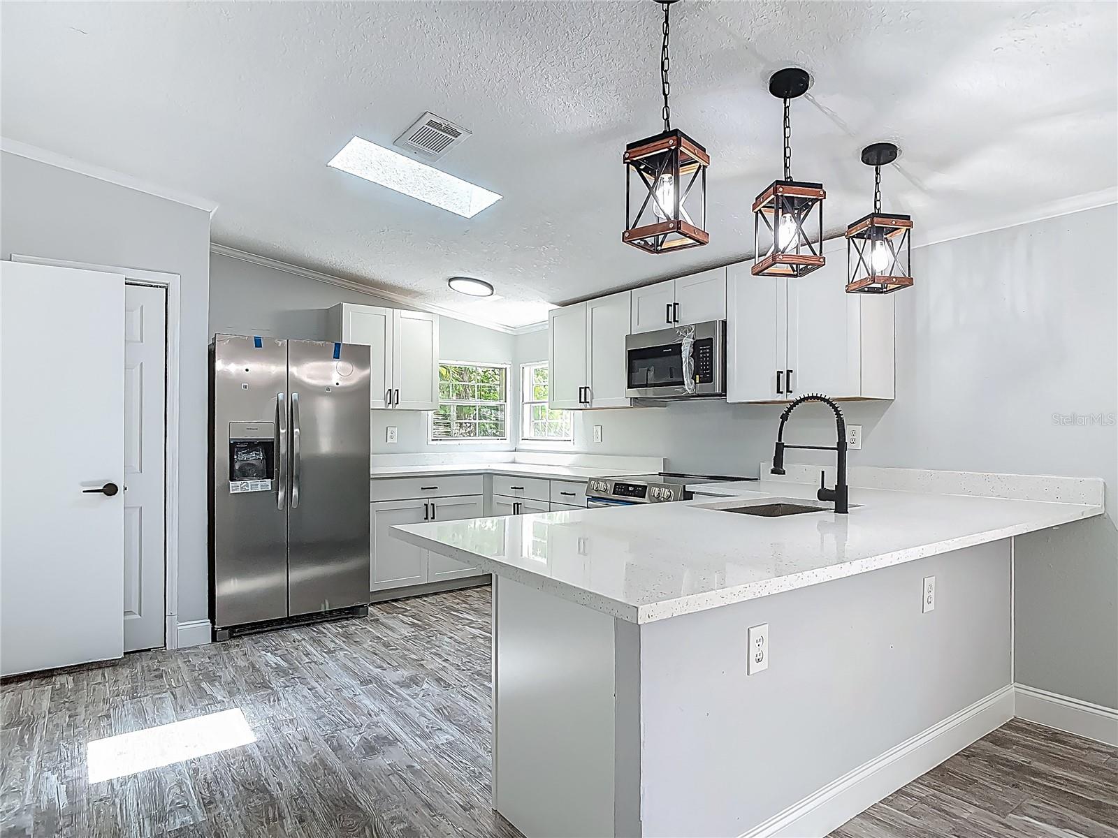 Bem-vindo ao lar! Venha ver esta linda casa REMODELADA, TERRENO DE PROPRIEDADE - SEM ALUGUEL DE LOTE, localizada em um terreno de esquina no coração de New Smyrna Beach, em um bairro tranquilo de Mission Oaks. Esta encantadora propriedade é o lugar perfeito para chamar de lar. Entre e você encontrará um interior espaçoso e convidativo, completo com uma planta aberta. Cozinha totalmente REMODELADA com armários NOVOS, bancada de QUARTZO NOVA e eletrodomésticos NOVOS, telhado NOVO, banheiro principal totalmente REMODELADO e banheiro de hóspedes, NOVAS luminárias, NOVAS tábuas de piso de vinil, NOVOS rodapés, NOVOS ventiladores de teto com controle remoto, AC 3 anos, NOVA pintura interna, um lindo deck nos fundos e uma oficina de 680 pés quadrados para seu hobby favorito! esta bela casa está convenientemente localizada a poucos minutos da praia, lojas e restaurantes locais.