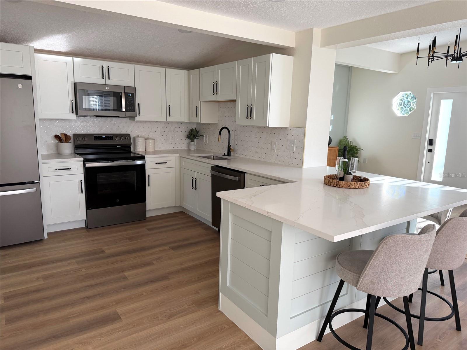 Reforma Total em Lote de Esquina Tranquilo! Esta deslumbrante residência de 4 quartos e 3 banheiros foi completamente reimaginada com uma transformação simples. Esta casa oferece a máxima tranquilidade com um telhado totalmente novo, sistema HVAC, eletricidade atualizada, nova estrutura e novo drywall por toda parte. O interior apresenta uma planta dividida de conceito aberto, destacada por novos pisos e acabamentos de design. A cozinha inspirada no chef possui novos eletrodomésticos, armários modernos e uma despensa ampla. O armazenamento é prioridade aqui, com três closets na suíte principal e um mudroom funcional. Situado em um espaçoso terreno de esquina, na esquina de uma pitoresca fazenda de cavalos, o exterior oferece uma atmosfera tranquila. As características incluem uma garagem enorme para 2 carros, uma estufa dedicada e um pátio privado perfeito para entretenimento. Localizado em um bairro tranquilo, a poucos minutos da ponte New Smyrna Intracoastal, das lojas do centro da cidade e dos restaurantes. Convenientemente perto de Publix e a uma curta distância de carro da praia. Mude-se e aproveite o estilo de vida de New Smyrna em uma casa onde tudo é novo!
