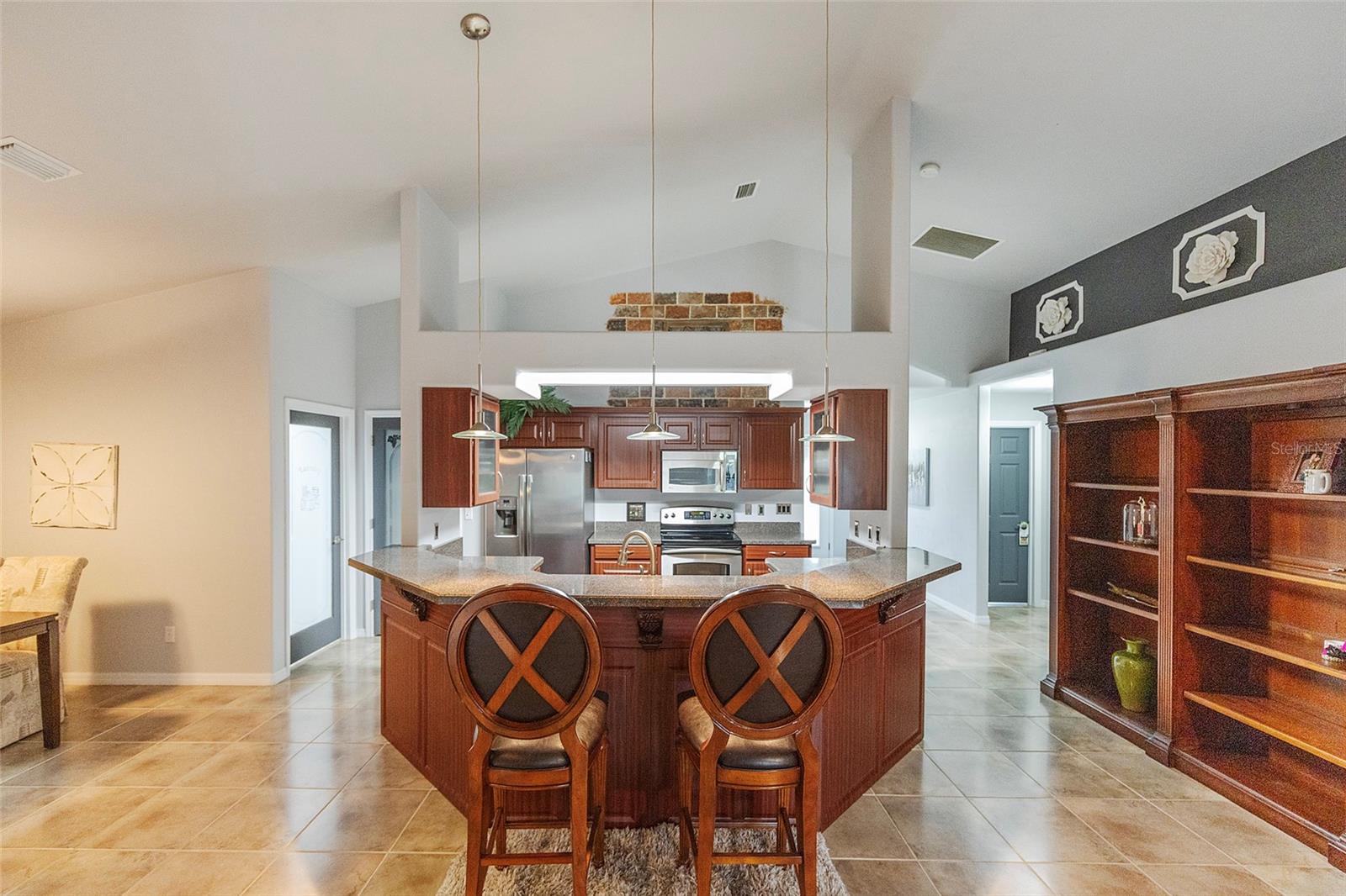 Imaculada 3 camas, 2 banheiros, 2 carros AC de carro em grande lote com amplo espaço para uma futura piscina com 85 pés de fachada do lago Com ótimas vistas para a água e a natureza nas propriedades do Turnbull Bay Country Club. Localizado no quinto Fairway da família de 18 buracos possuía o campo de golfe par 72 na reserva. Casa é Equipado com um sistema de vigilância de áudio-vídeo em casa cheia, persianas de furacões e um cofre Sala. Abra a porta da frente para ser recebida por ladrilhos de porcelana em toda a área de estar principal, Cozinha, área de jantar e banheiro mestre, que tem um chuveiro e pias duplas. Armários de cozinha de acabamento de cereja com acabamentos / parênteses de acabamento / painéis combinando -se sob o Barra de café da manhã, aparelhos SS. Portas de vidro decorativas para lavanderia e despensa, coberta de lavanderia, Lanai selecionado na parte de trás da casa, que foi estendida 5 pés com um fechado Área do escritório de um lado com unidade CA separada. O telhado tem folhas de madeira compensada de 5/8 polegadas, isolamento adicional de R15 e uma barreira radiente para manter suas contas de energia baixas. A garagem tem uma unidade CA separada para aqueles que querem trabalhar em seus carros, ou outros projetos. Teto abobadado na área de estar principal. Garagem extra grande, 2 pés de profundidade. Living RM Nicho, etc. perto da praia, via viajante intracoastal, rampas de barcos, I-95, campos de golfe e compras.