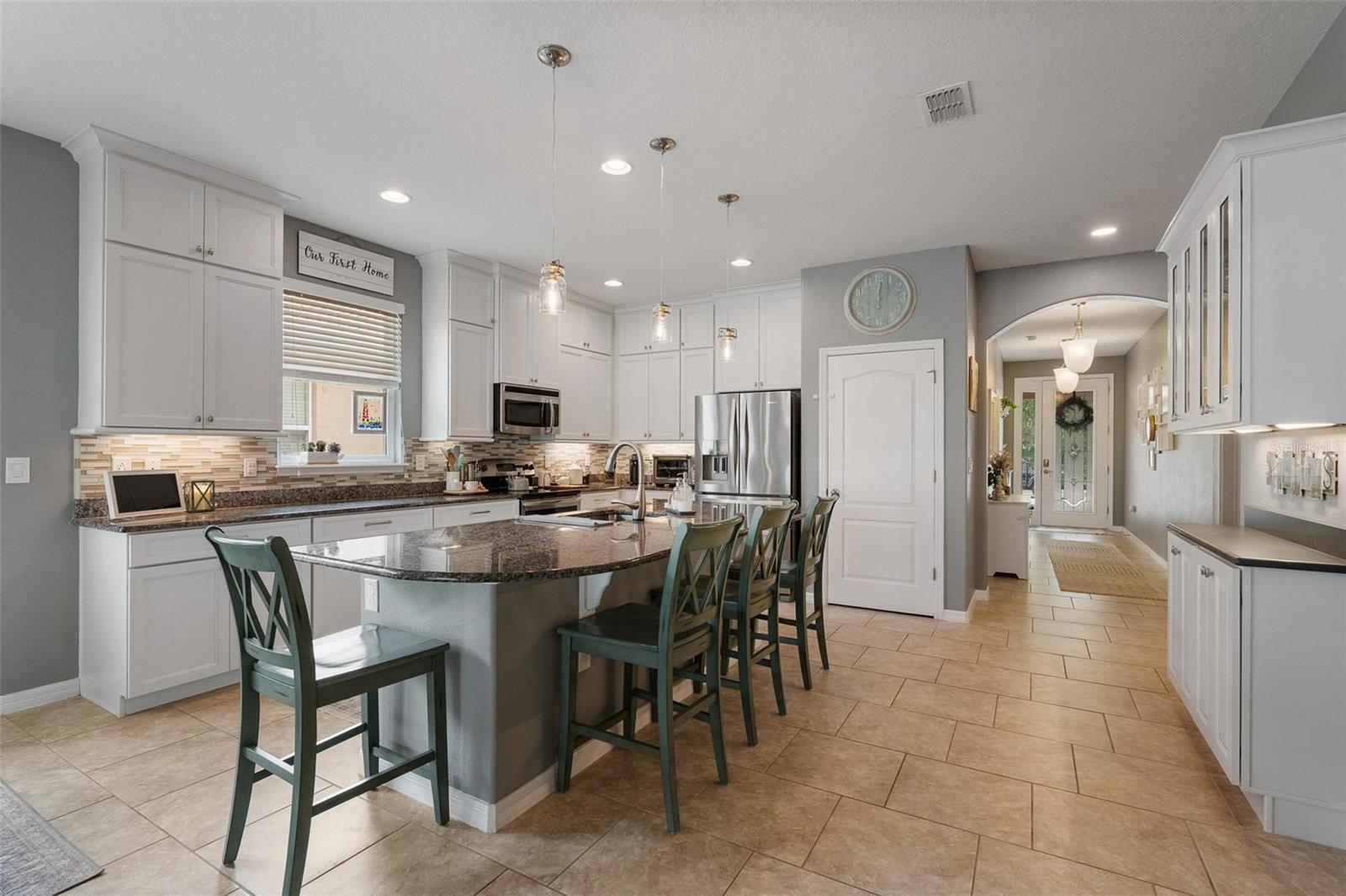 Coverd de associação à piscina !!!! Esta espaçosa residência de 4 quartos e 3 banheiros oferece 2 suítes primárias, ambas equipadas com banheiros completos de suíte-perfeitos para vida multigeracional ou um retiro privado de convidado/sogro. Além disso, um gerador de 22kW Generac Whole House, com 300 galões de propano por mais de uma semana de energia em caso de uma queda de energia !! E apenas uma caminhada ou um carrinho de golfe a partir da piscina comunitária "Voltando em breve"! Ao entrar, um hall de entrada longo pode levá-lo à suíte sogro ou seguir em direção à combinação de cozinha/vida. Planta de piso dividido como desejar, com banheiros de hóspedes totalmente remodelados e todos os novos pisos em todos os quartos. Escondido na asa traseira está a suíte primária com uma banheira primária em suíte com chuveiro, banheira de imersão, vaidades duplas, armários embutidos personalizados. As atualizações adicionais incluem armários personalizados, banhos remodelados, novos pisos, bares embutidos, sarjetas, pavimentadores, teto de telha, tanques de propano totalmente de propriedade, prateleiras de garagem, pátio exibido e muito mais que você verá enquanto faz uma turnê! Desfrute do estilo de vida interno fora da Flórida com um pátio exibido que abre para um quintal totalmente cercado-excelente para pequenos, animais de estimação e divertido. A casa está enfrentando uma área de conservação pacífica, oferecendo privacidade adicional e sem vizinhos da frente !! Todos os detalhes foram considerados para fornecer funcionalidade e conforto para uma família crescente ou estabelecida. Como mencionado anteriormente, esta jóia está localizada no coração de Venetian Bay, que é uma vibrante comunidade de golfe de golfe que apresenta um campo de golfe de 18 buracos de campeonato, (em breve) piscina comunitária, mais de 2 restaurantes, spa, cafeteria, academia, quadras de pickleball, trilhas para caminhada e muito mais. Se você está terminando com os vizinhos ou se mantendo ativo com a família, não há escassez de comodidades para desfrutar a apenas passos da sua porta. Se você está procurando uma casa acolhedora com o Charm e um que se destaca do resto ... 3451 Luna Bella Lane é obrigatório.