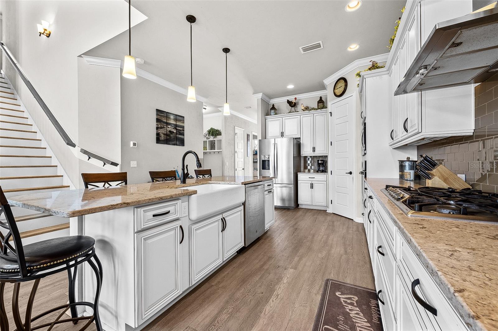 Bem -vindo à desejável Comunidade de Arbor Greens! Esta requintada Robinshore Home Custom 2018, Robinshore, mostra uma variedade de recursos impressionantes, juntamente com um local invejável. Com 4 quartos, 3 ½ banheiros, além de um estudo e um loft, esta residência oferece uma planta espaçosa que atende a uma vida confortável e um entretenimento sofisticado. Com pouco menos de 2.800 pés quadrados, esta casa parece extraordinariamente expansiva, acentuada por seu cativante estilo arquitetônico. Após a entrada, você será levado pela sala grande de dois andares, banhando o piso principal em uma abundância de luz natural, criando uma atmosfera convidativa e vibrante. Os pisos de tábua de vinil de luxo enfeitam a totalidade da casa, desde a entrada até os quartos, criando uma estética sofisticada e simplificando a manutenção. À esquerda do hall de entrada, descubra um estudo isolado, fornecendo um retiro pacífico para o trabalho. Adjacente ao estudo, uma sala de pó convenientemente localizada oferece aos hóspedes um banho privativo e aprimora a funcionalidade do espaço do escritório. A cozinha estendida é o sonho de um chef, com uma ilha de grandes dimensões, alcance de gás, bancadas de quartzo, uma área de bar de vinhos e amplo espaço para a criatividade culinária. A área de jantar adjacente e a sala familiar de grandes dimensões fornecem um fluxo contínuo para entreter hóspedes e ceder a experiências memoráveis. O piso principal é concluído por uma suíte primária de tamanho generoso, apresentando um banho de spa privado e um armário de grandes dimensões, garantindo privacidade e luxo em cada turno. No nível superior, você descobrirá um loft versátil, perfeito para criar um ponto de encontro divertido ou um recanto de leitura tranquilo. Além disso, 3 quartos e 2 banheiros oferecem amplo espaço para os hóspedes. Para maior conveniência, um armário de lavanderia está convenientemente localizado no andar de cima, oferecendo a opção de adicionar uma segunda lavadora e secadora. Desce as escadas, saia para o seu próprio oásis privado. O quintal, com vista para uma área comum, foi projetado para uma vida de baixa manutenção, com um pátio impressionante de pavimentador, uma aconchegante fogueira e pedras decorativas-sem grama para cortar a cortina ou água! Outros destaques desta casa notável incluem uma zona de queda prática, localizada ao lado da lavanderia e da garagem, fornecendo uma área designada para organizar os itens essenciais do dia a dia. A calçada da pavimentadora exala sofisticação enquanto garante amplo espaço de estacionamento. Delicie -se com a conveniência da localização excepcional da casa, oferecendo proximidade a uma variedade de comodidades. Desfrute de estar a poucos momentos de fazer compras no Publix, saboreando sua bebida favorita na Starbucks, jantando em restaurantes locais, acessando instalações e academias médicas e explorando o vibrante centro da cidade de Tioga. Além disso, a localização principal da casa oferece acessibilidade fácil a Alachua e Progress Park, perfeitos para passageiros e aventureiros. Não perca a oportunidade de experimentar a vida na comunidade Arbor Greens. Agende uma exibição hoje e imagine o notável estilo de vida que o espera!