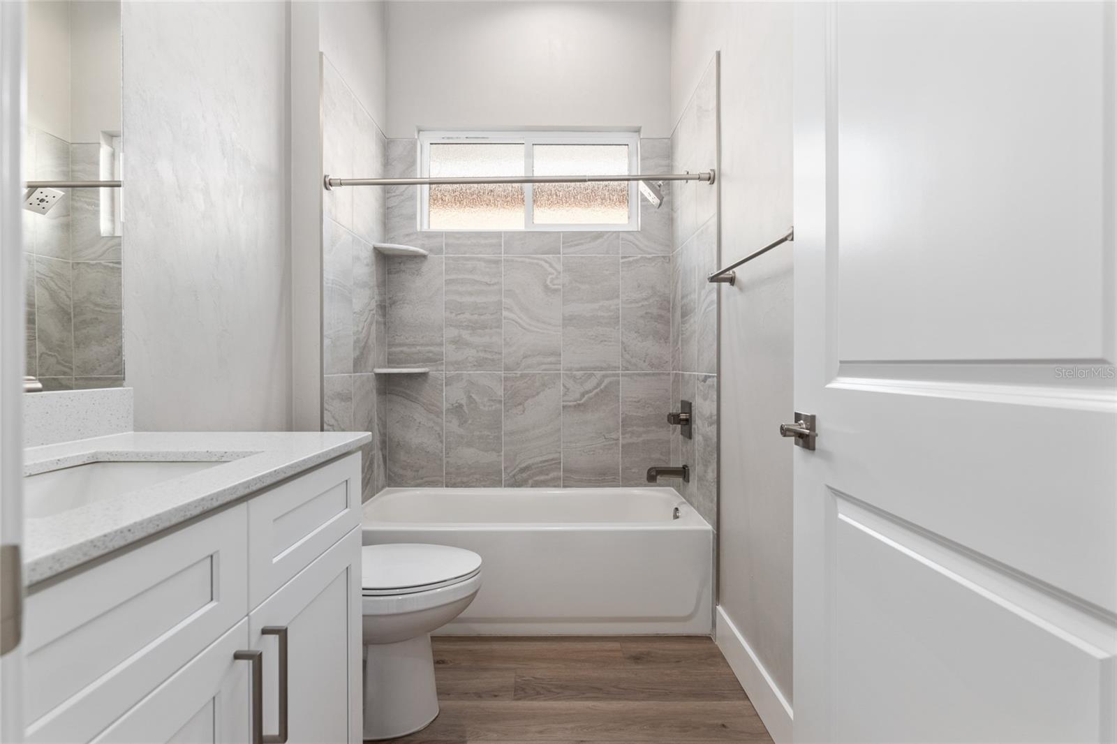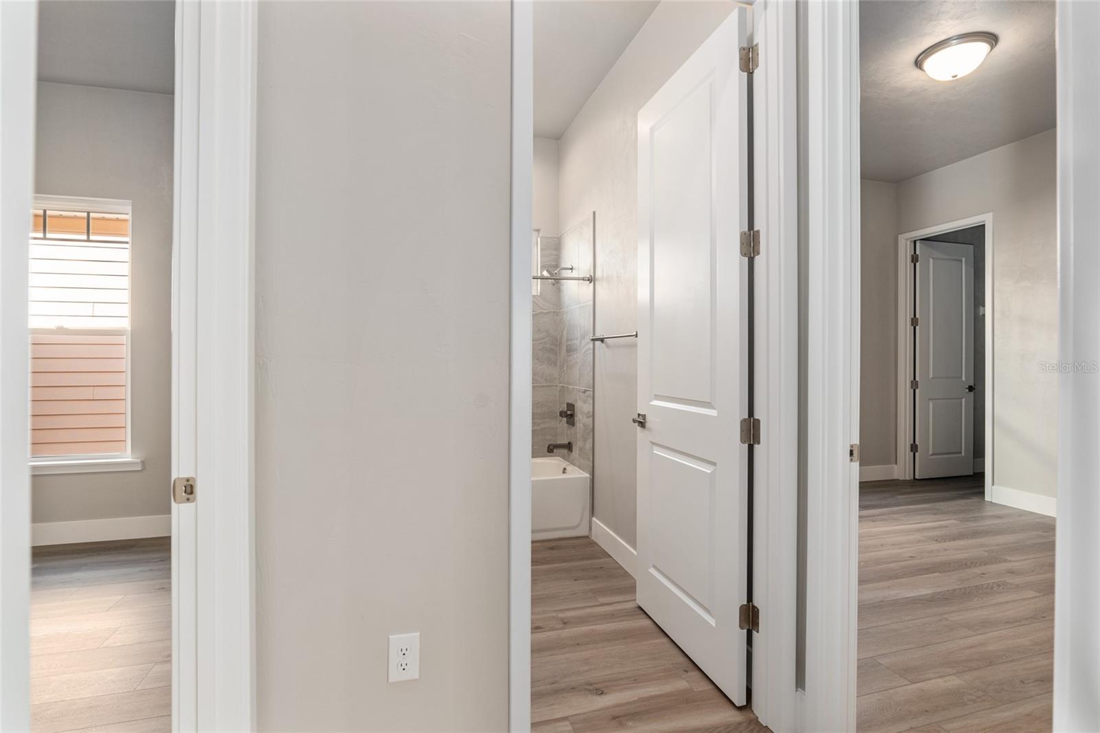DISPONÍVEL AGORA! SEM CDD. NOVA construção pronta para morar com crédito de comprador de 1% para custos de fechamento! Bem-vindo ao modelo Adriana da renomada construtora local Kara Bolton. Esta deslumbrante casa de 3 quartos e 2 banheiros com espaçosa garagem para 2 carros foi projetada para combinar estilo, conforto e conveniência para o proprietário de hoje. Entre para encontrar uma planta baixa e aberta, com tetos altos de 3 metros e portas elegantes de 2,5 metros, tudo reforçado por um luxuoso piso de tábuas com aparência de madeira. A cozinha gourmet é o sonho de um chef, com bancadas de quartzo, pia embutida, armários de madeira maciça com gavetas de fechamento suave e eletrodomésticos premium de aço inoxidável, incluindo fogão de indução, geladeira, exaustor de micro-ondas ventilado, lava-louças e descarte e uma despensa espaçosa. A luxuosa suíte principal oferece um verdadeiro retiro com um espaçoso closet e um banheiro privativo com box amplo, pia dupla com tampo de quartzo e vaso sanitário privativo. Você também desfrutará da varanda/varanda coberta e totalmente protegida ao lado do quarto principal, perfeita para manhãs tranquilas e noites relaxantes. Os dois quartos adicionais são espaçosos e confortáveis, com um segundo banheiro compartilhado que inclui chuveiro/banheira de azulejos e penteadeira com tampo de quartzo. Desfrute de confortos modernos e tranquilidade com água quente infinita de um aquecedor de água quente a gás sem tanque, uma fechadura inteligente e luzes de ônibus em uma fotocélula. Do lado de fora, o exterior da casa apresenta revestimento durável de tábuas Hardie, pavimentos decorativos e um quintal totalmente paisagístico com grama Zoysia ecológica e irrigação. Uma varanda fechada com tela e vista para um belo espaço recreativo completa esse quadro de tranquilidade. A baixa taxa HOA de apenas US $ 125 por mês inclui internet COX de alta velocidade, piscina comunitária, quadras de tênis e pickleball, clube e manutenção parcial do jardim da frente. Localizada a poucos minutos de lojas e restaurantes, esta propriedade fica a 7,2 km do Hospital Regional do Norte da Flórida, a 18 km dos Hospitais Shands e VA e a 13 km da Universidade da Flórida. O comprador deve verificar todas as zonas escolares com ACSB. Não perca a oportunidade de possuir esta casa excepcional. Contate-nos hoje para torná-lo seu!