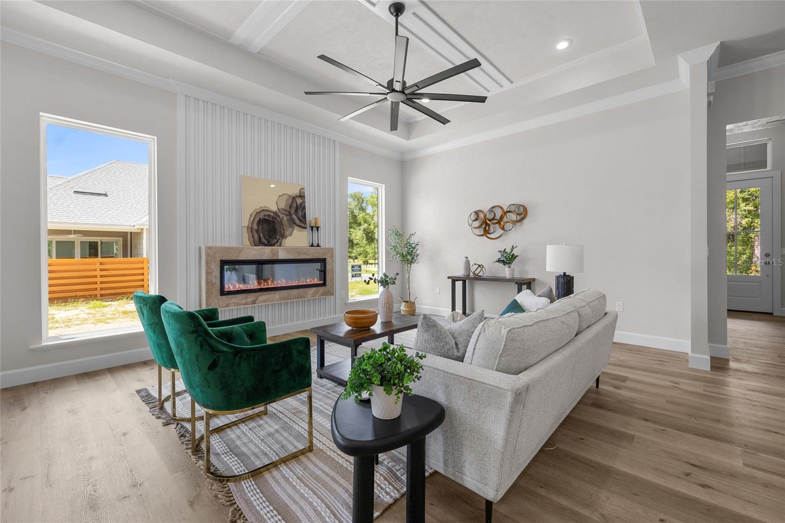 Casa nova em construção - pronta para morar! Apresentando a sua futura casa dos sonhos - uma aconchegante e convidativa casa personalizada Tommy Waters com 4 quartos e 3 banheiros, artisticamente projetada com linhas limpas e modernas e charme atemporal. Cuidadosamente elaborada, esta casa oferece tudo o que você precisa e nada do que você não precisa, com muitas atualizações e atenção aos detalhes. Os recursos incluem sancas, lareira elétrica, armários personalizados, bancadas de quartzo, eletrodomésticos atualizados e muito mais - realmente imperdível! Desfrute de tetos altos, uma planta espaçosa e aberta e uma abundância de luz natural que cria uma atmosfera luminosa e acolhedora. O layout flui perfeitamente para uma varanda lateral privativa em estilo pátio, perfeita para relaxar ou se divertir durante todo o ano. Localizados na comunidade da cidade de Tioga, que aceita carrinhos de golfe, os moradores têm acesso a comodidades, incluindo quadra de pickleball, clube, piscina comunitária, playground, quadras de tênis, vôlei de areia, quadras de basquete e trilhas para caminhada. Além disso, você está a poucos passos do Tioga Town Center, que oferece restaurantes requintados, boutiques e Gainesville Health and Fitness ao lado. Aproximadamente 4 milhas até a I-75, 4,5 milhas até North Florida Regional, 8 milhas até a Universidade da Flórida e 11 milhas até Shands.